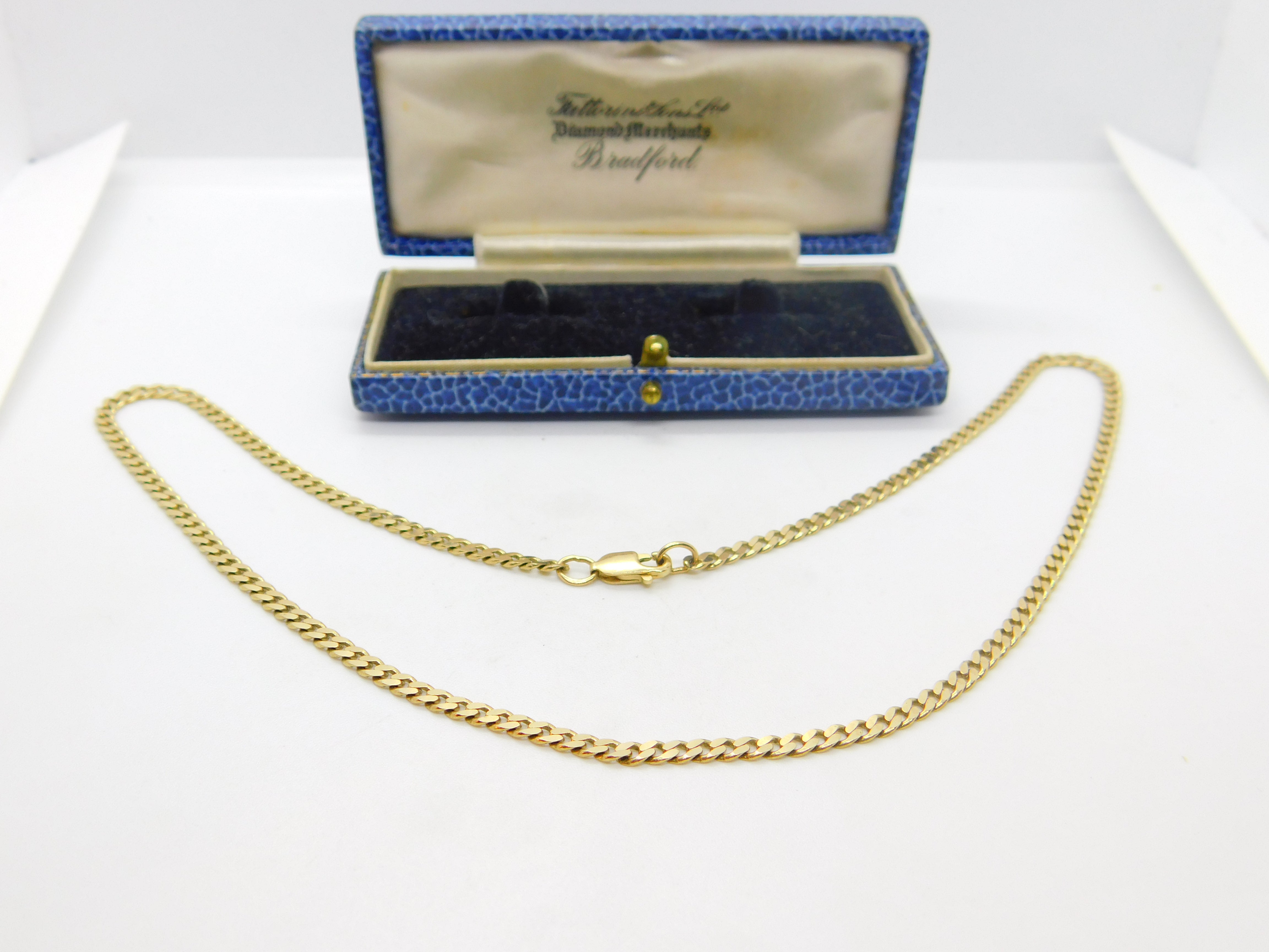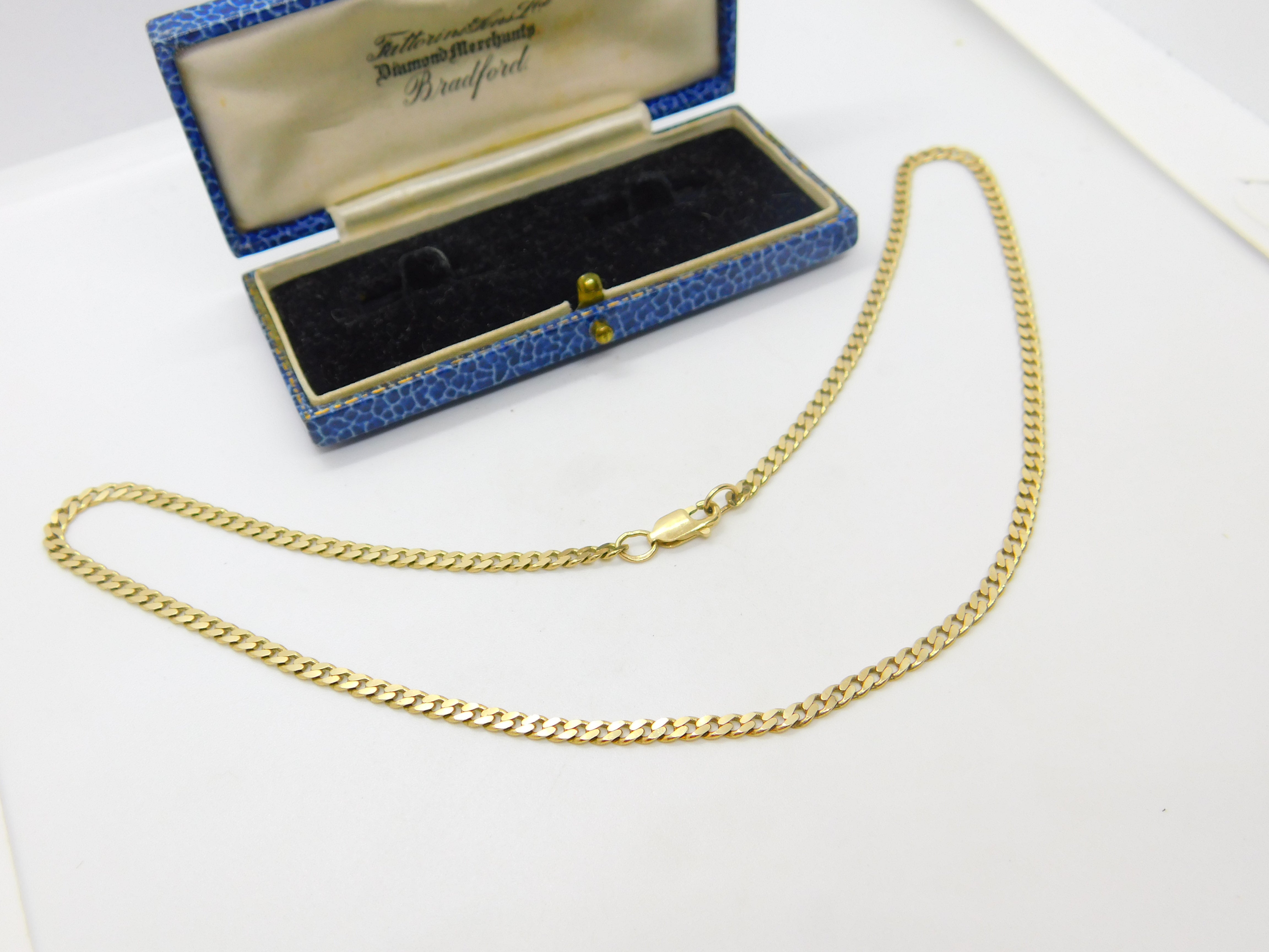 Details: A fantastic and wonderfully designed vintage 9ct yellow gold flat curb link chain necklace hallmarked to the bale c1970. This is a wonderful item that would make a perfect gift or addition to any collection. The BOX pictured is for PRESENTATION ONLY and is NOT included in the listings but used to frame the pictures unless specifically stated otherwise.
