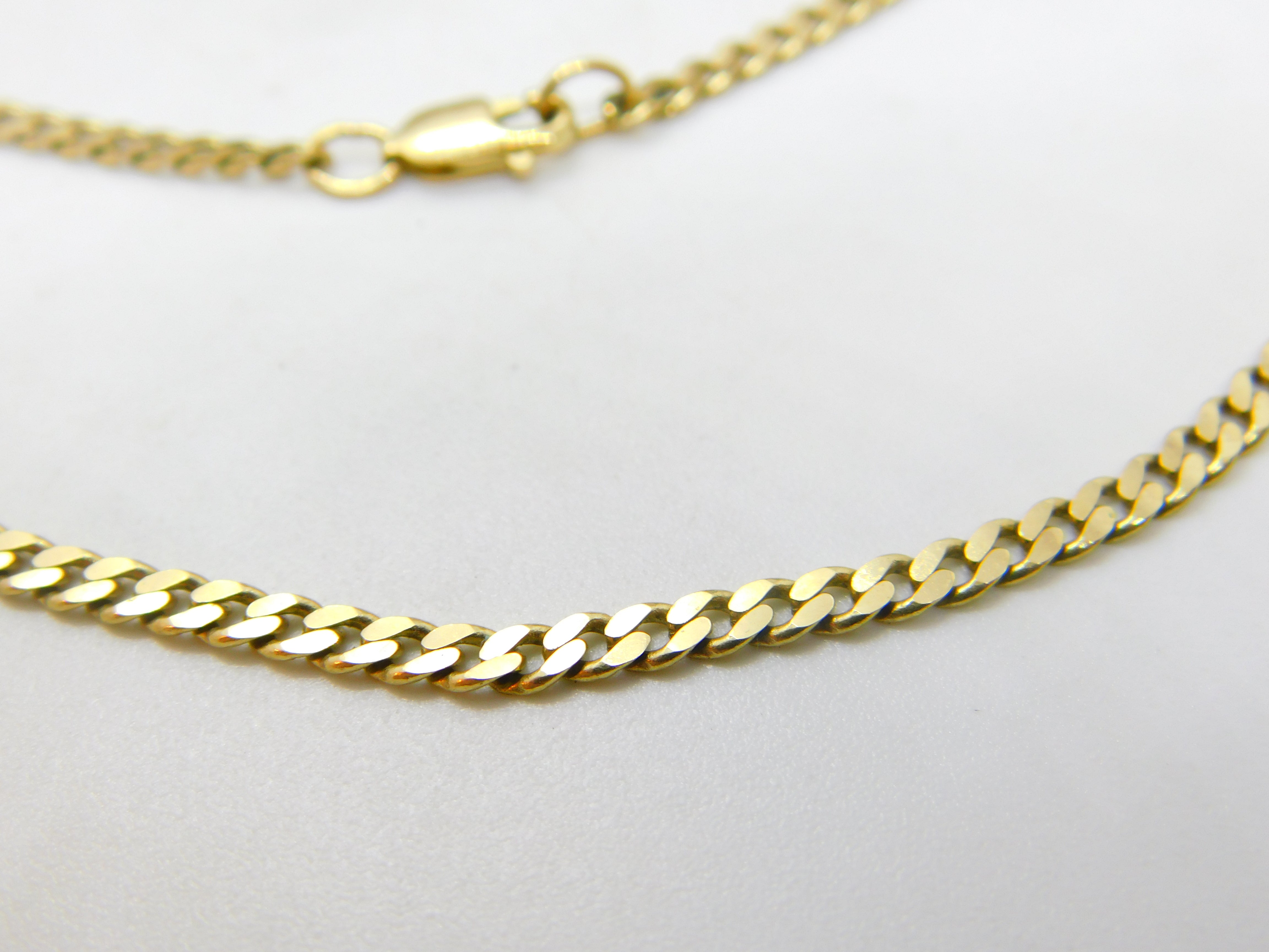 9ct Yellow Gold Essential Flat Curb Link Chain Necklace 16" Length Vintage c1970