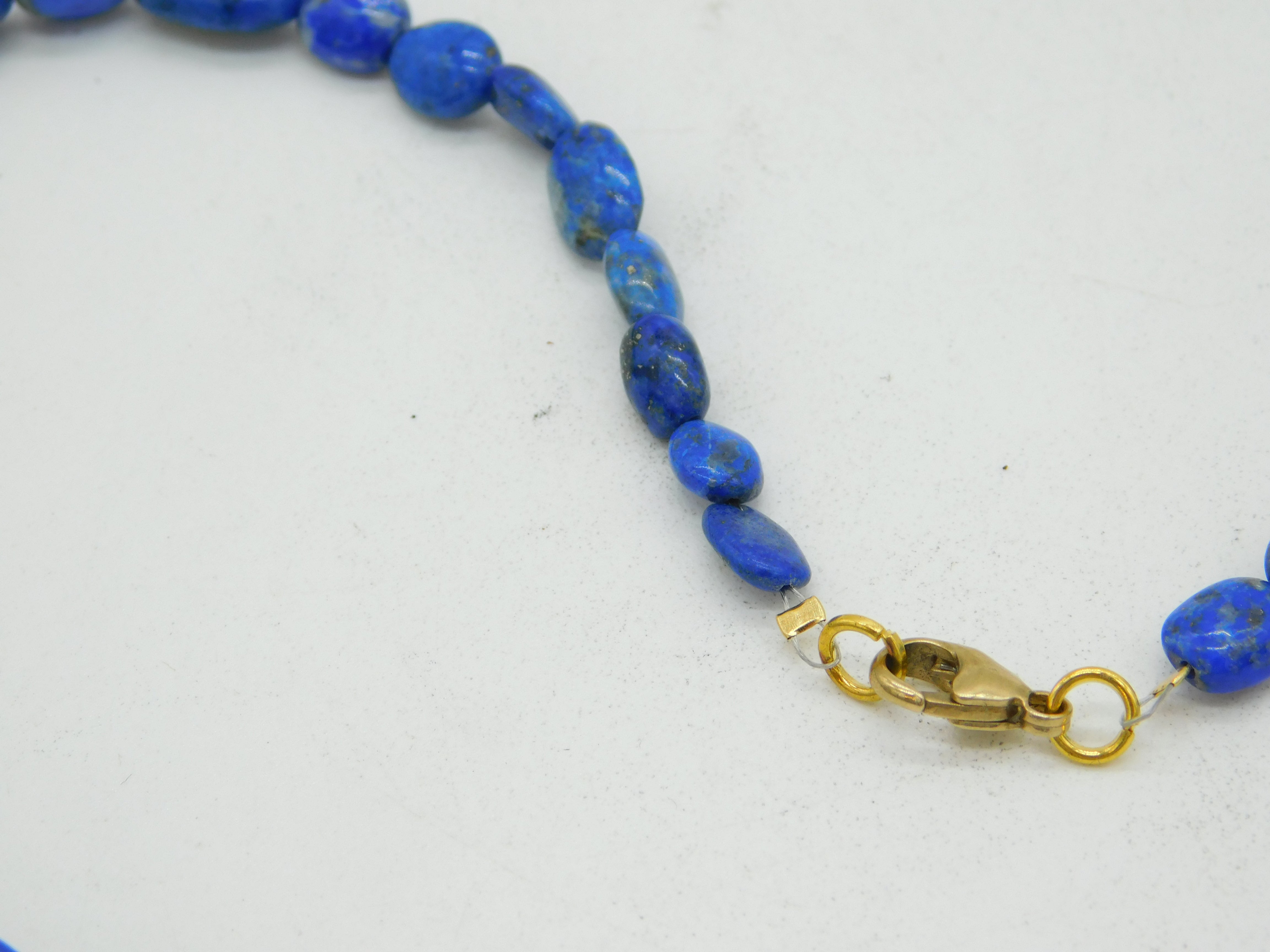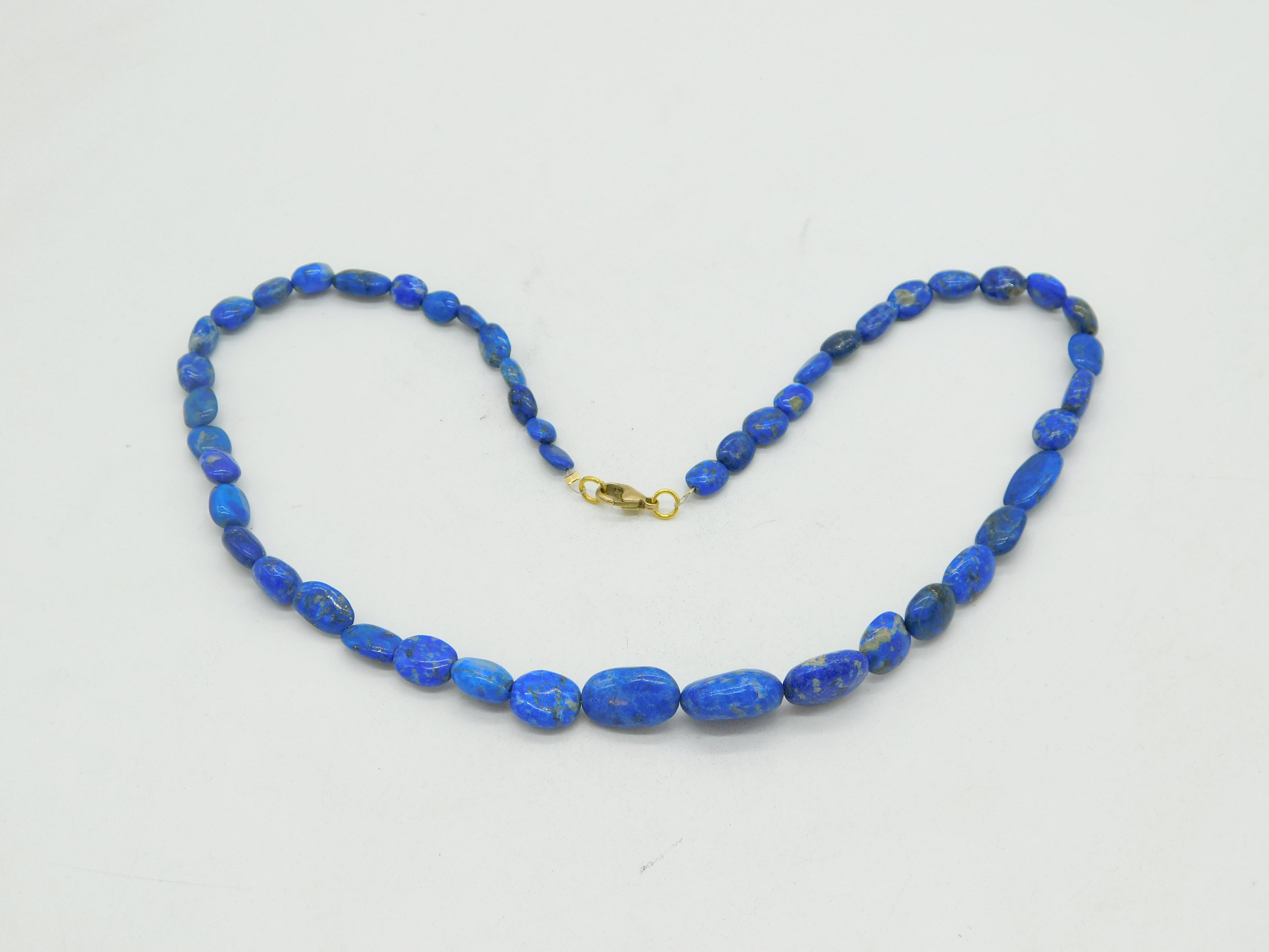 9ct Yellow Gold Graduating Lapis Lazuli Necklace Vintage c1970 46cm Length