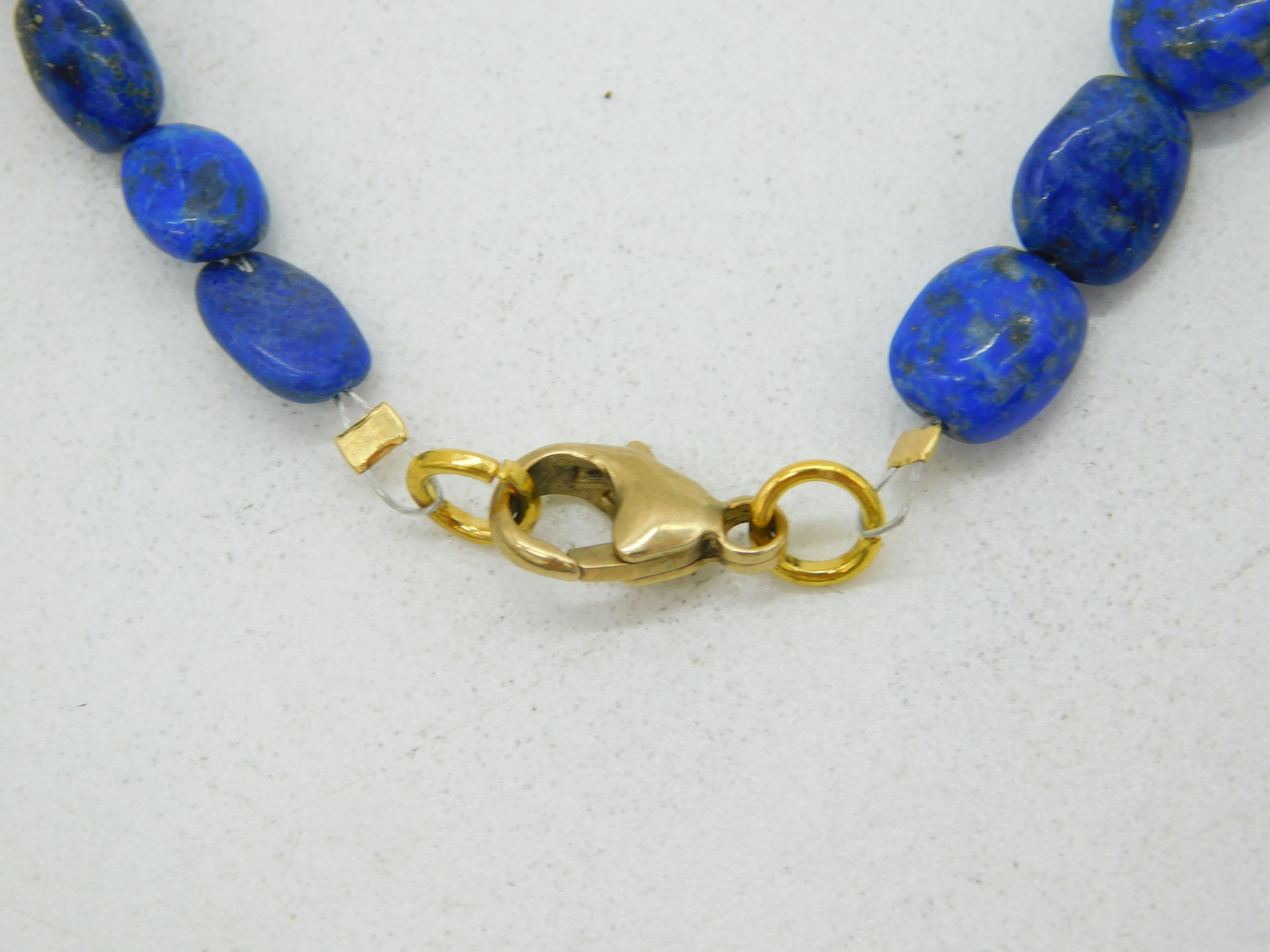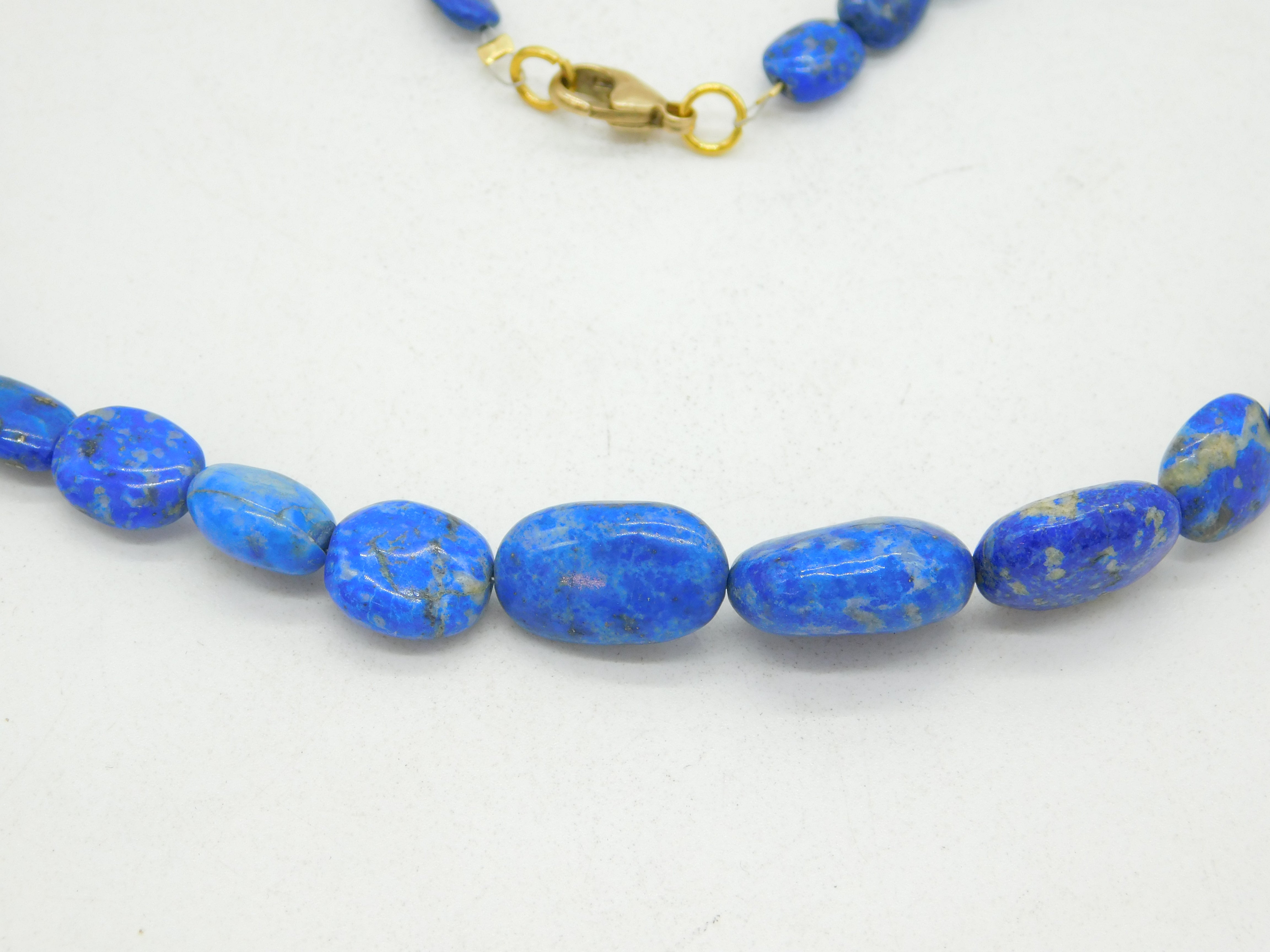 Details: A fantastic and wonderfully designed vintage 9ct yellow gold graduating lapis lazuli set necklace vintage c1970 hallmarked to the lobster clasp. This is a wonderful item that would make a perfect gift or addition to any collection.