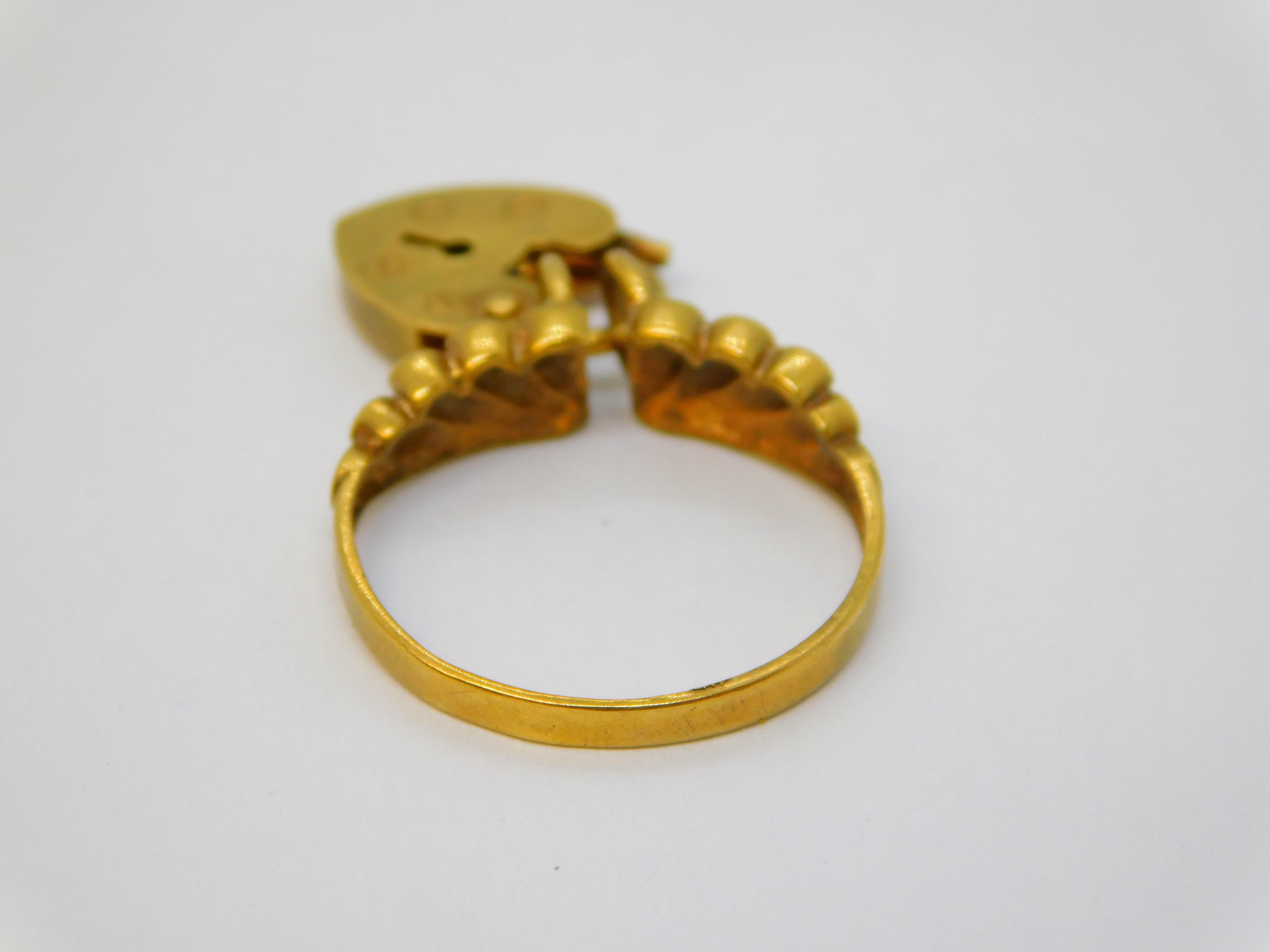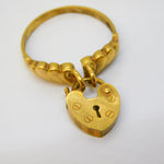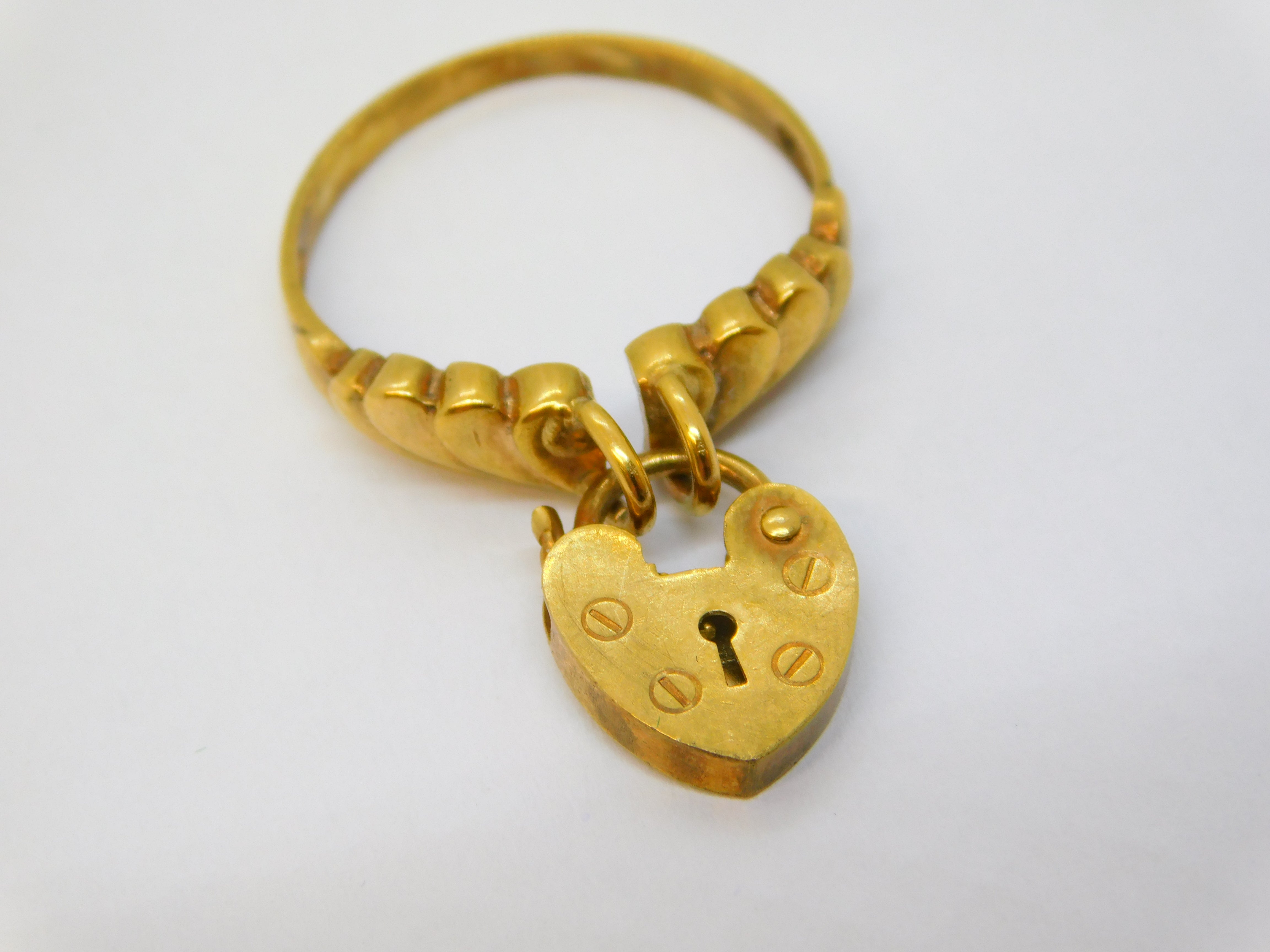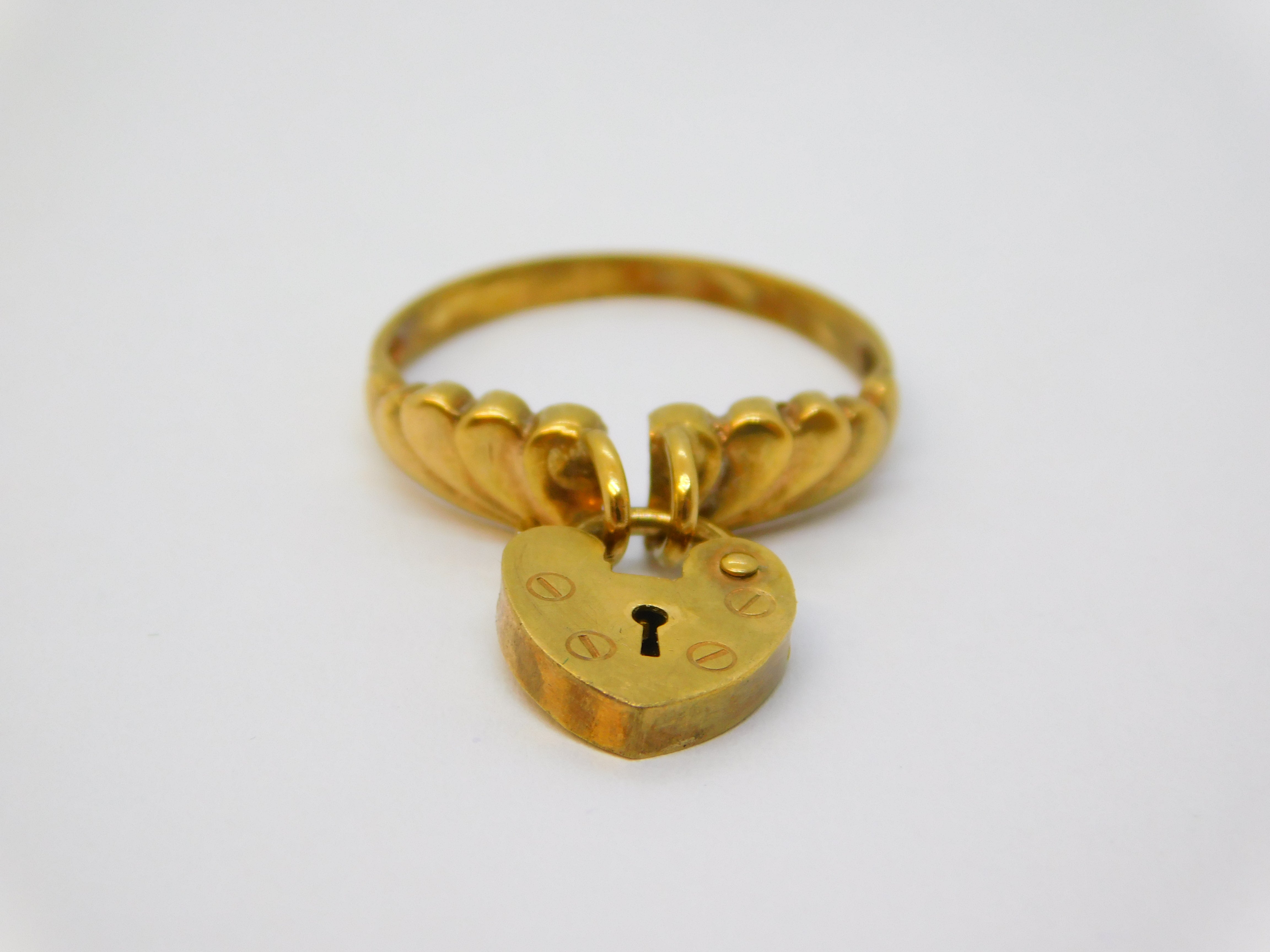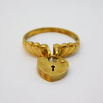 9ct Yellow Gold Heart Lock Charm Dress Ring Antique c1920 Art Deco