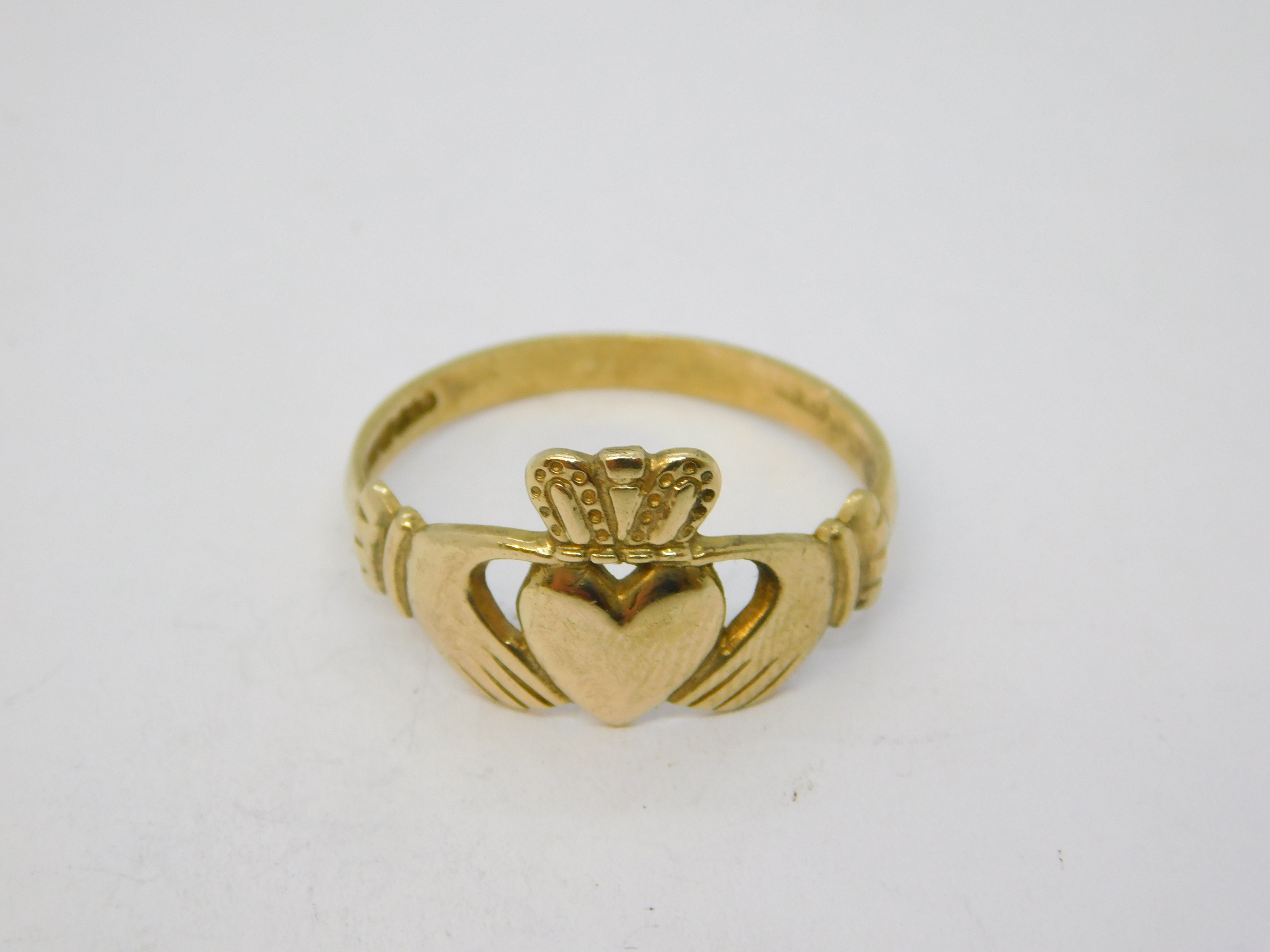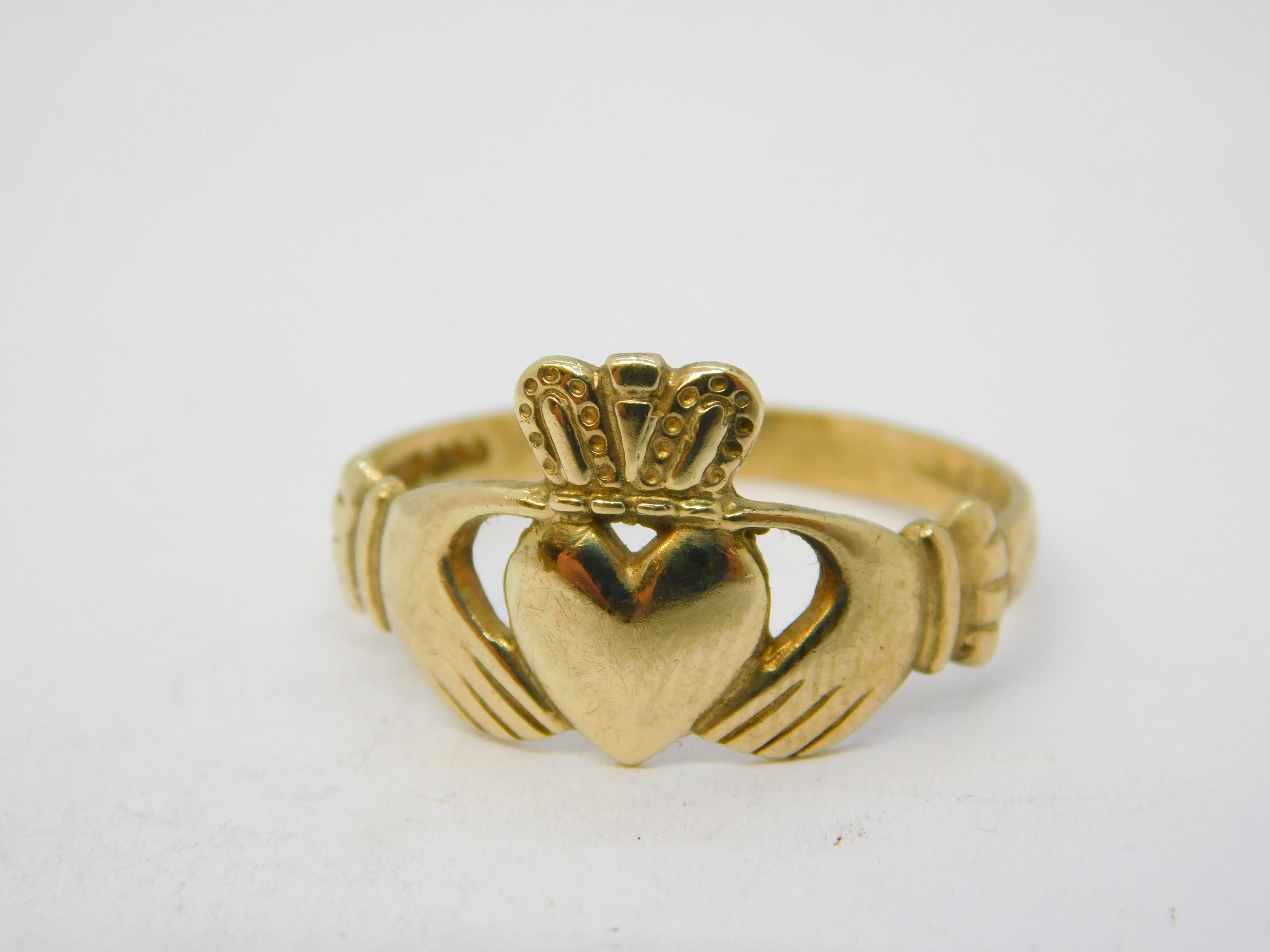 9ct Yellow Gold Irish Claddagh Wedding Ring Vintage c1970 Birmingham