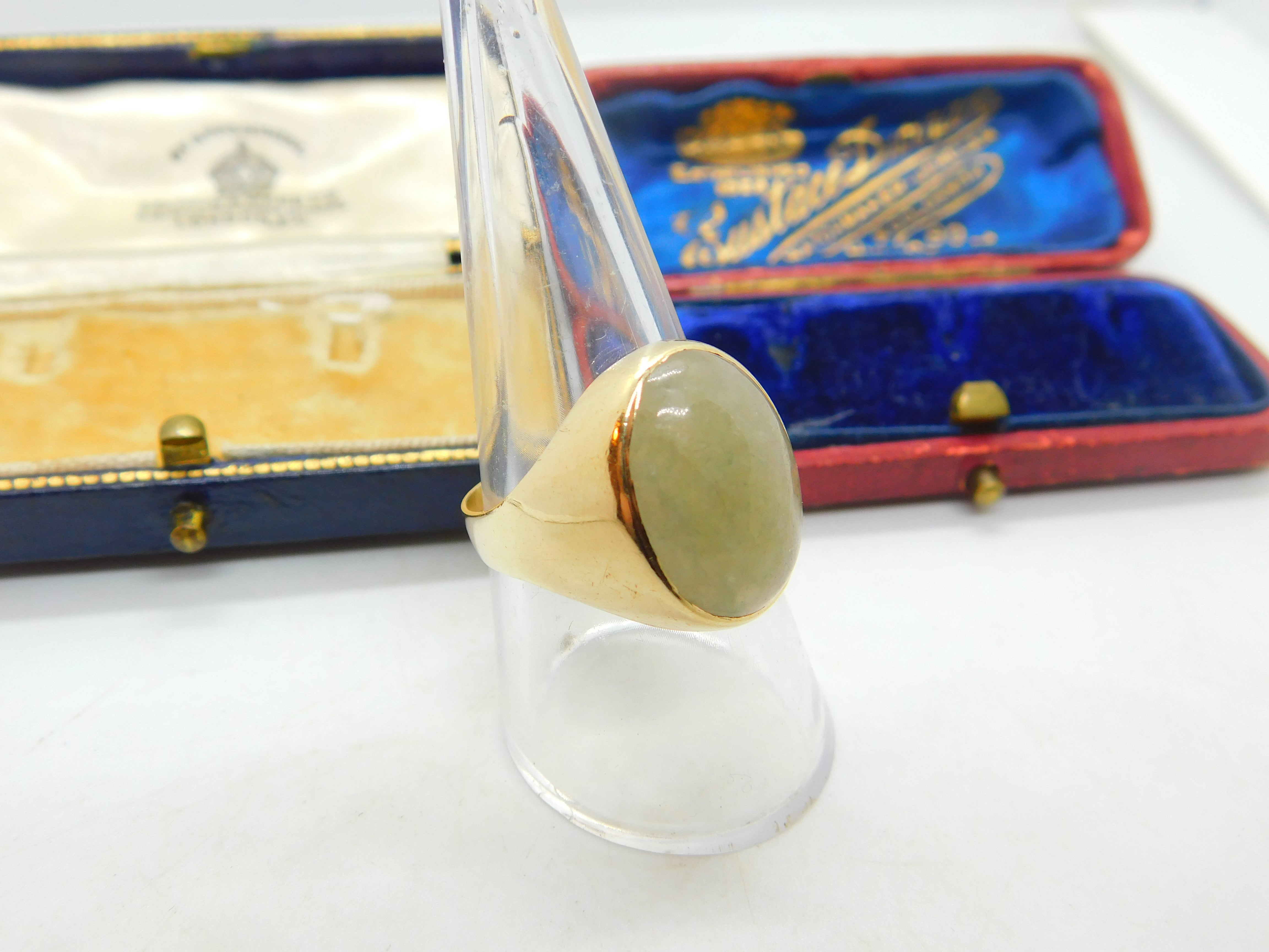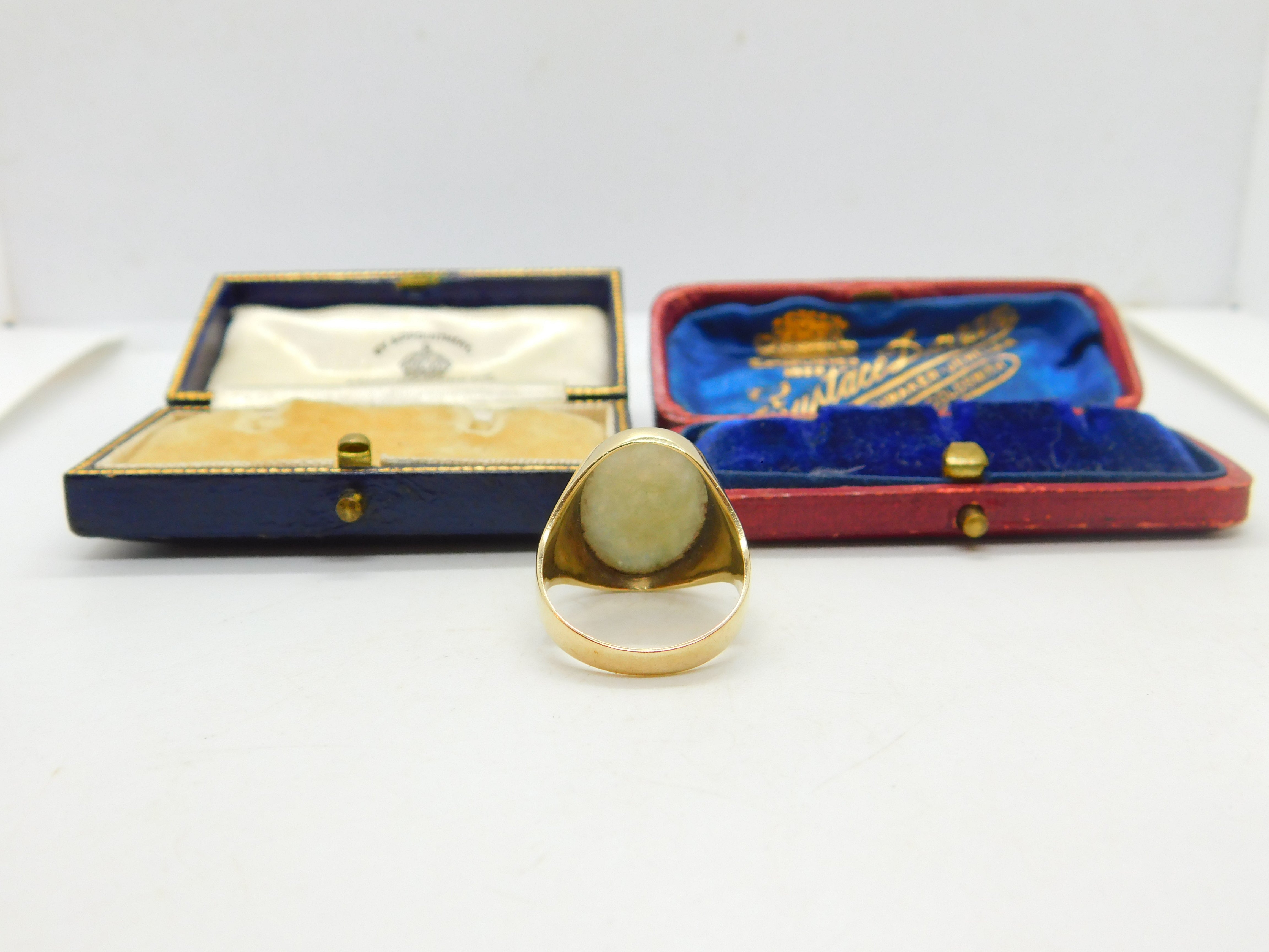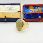 9ct Yellow Gold & Large Cabochon Jade Signet Ring Vintage 1967 London