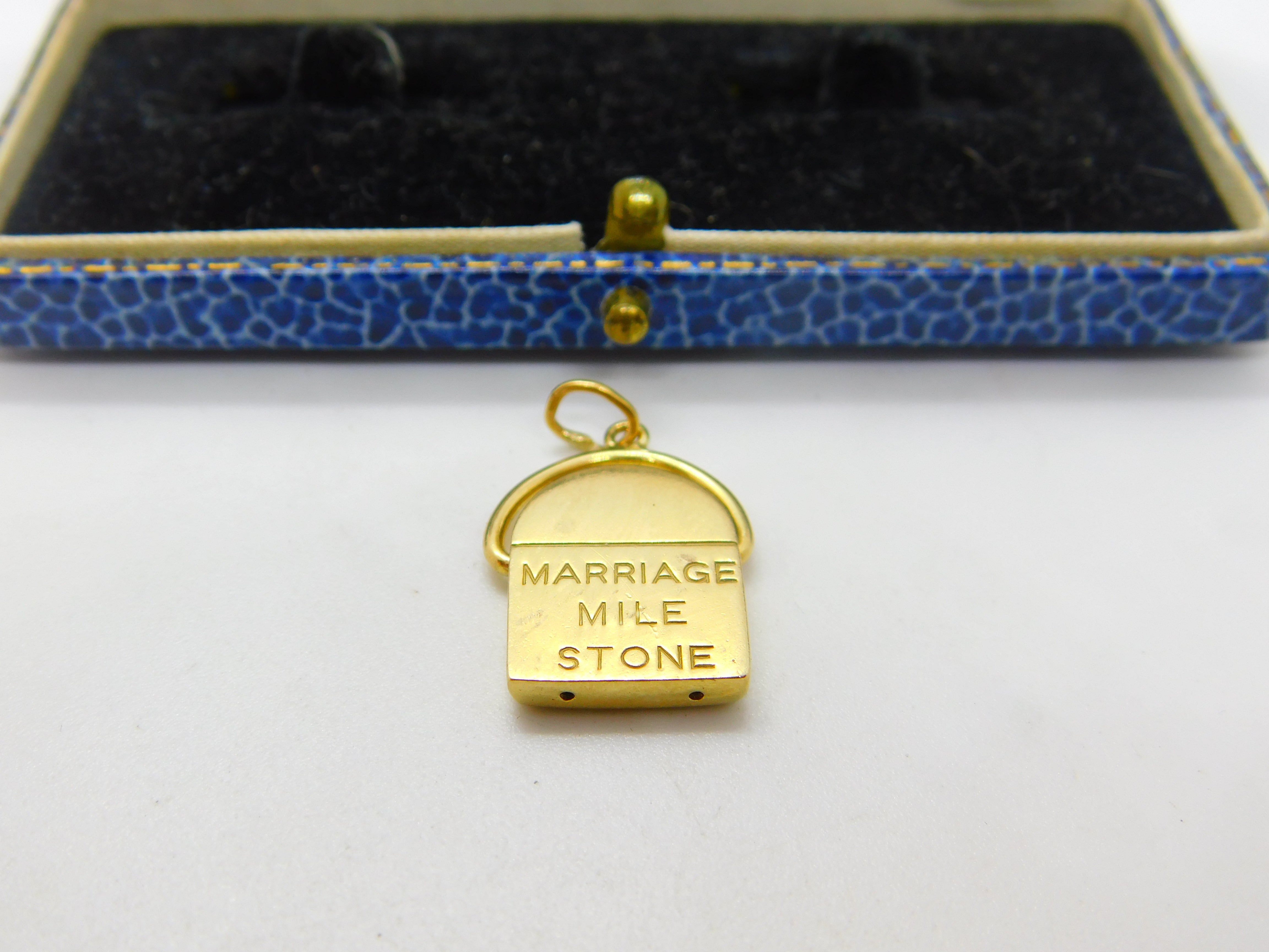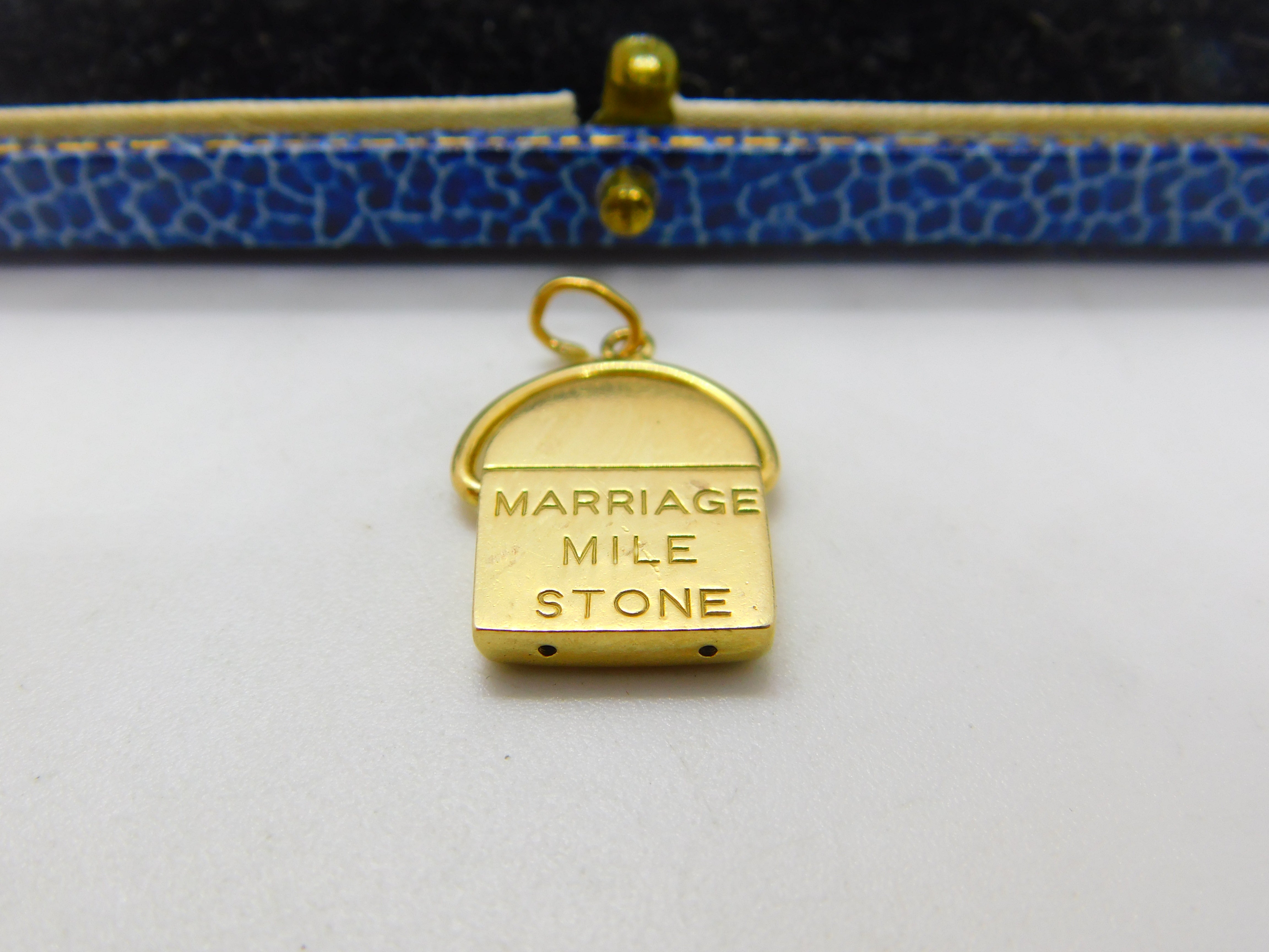 9ct Yellow Gold Marriage Milestone Spinner Charm Pendant Vintage 1967 London