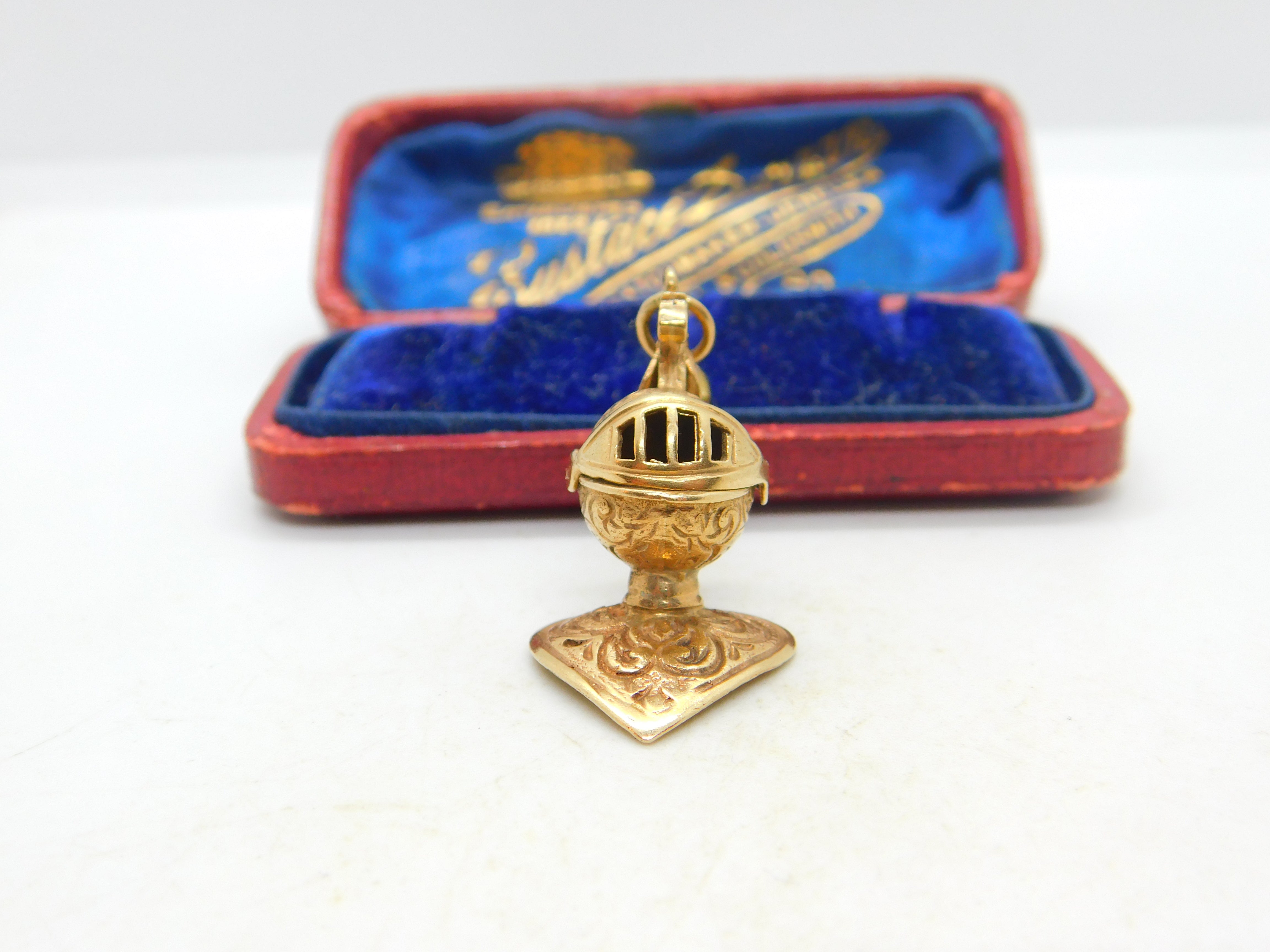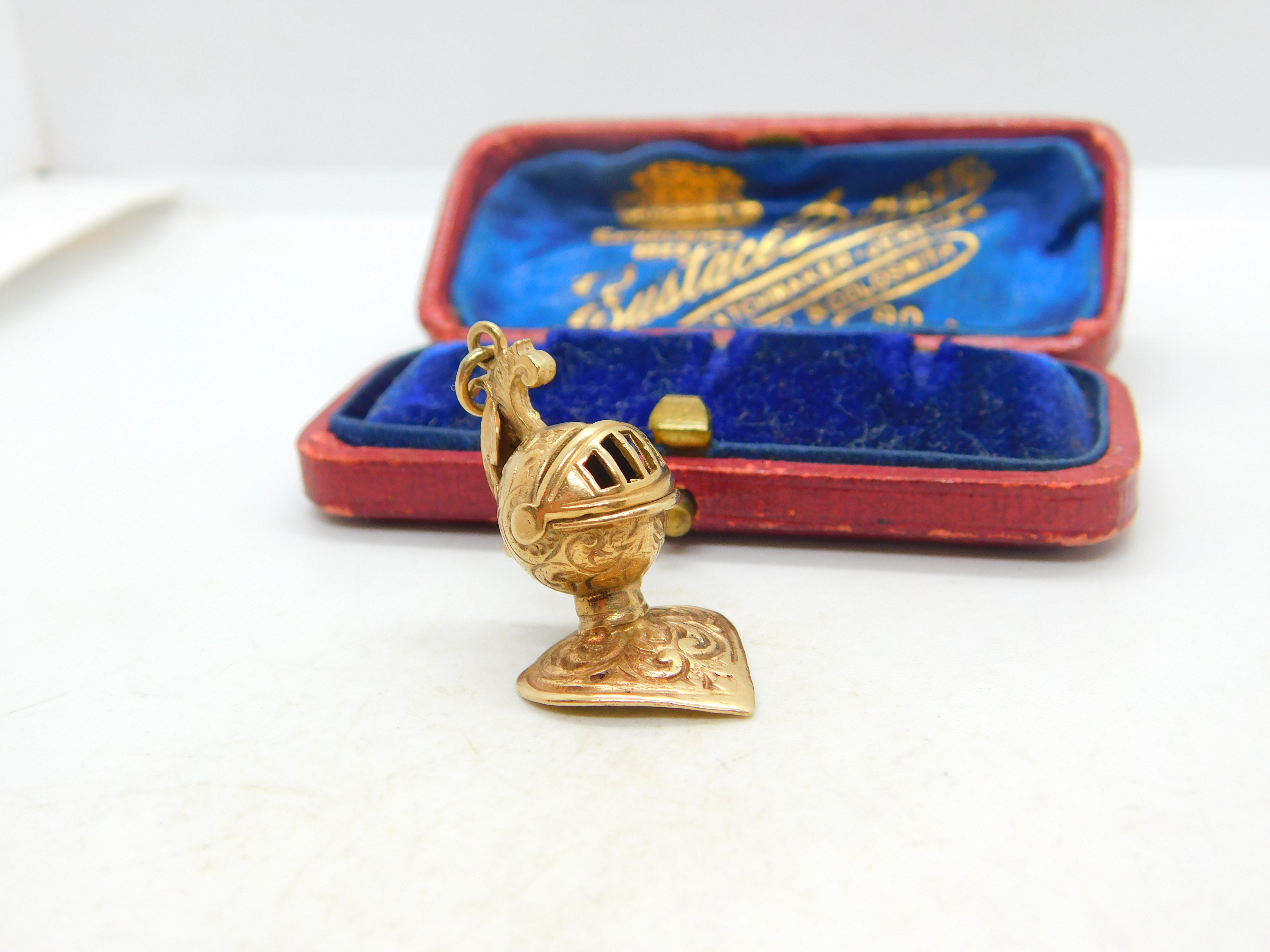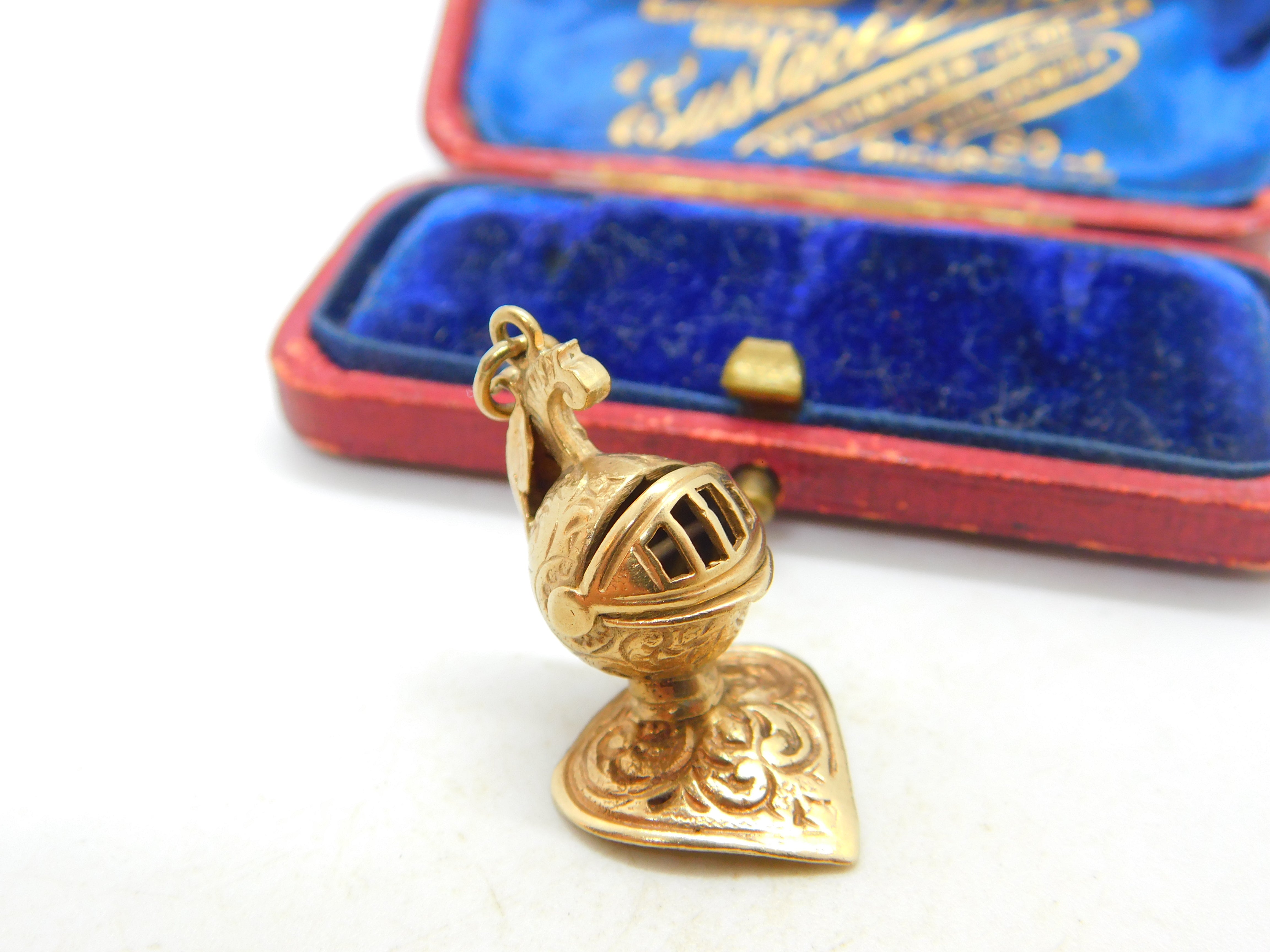 9ct Yellow Gold Medieval Knights Helmet Charm Pendant Vintage 1964 London