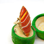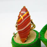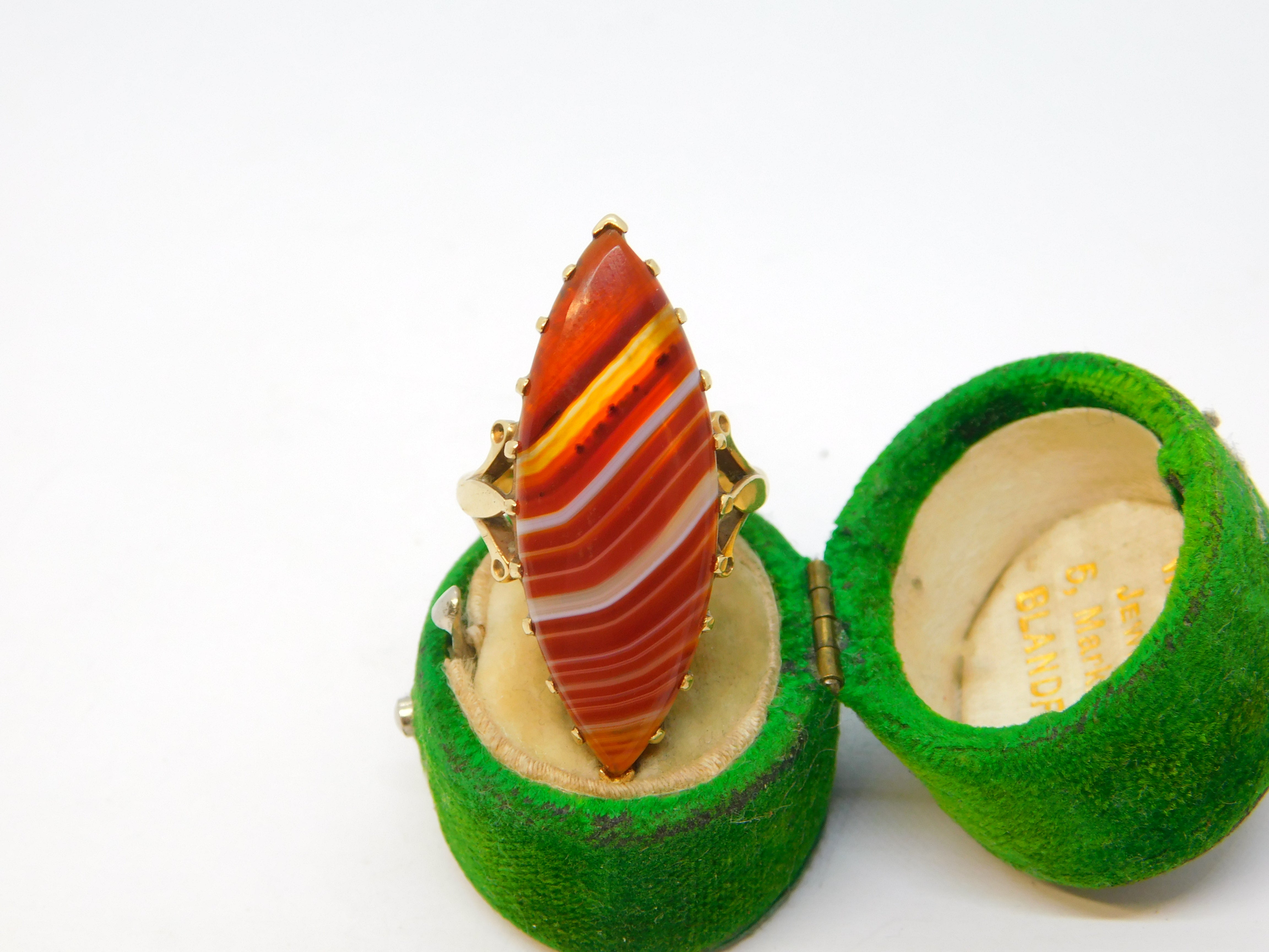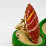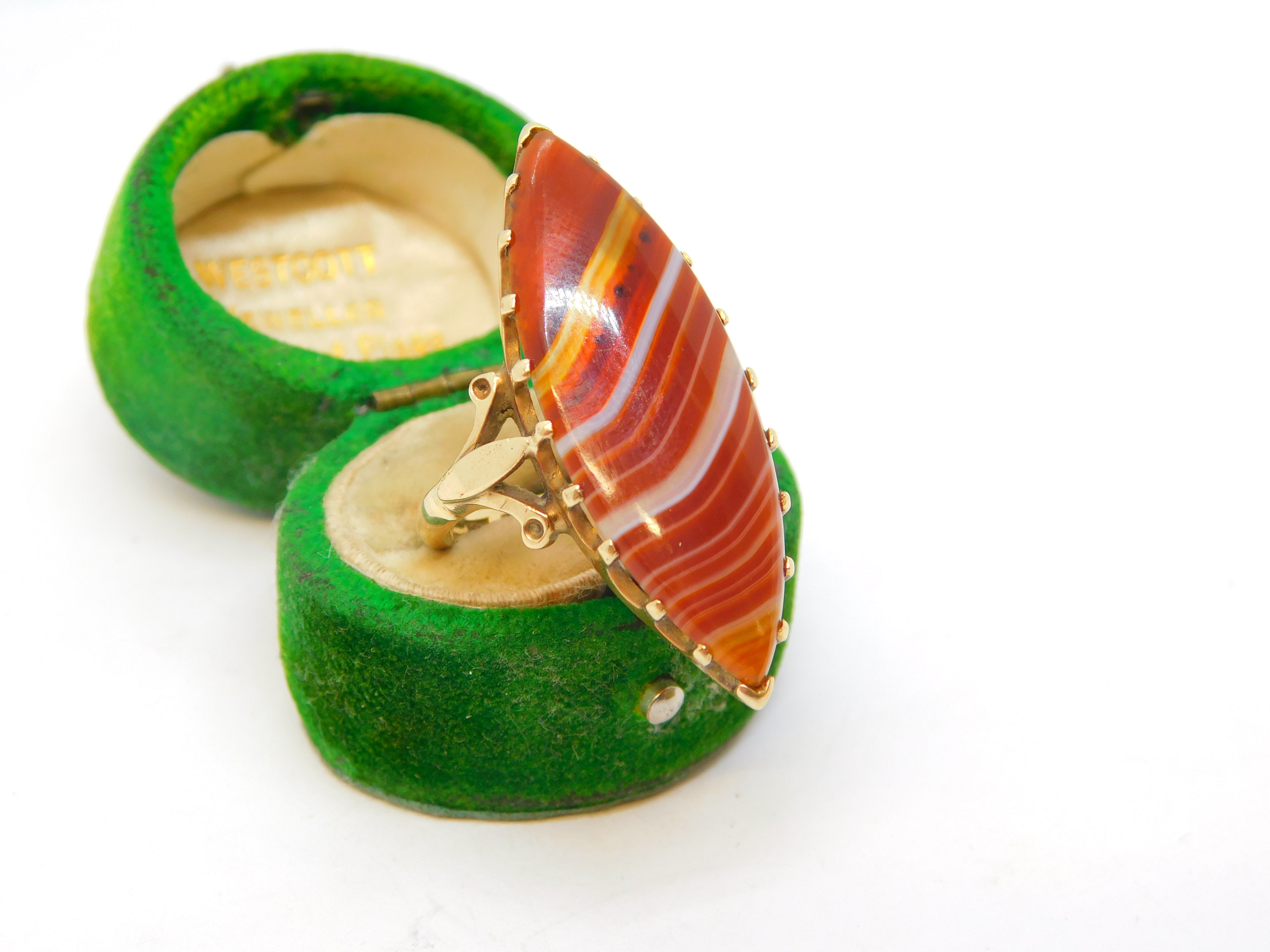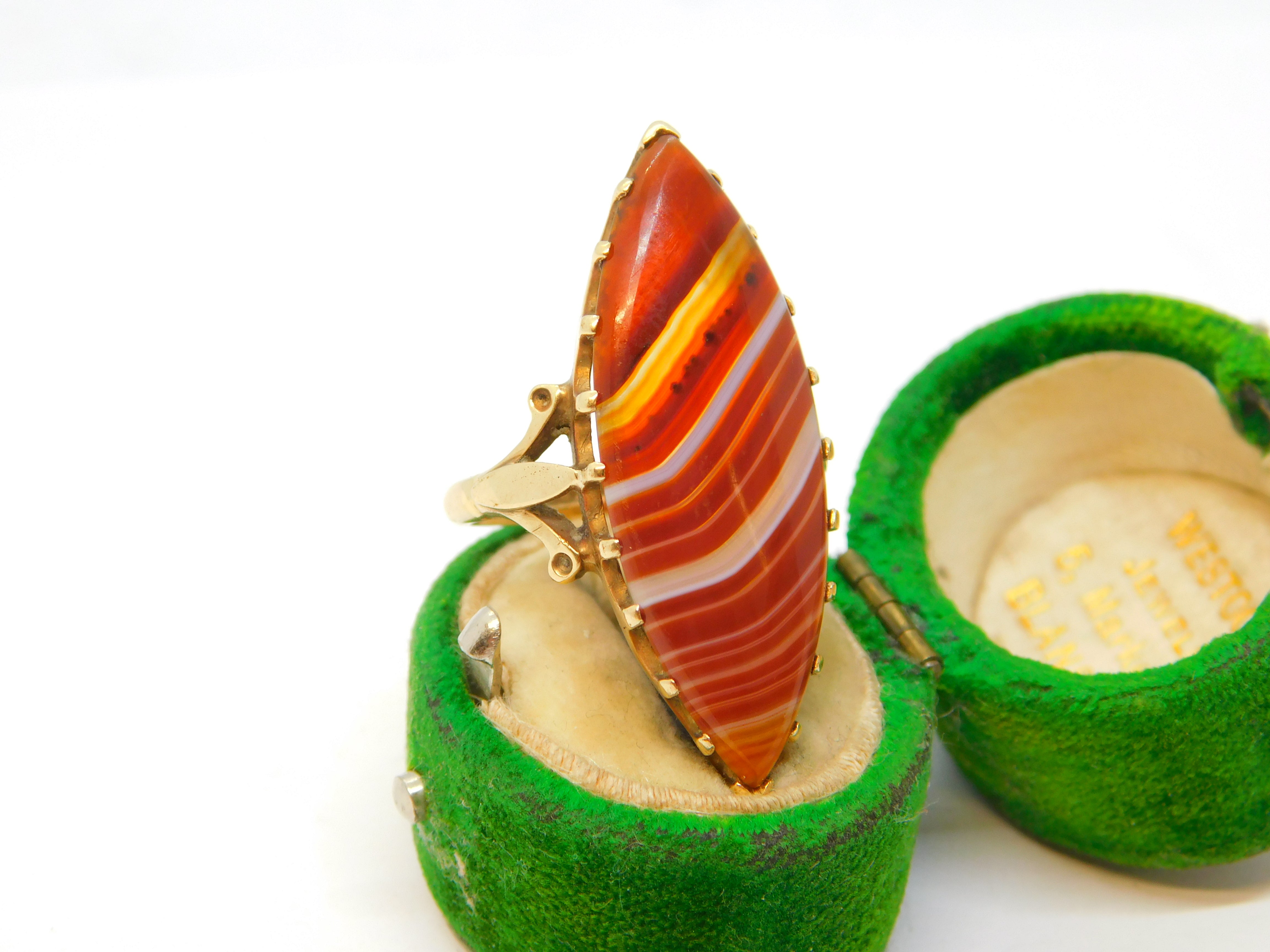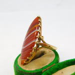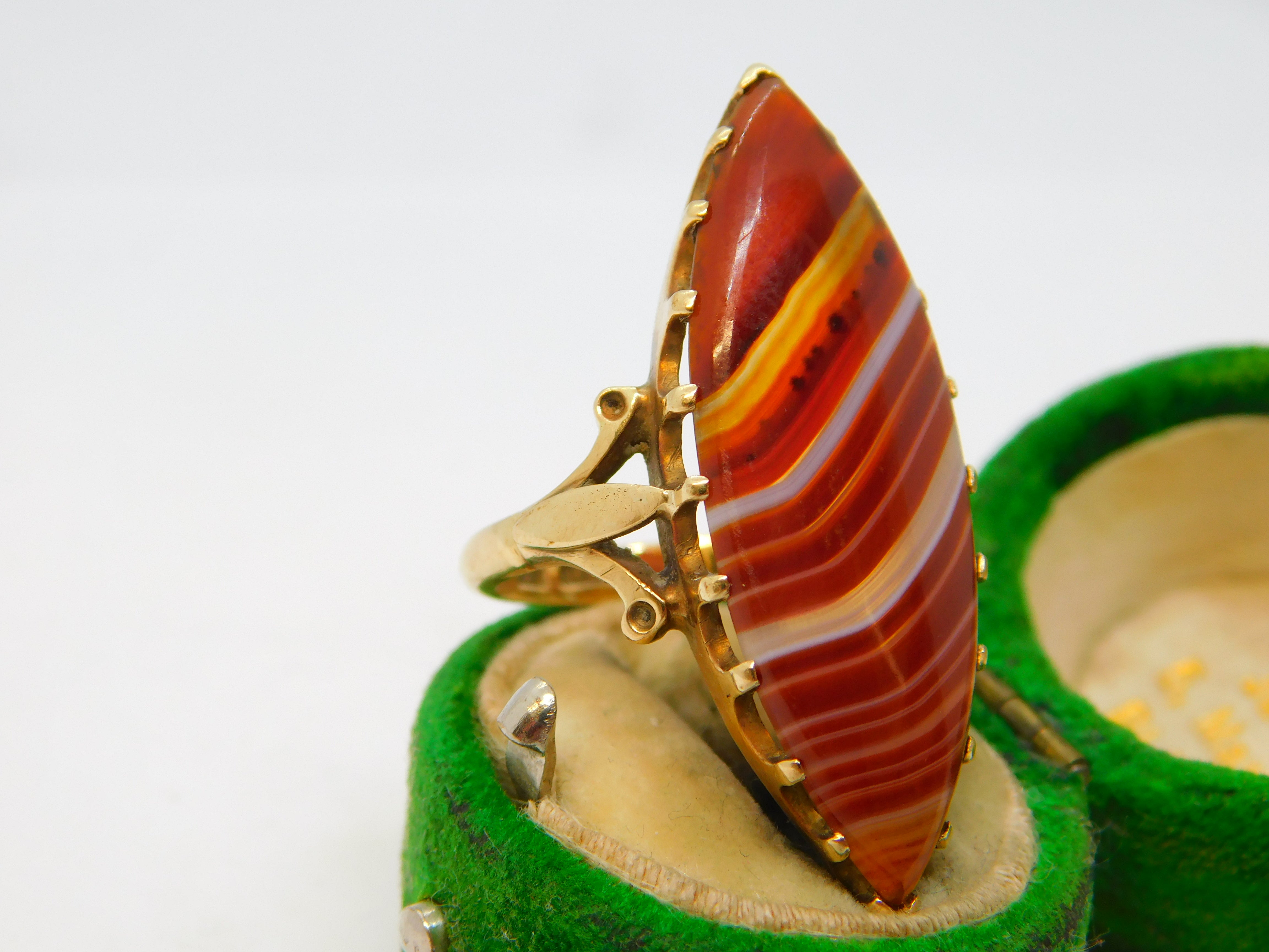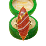 9ct Yellow Gold Mounted Large Marquise-Cut Banded Agate Ring Antique c1900
