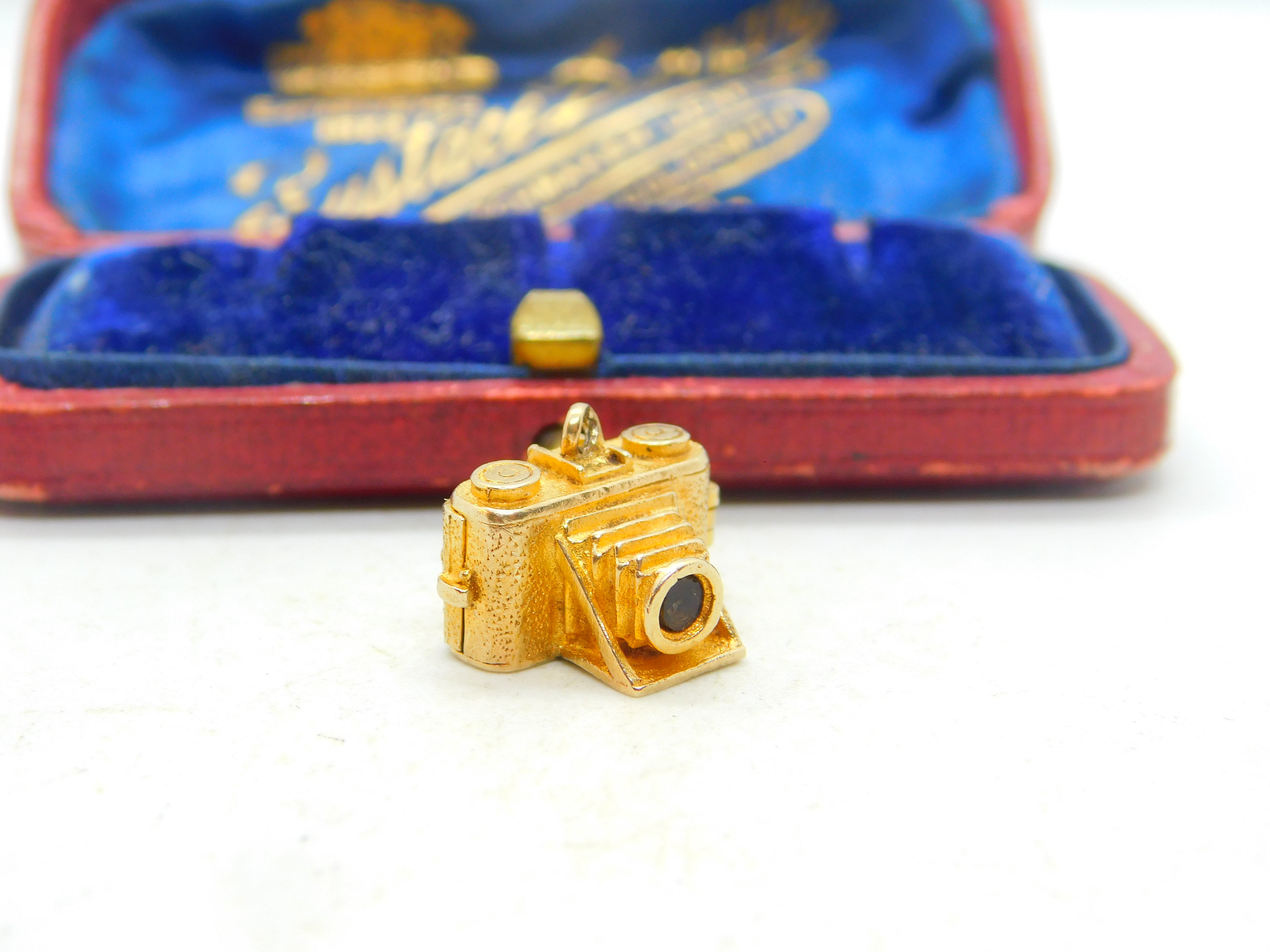 Details: A fantastic and wonderfully designed vintage 9ct yellow gold charm pendant in the form of a traditional film camera opening to the back hallmarked Birmingham 1961 to the base. This is a wonderful item that would make a perfect gift or addition to any collection. The BOX pictured is for PRESENTATION ONLY and is NOT included in the listings but used to frame the pictures unless specifically stated otherwise.
