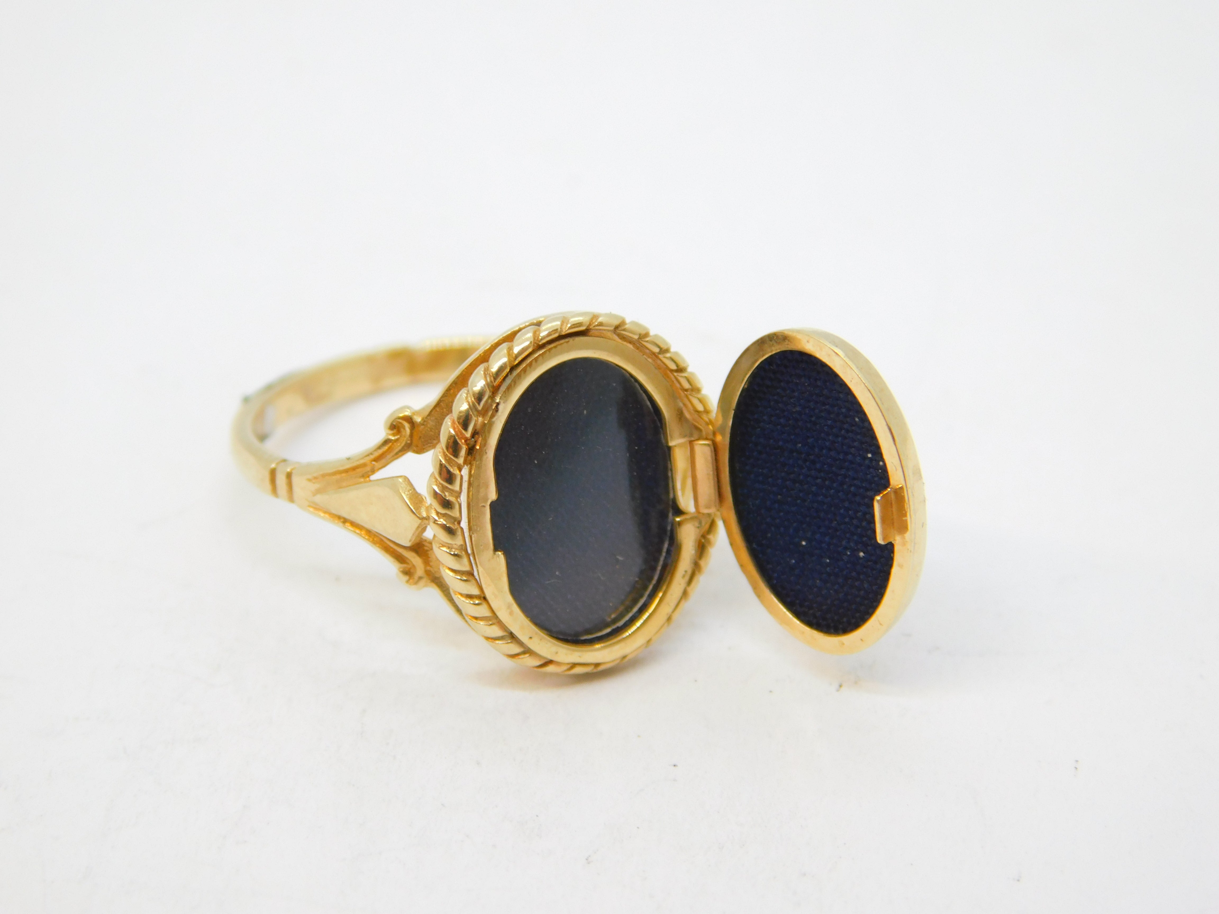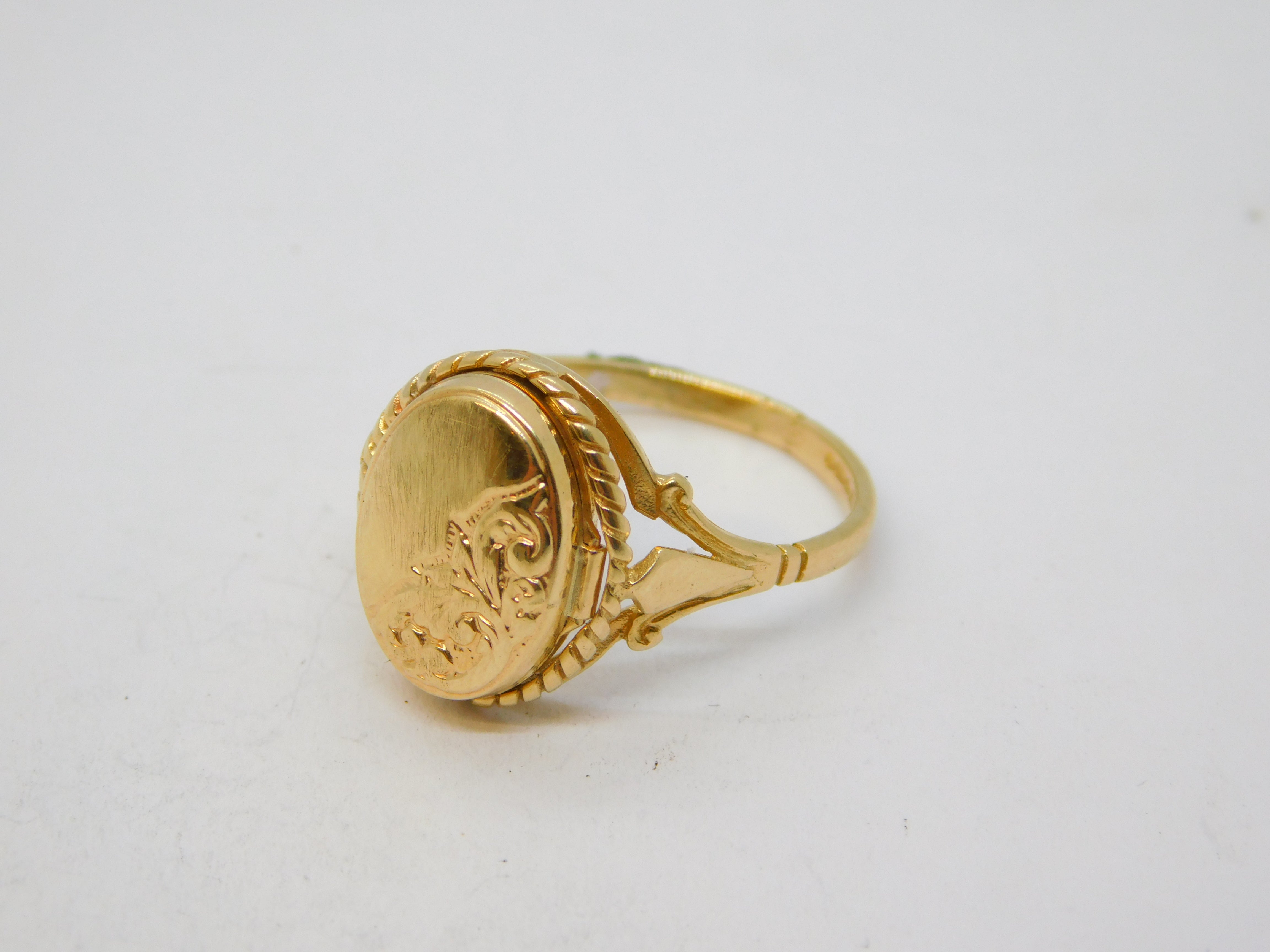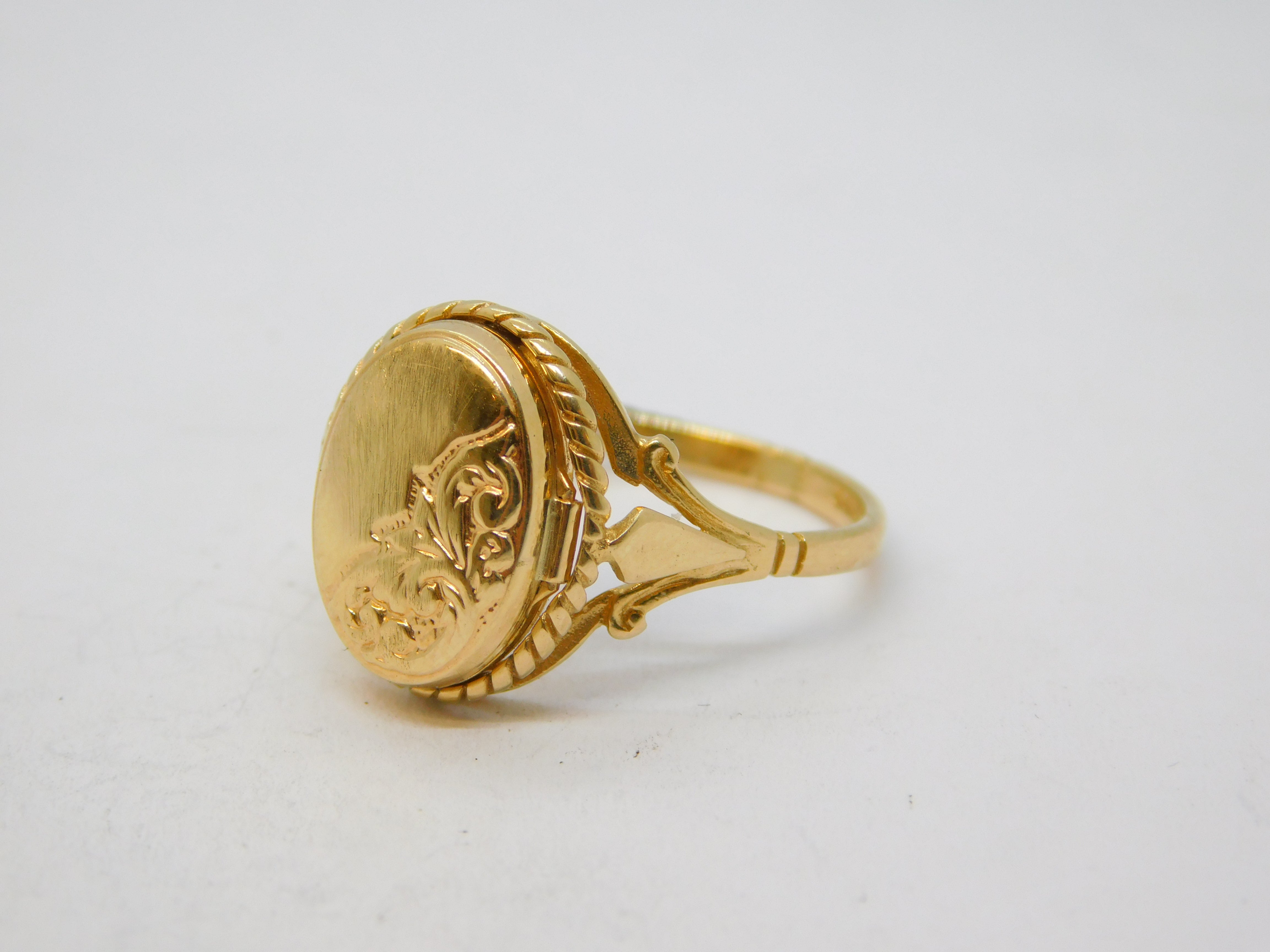 9ct Yellow Gold Opening Locket Face Dress Ring Vintage c1970 Birmingham