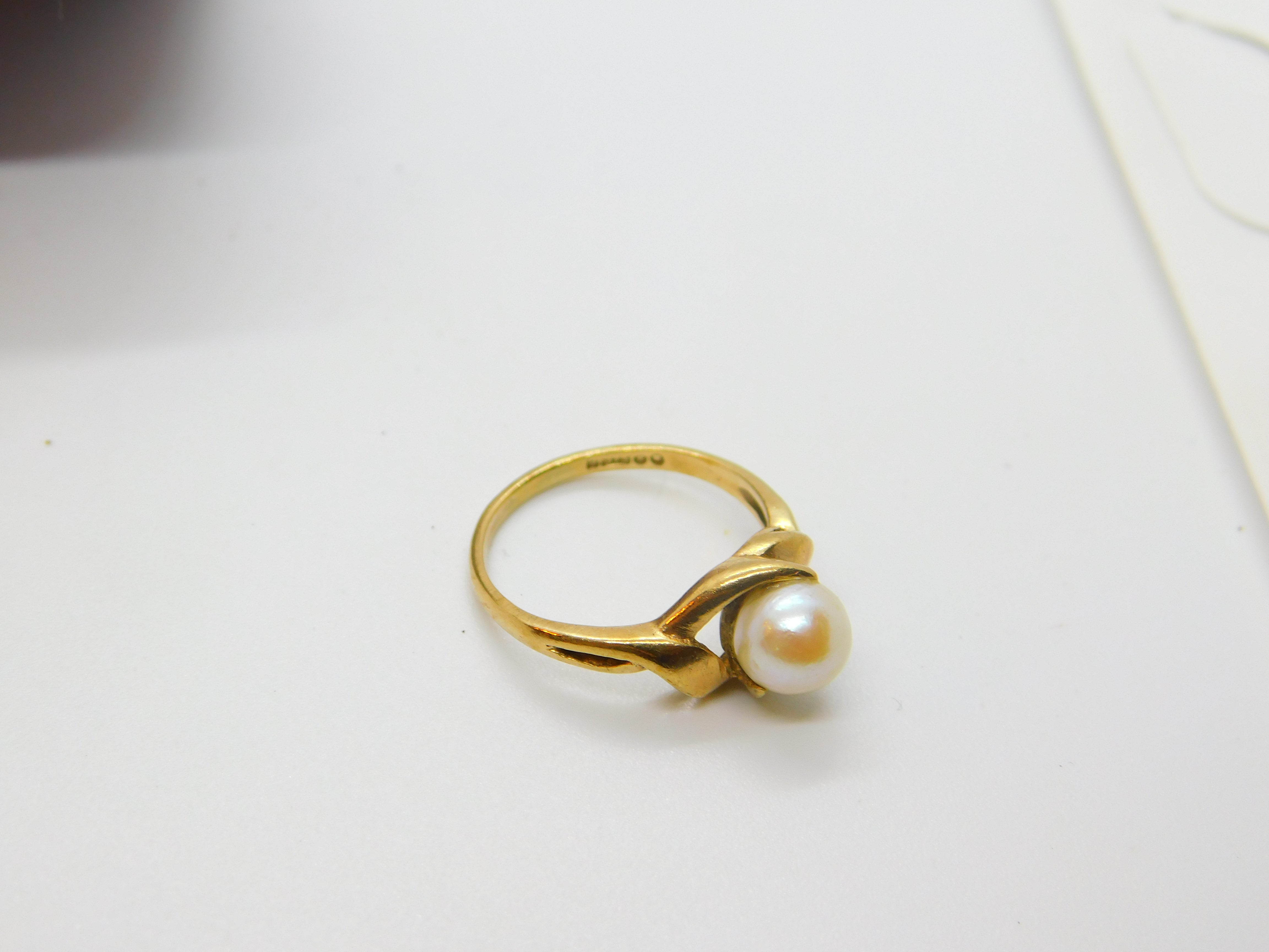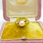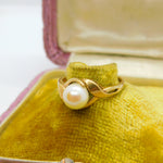 9ct Yellow Gold & Pearl Set Band Ring Vintage 1984 London