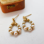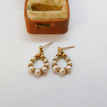 9ct Yellow Gold Pearl Set Modernist Drop Earrings 1982 Birmingham Vintage