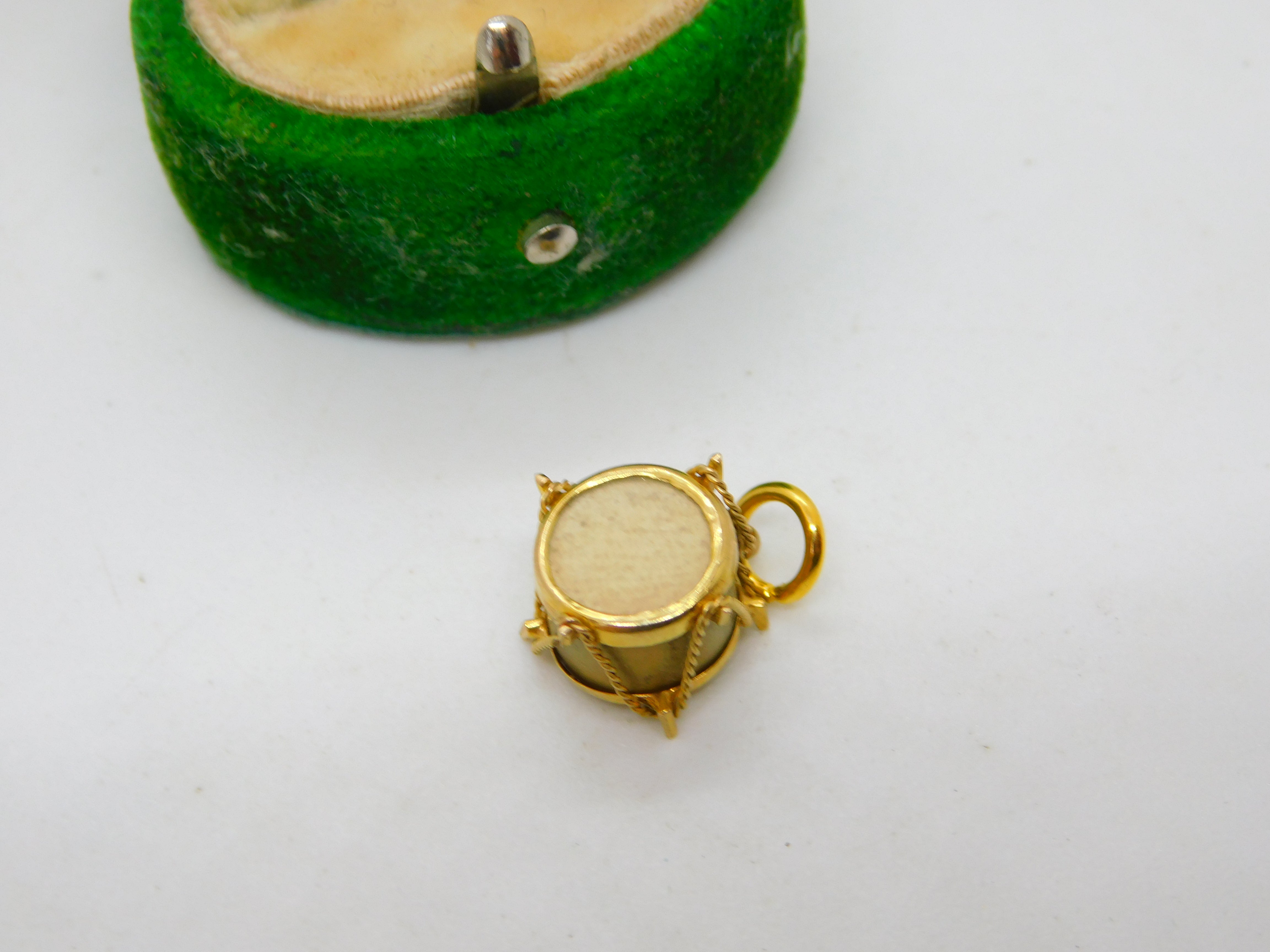 9ct Yellow Gold Percussion Drum Charm Pendant Vintage 1977 London