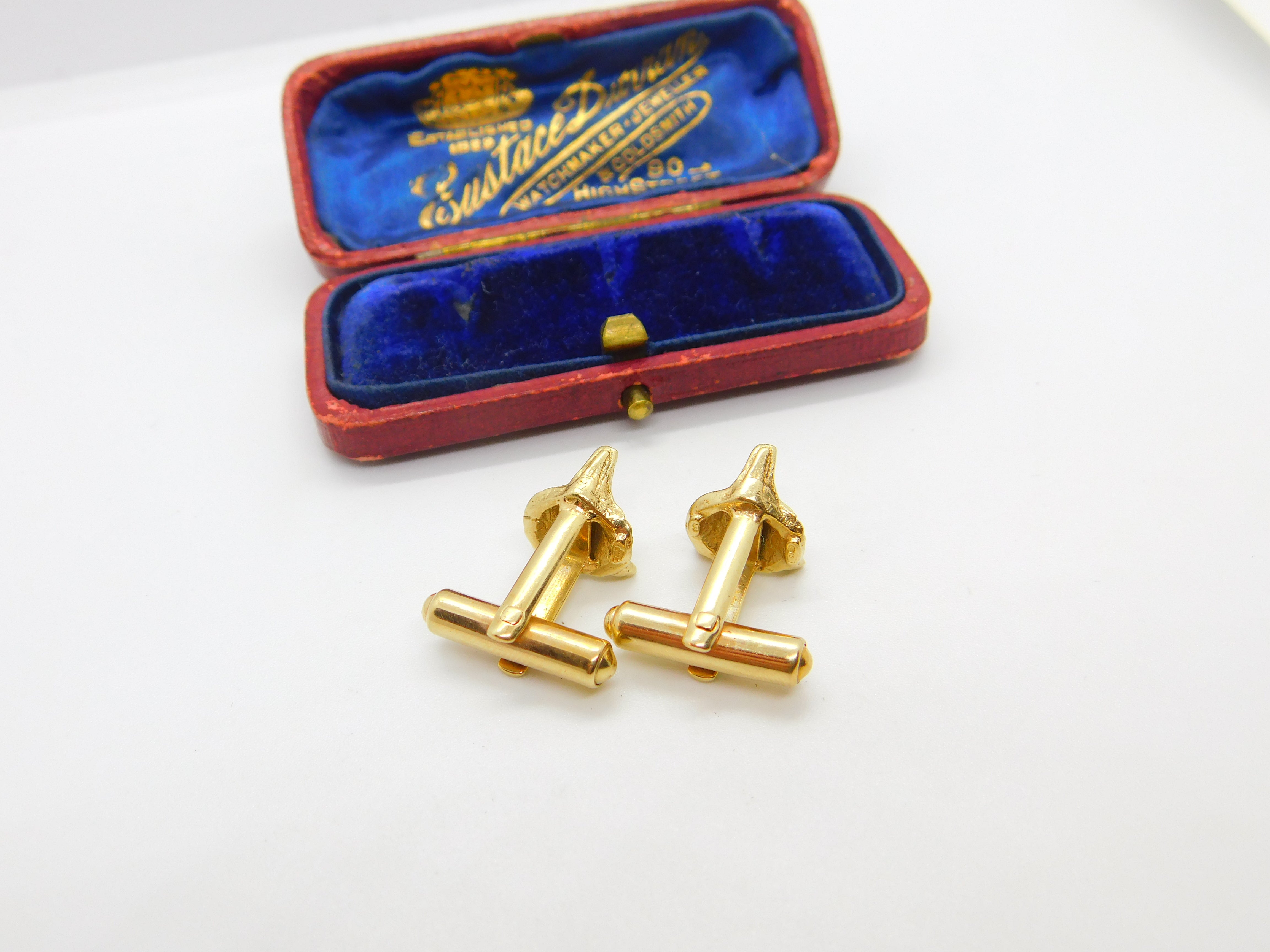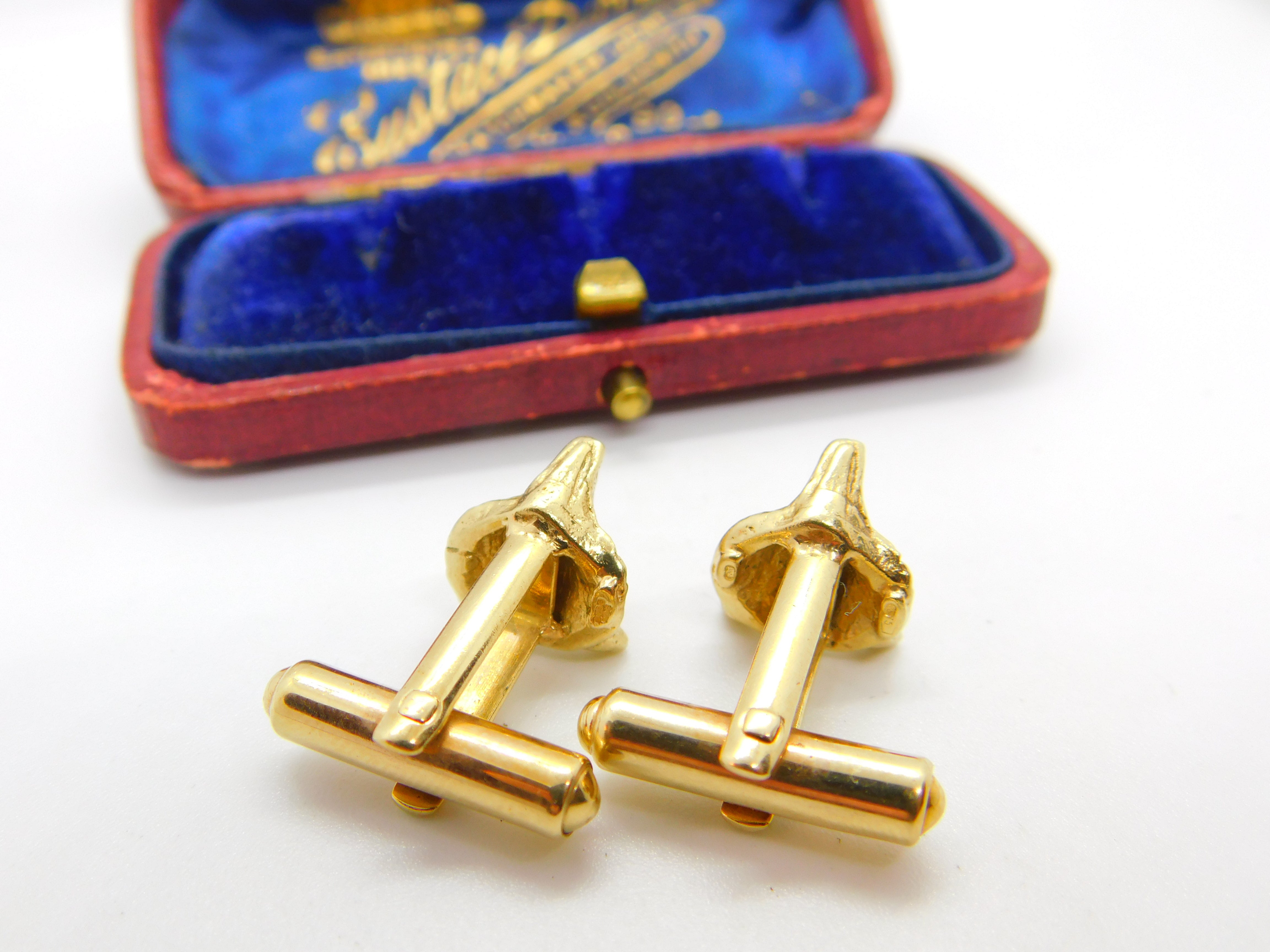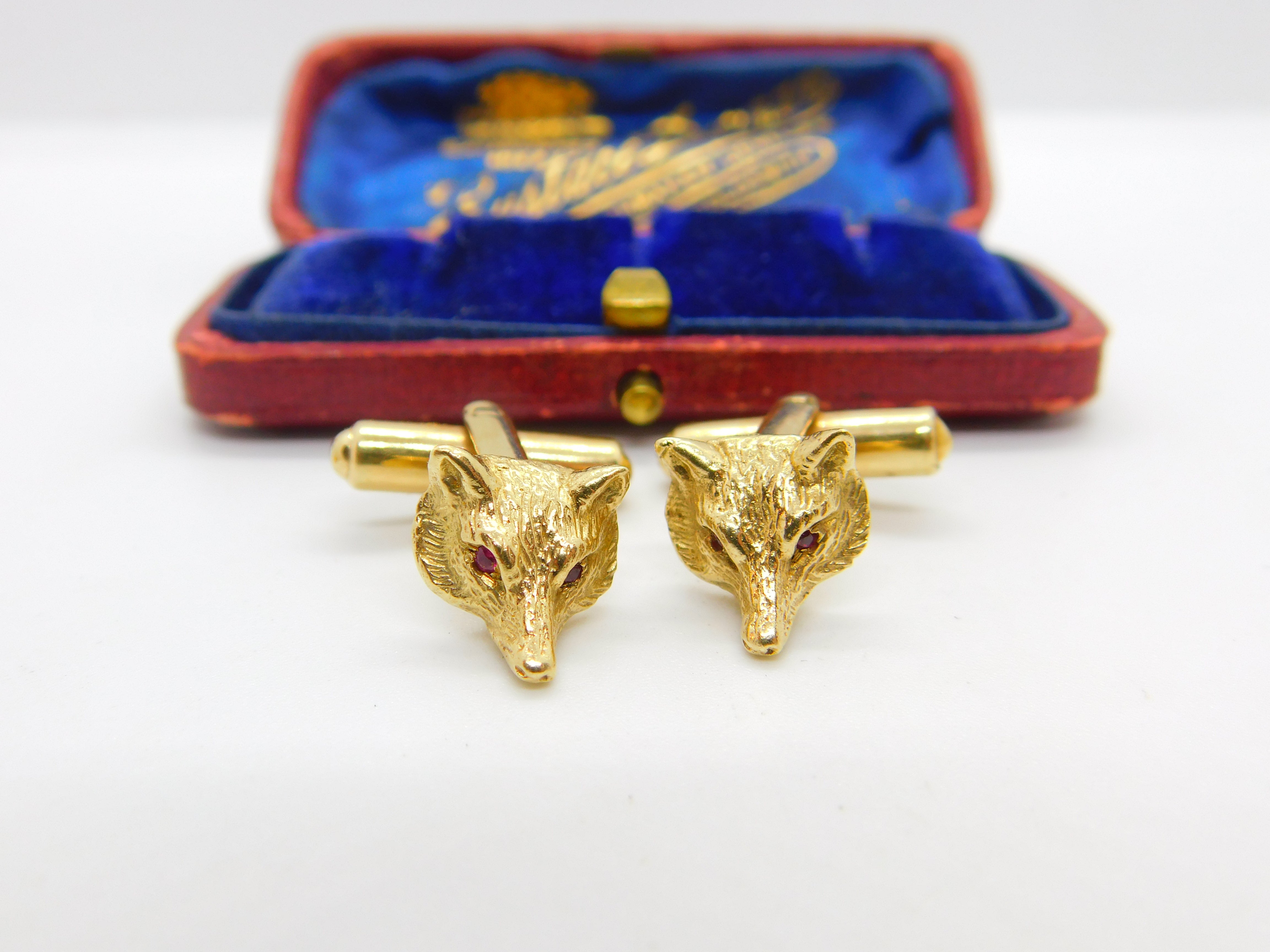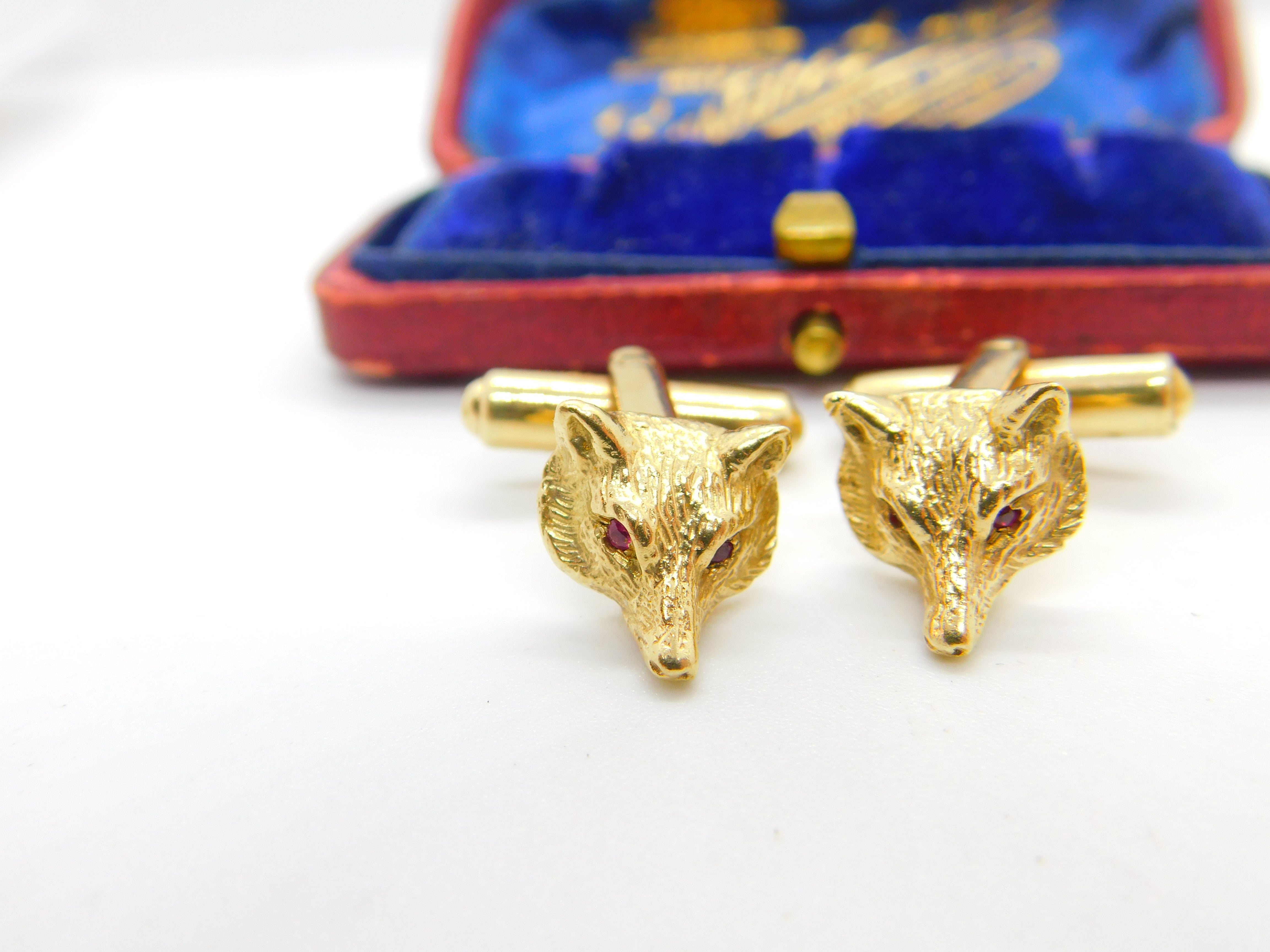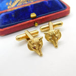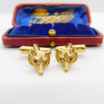 9ct Yellow Gold & Ruby Eye Gents Fox Mask Hunting Cufflinks Vintage c1980