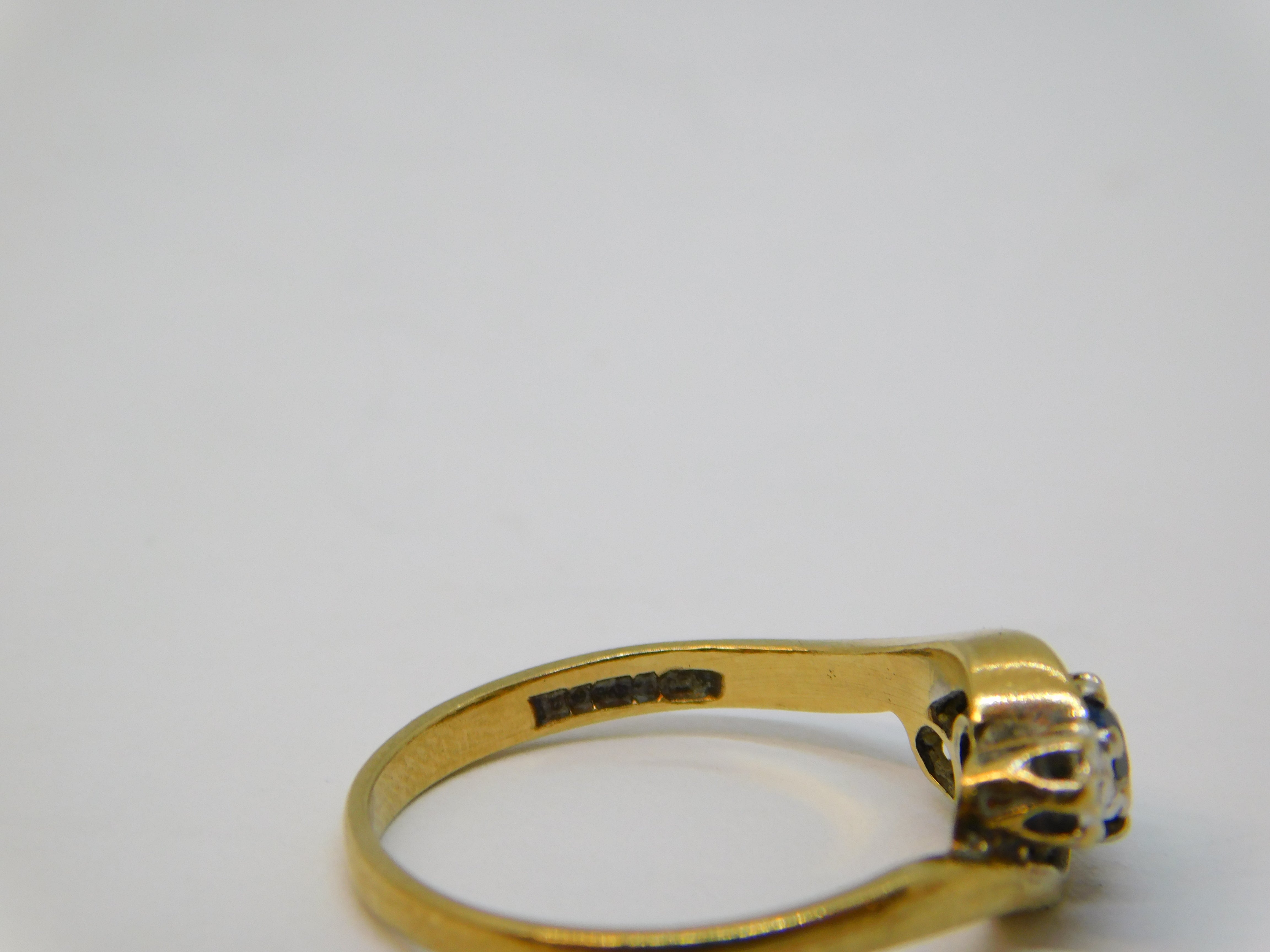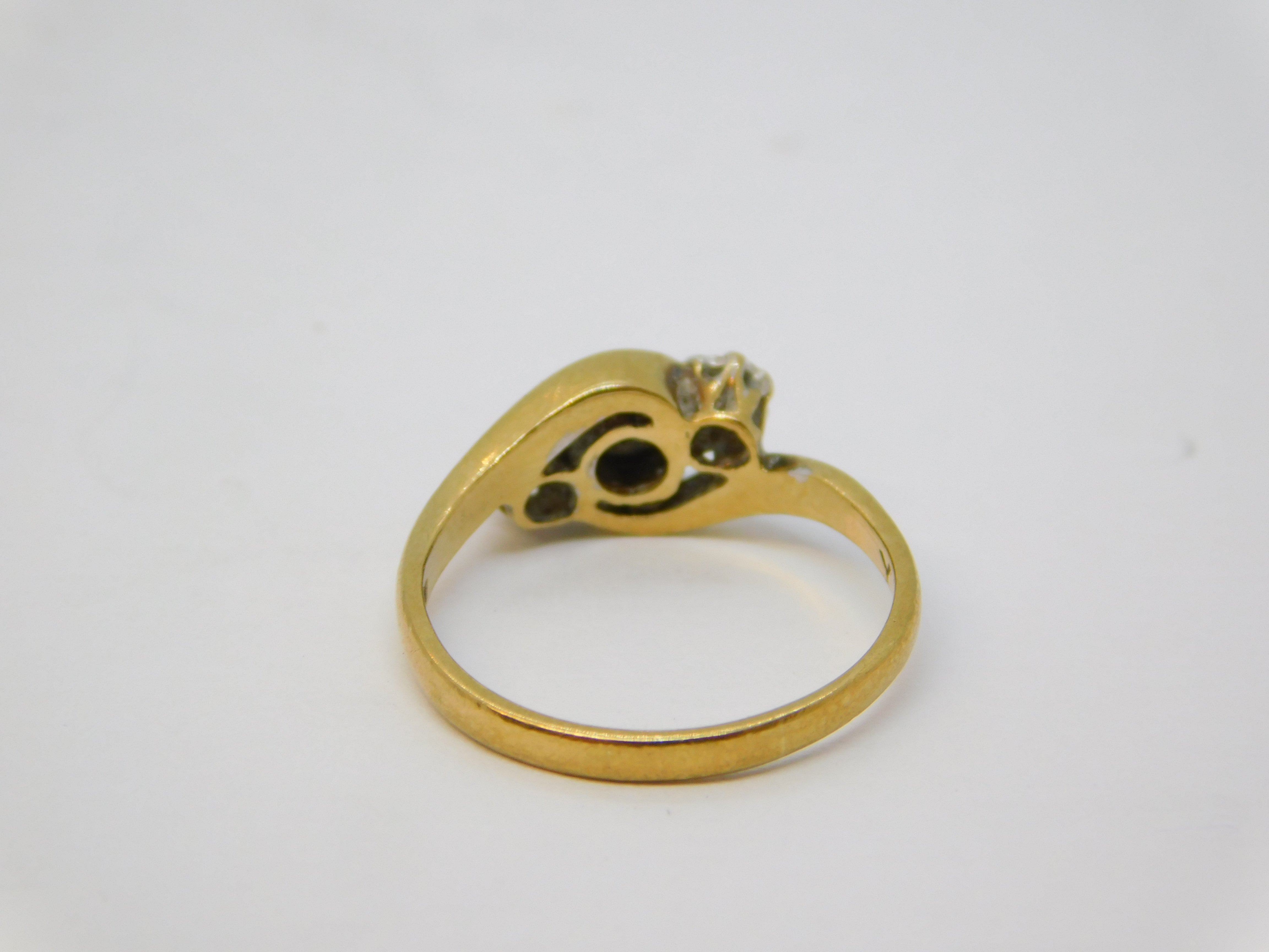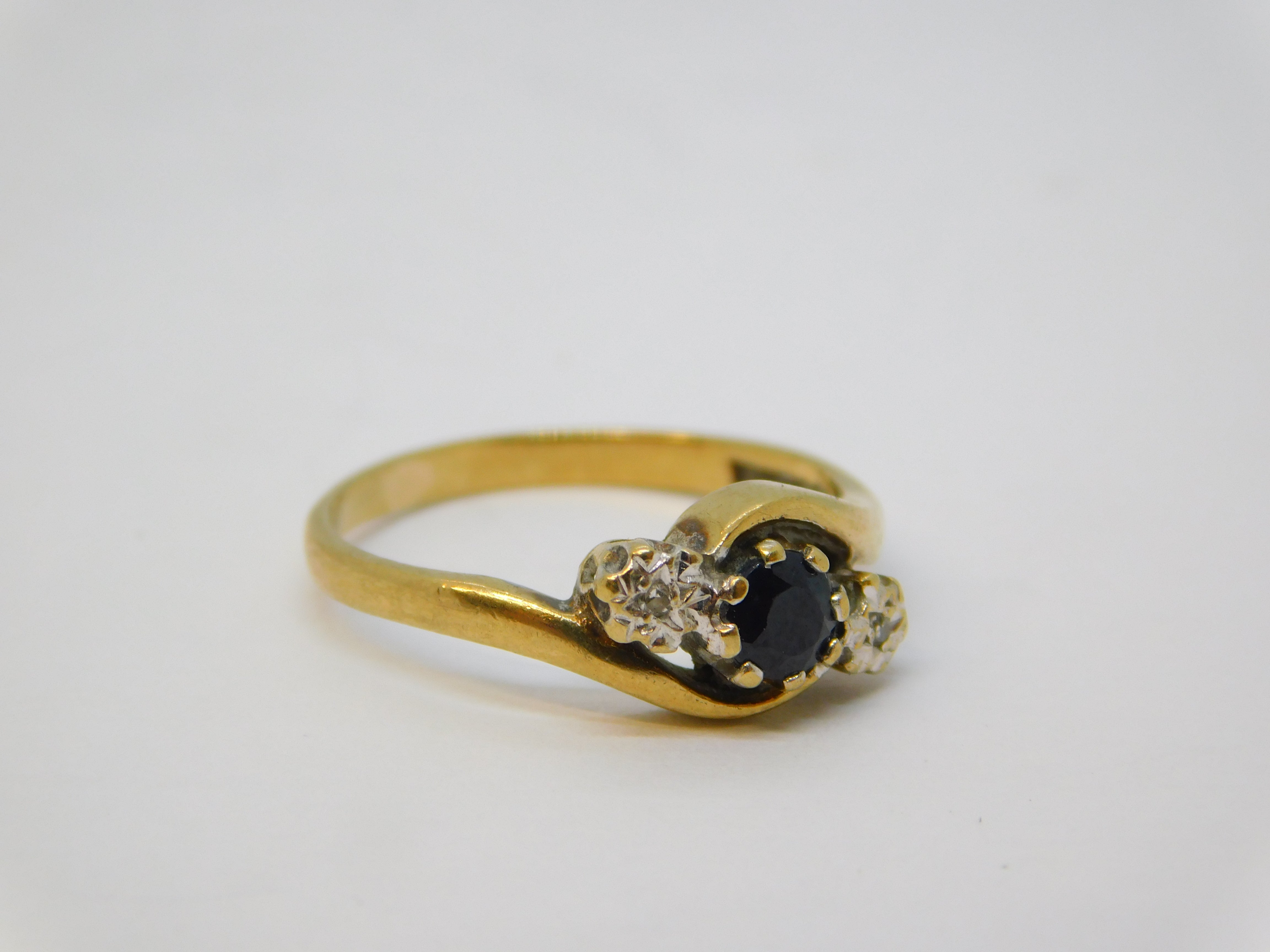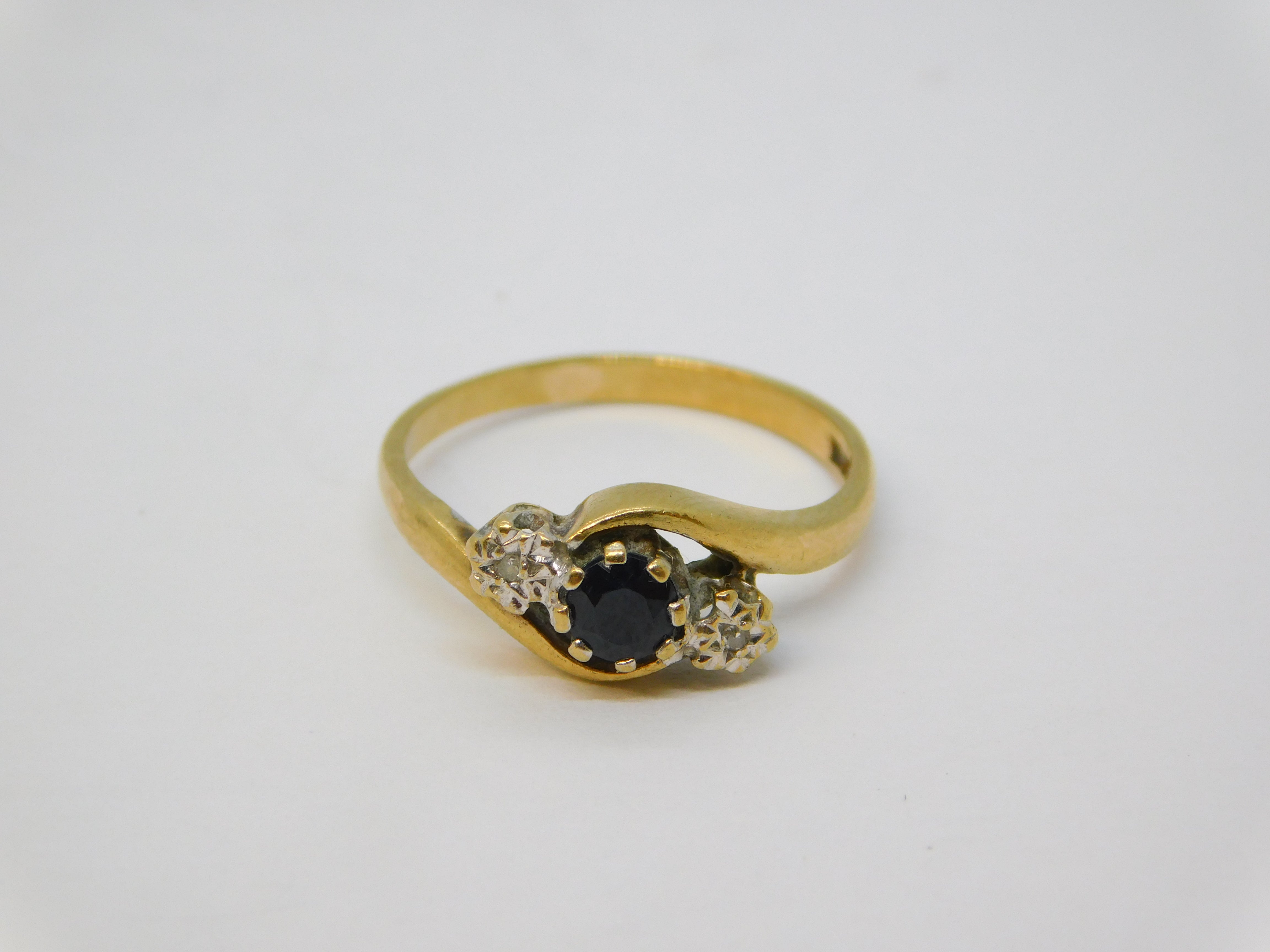 9ct Yellow Gold, Sapphire & Diamond Crossover Ring Vintage 1990 Birmingham
