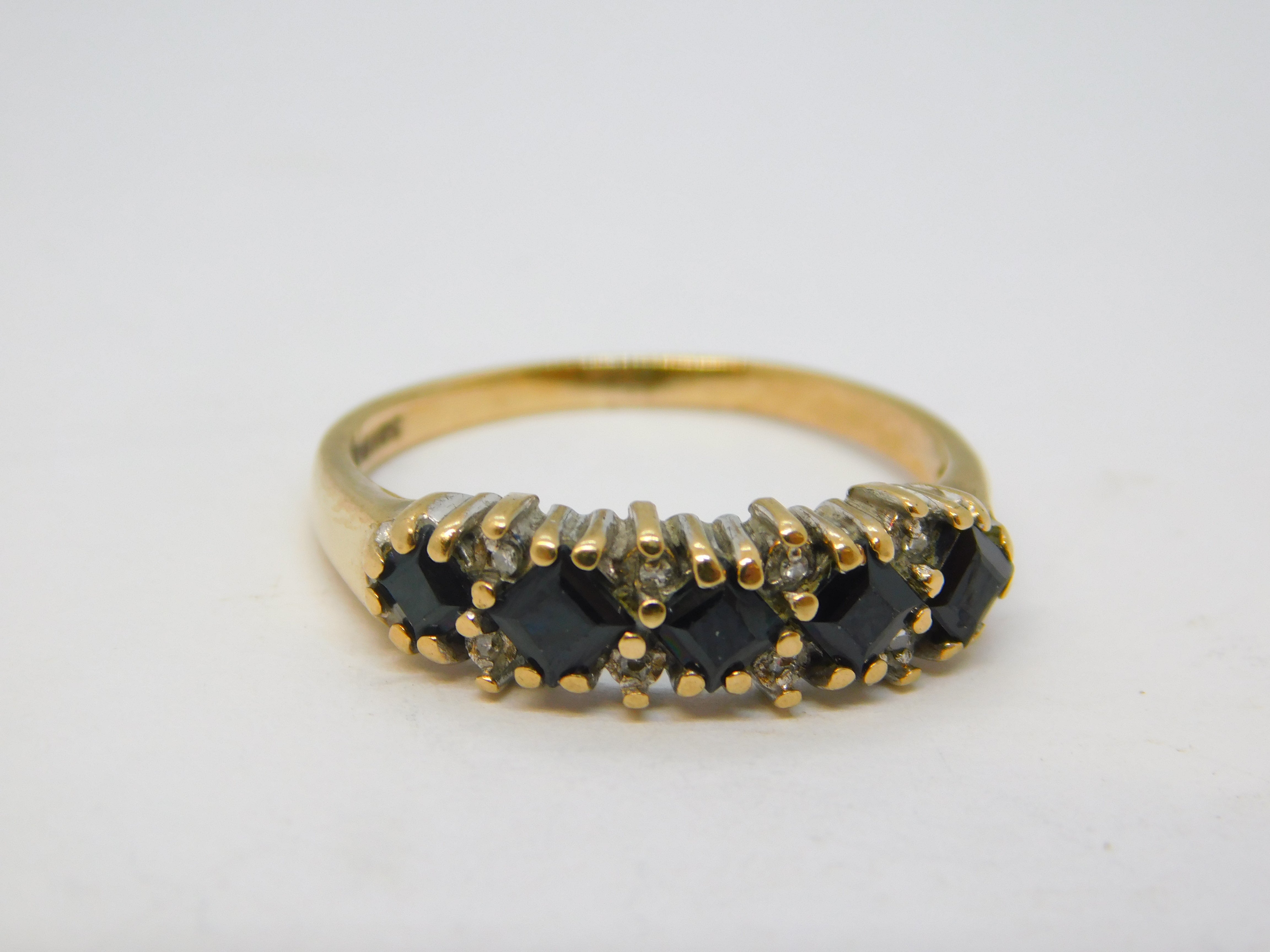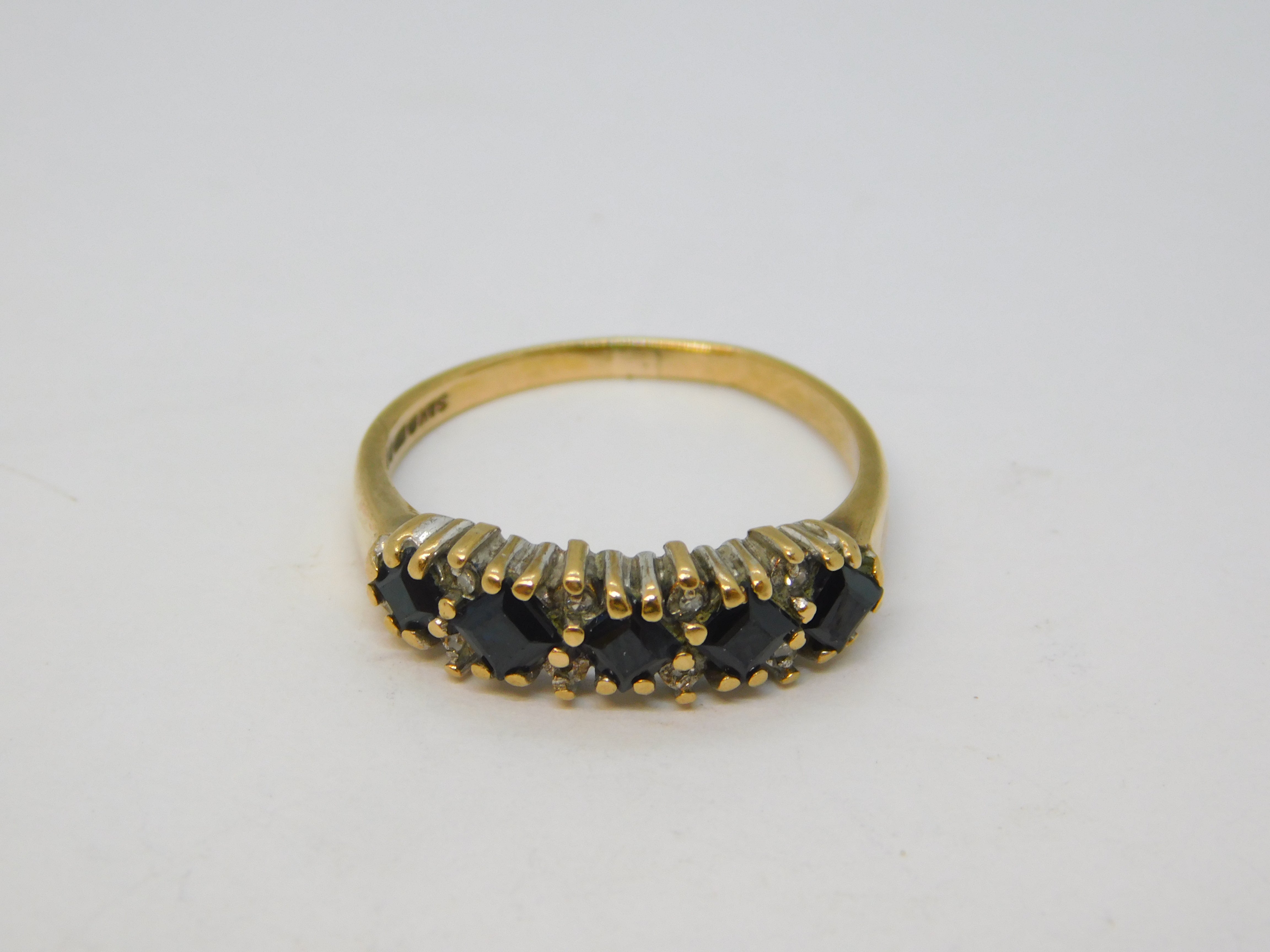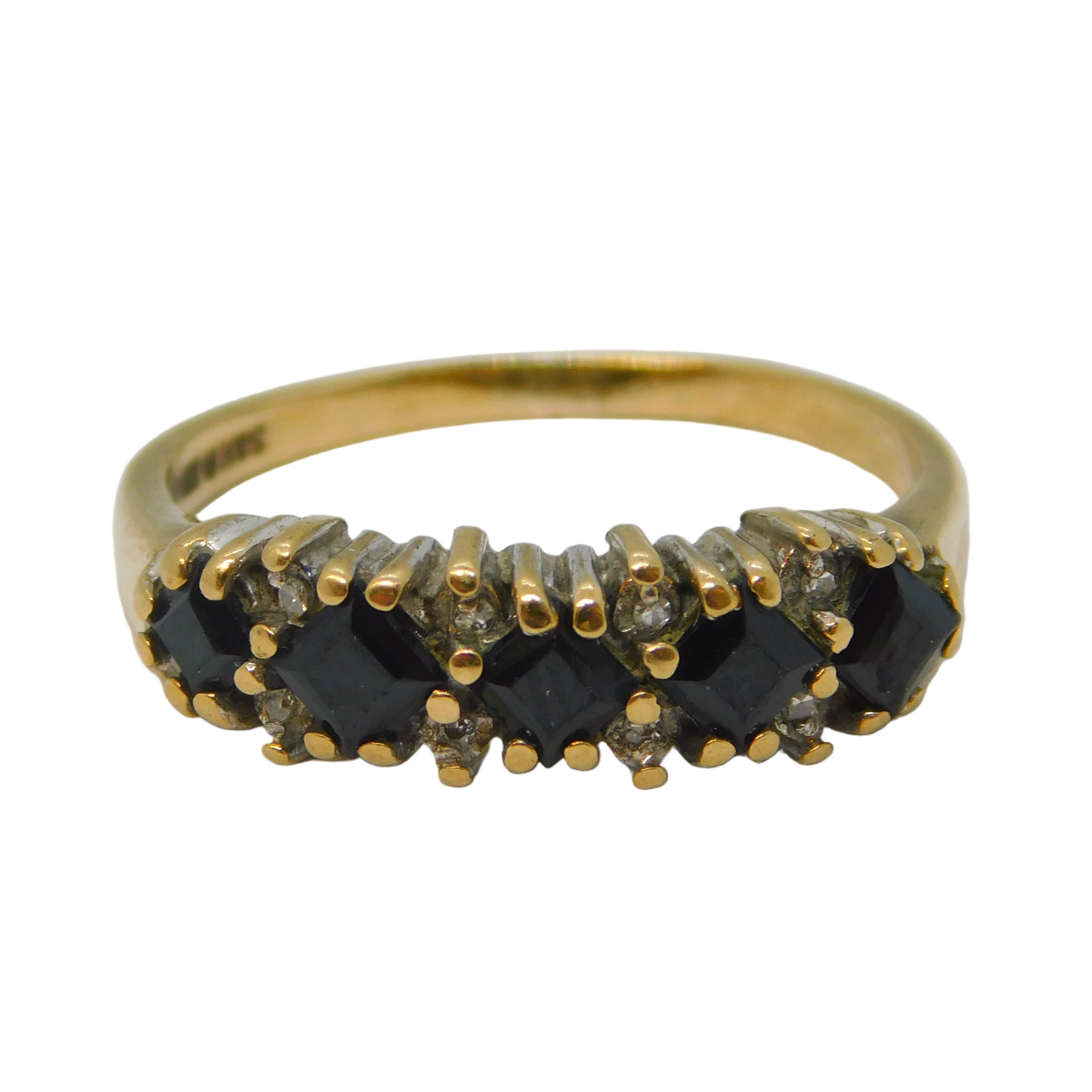9ct Yellow Gold, Sapphire & Diamond Dress Ring Vintage 1973 London