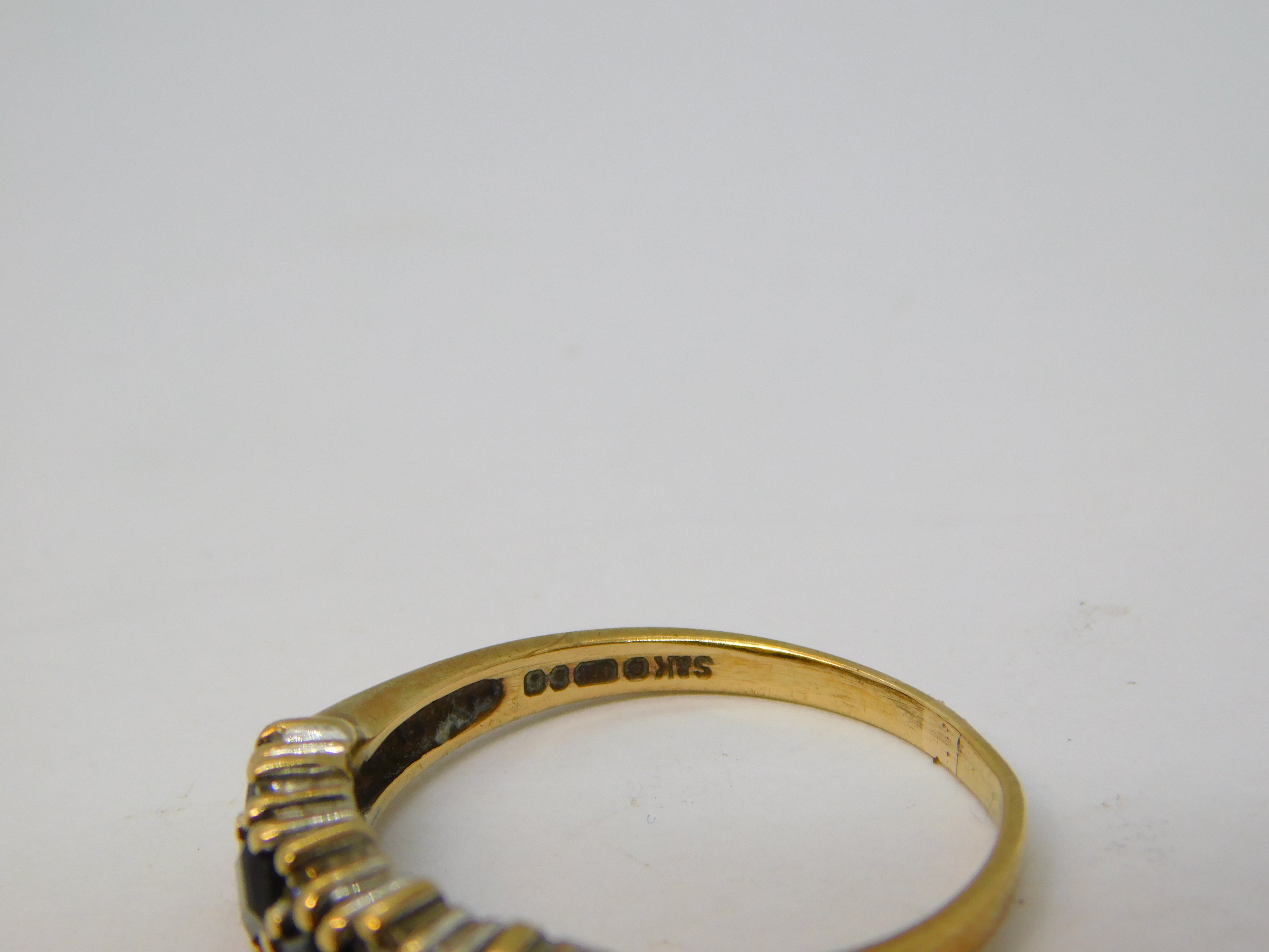 Details: A fantastic and wonderfully designed vintage 9ct yellow gold dress ring set with sapphires flanked with small diamonds hallmarked London 1973 to the interior, the stones have been tested. This is a wonderful item that would make a perfect gift or addition to any collection.