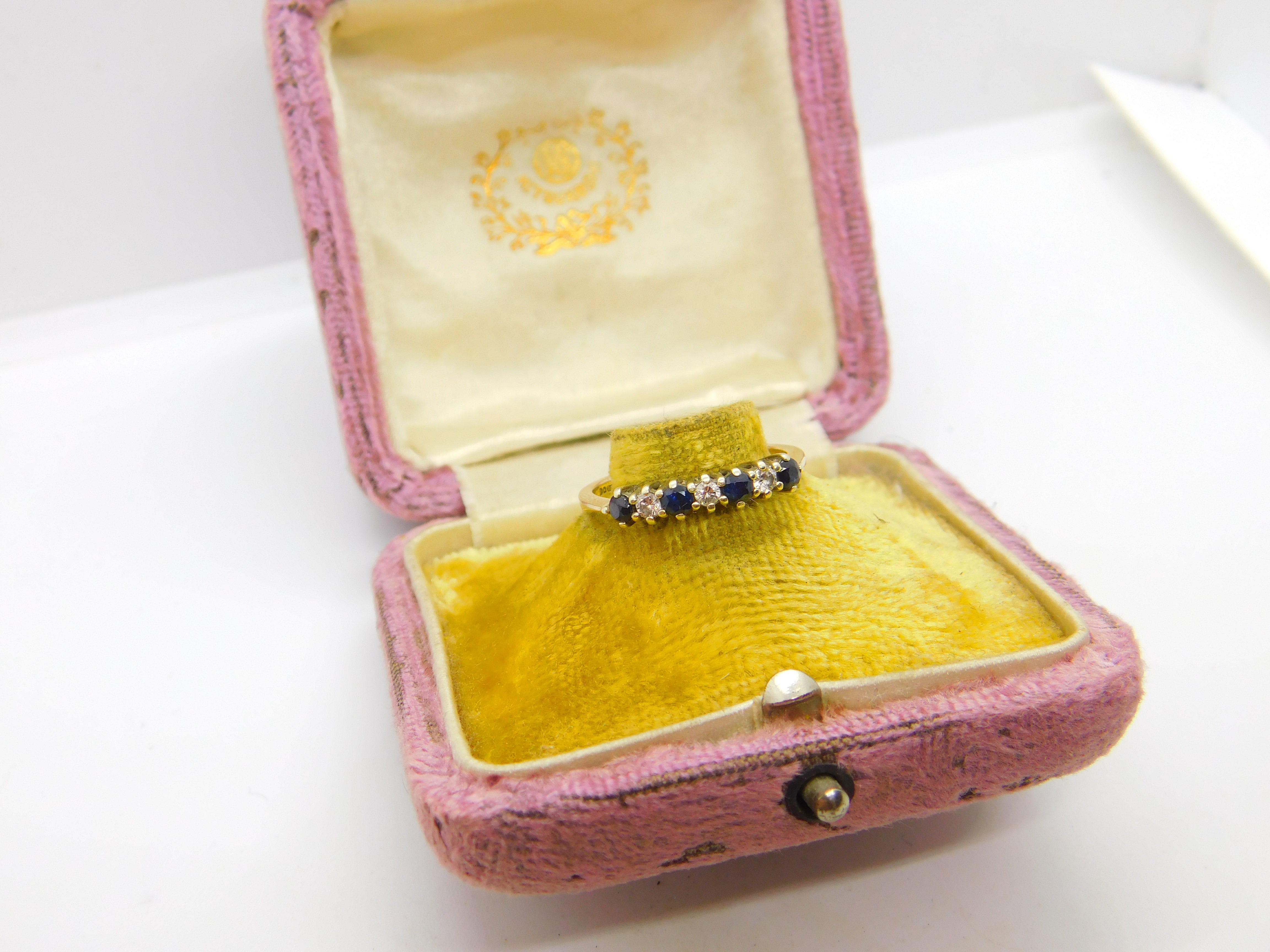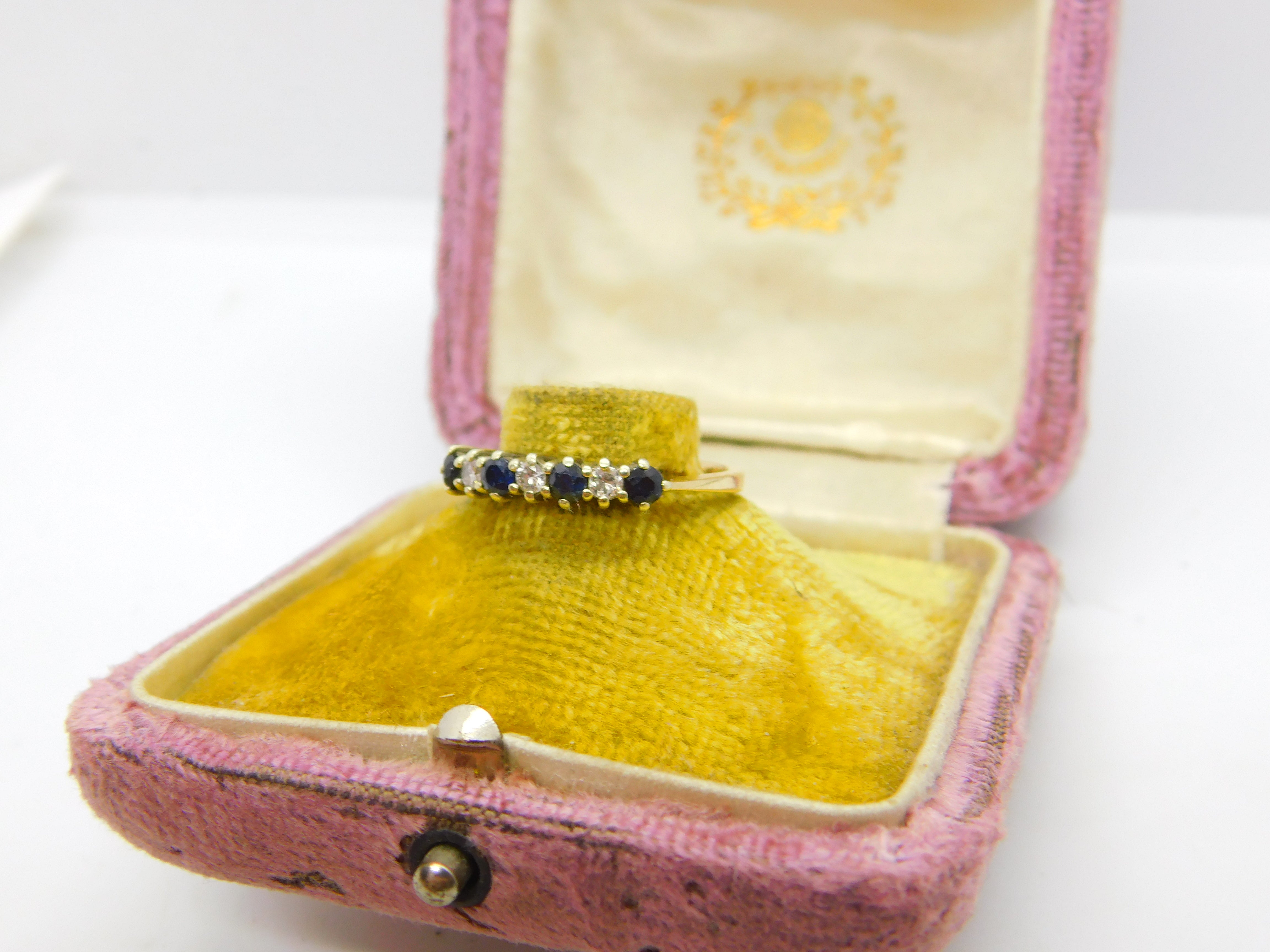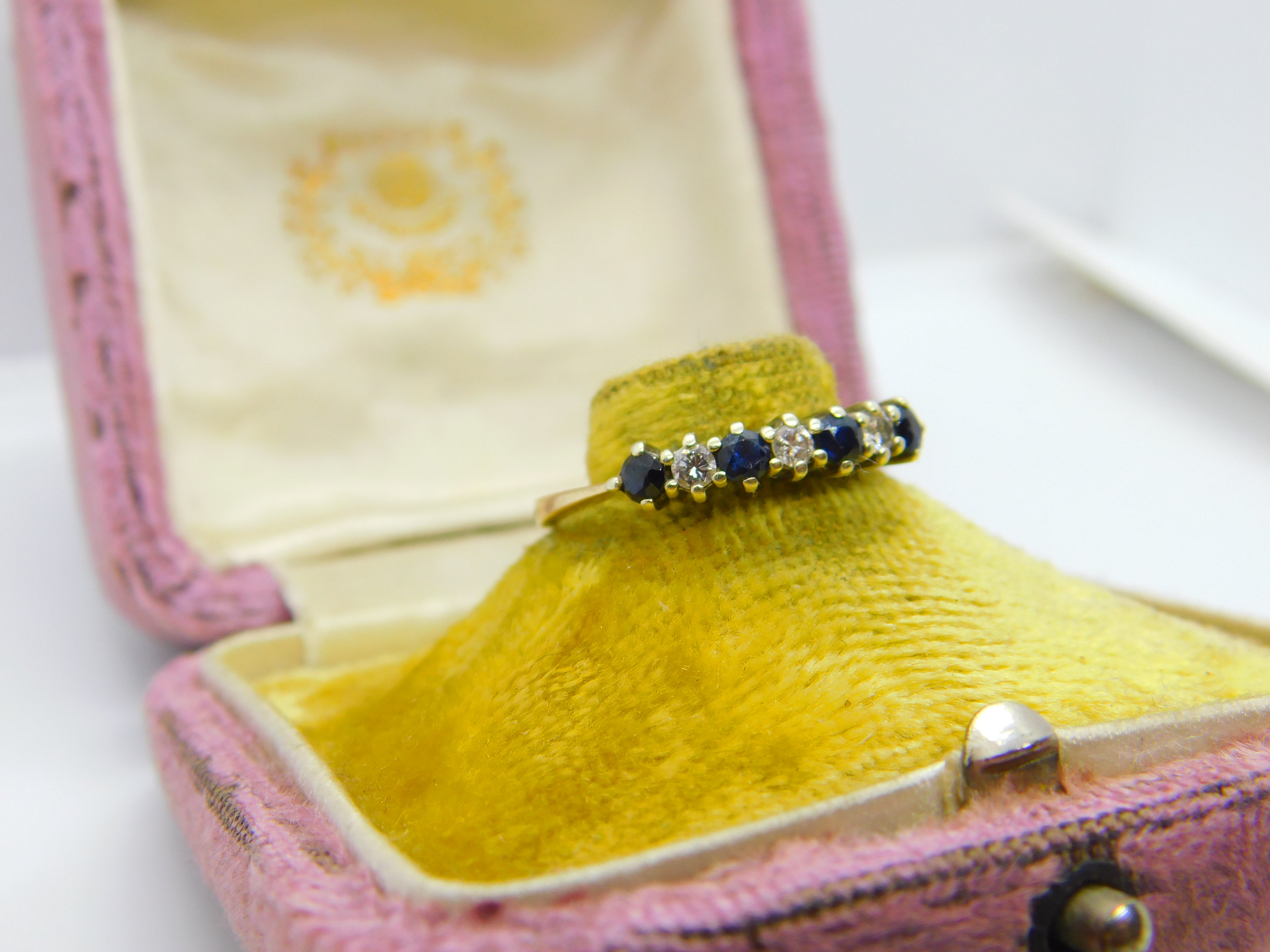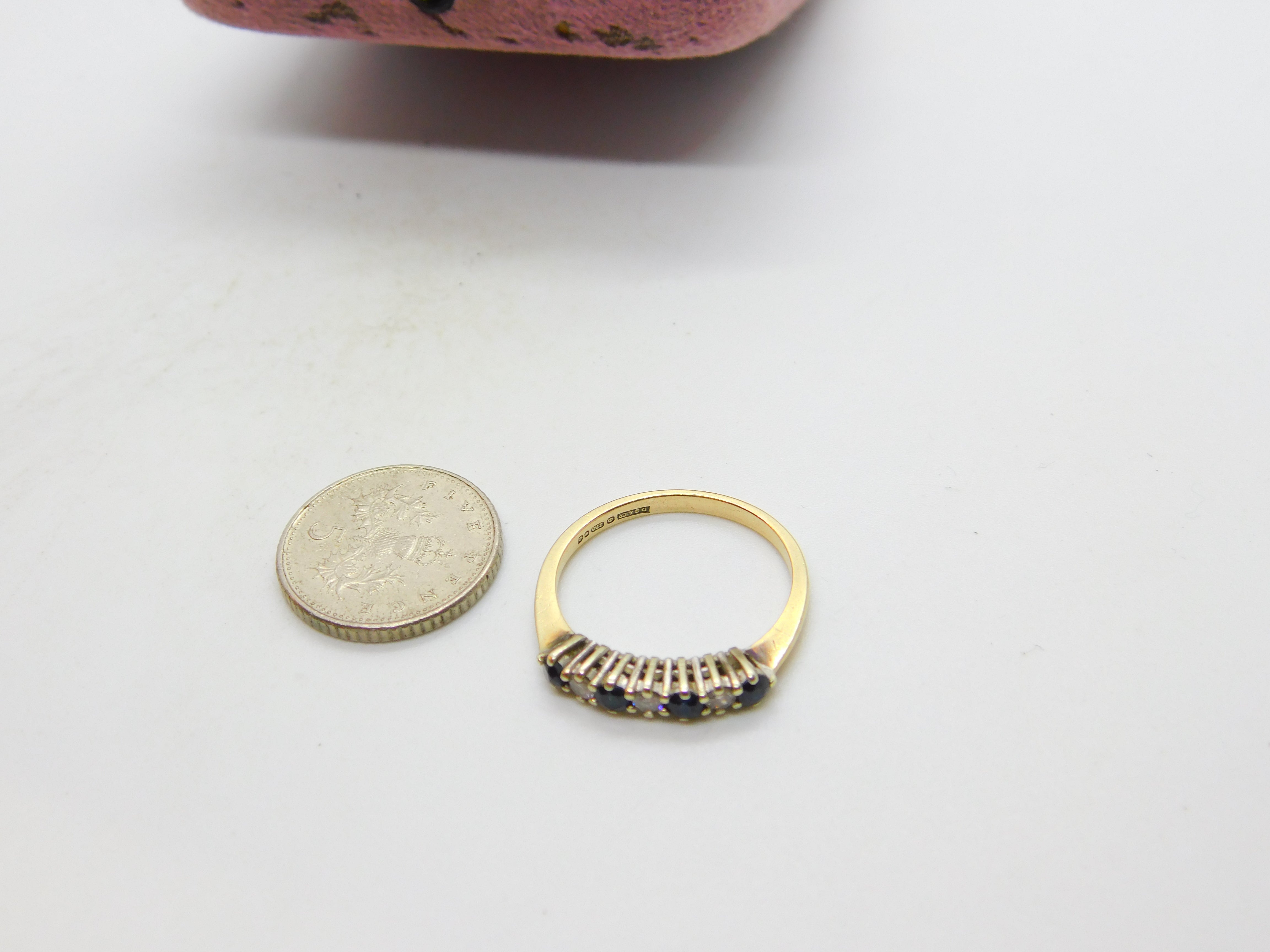 9ct Yellow Gold, Sapphire & Diamond Half Eternity Ring Vintage 1985 London