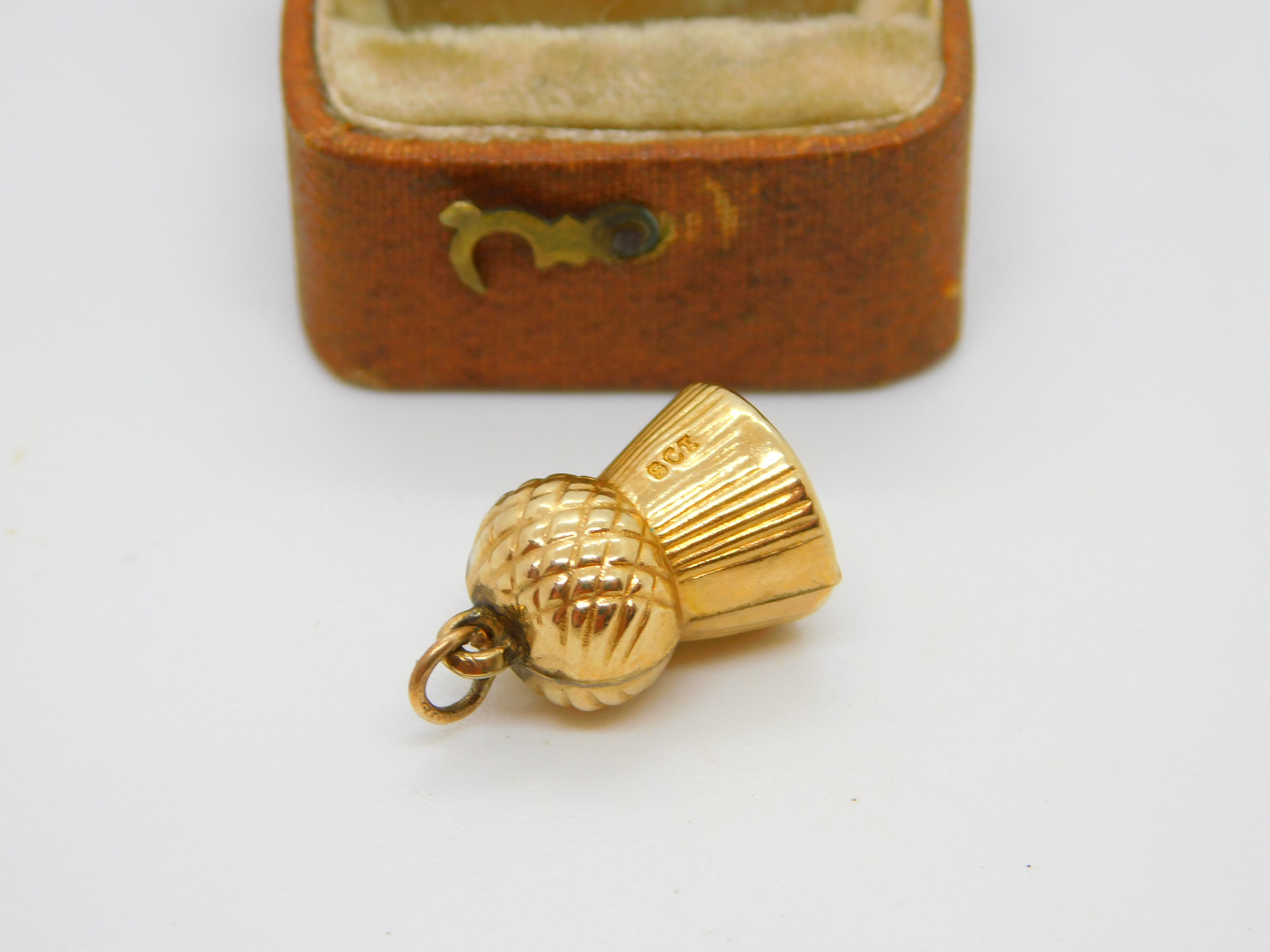9ct Yellow Gold Scottish Thistle Charm Pendant Vintage 1955 London