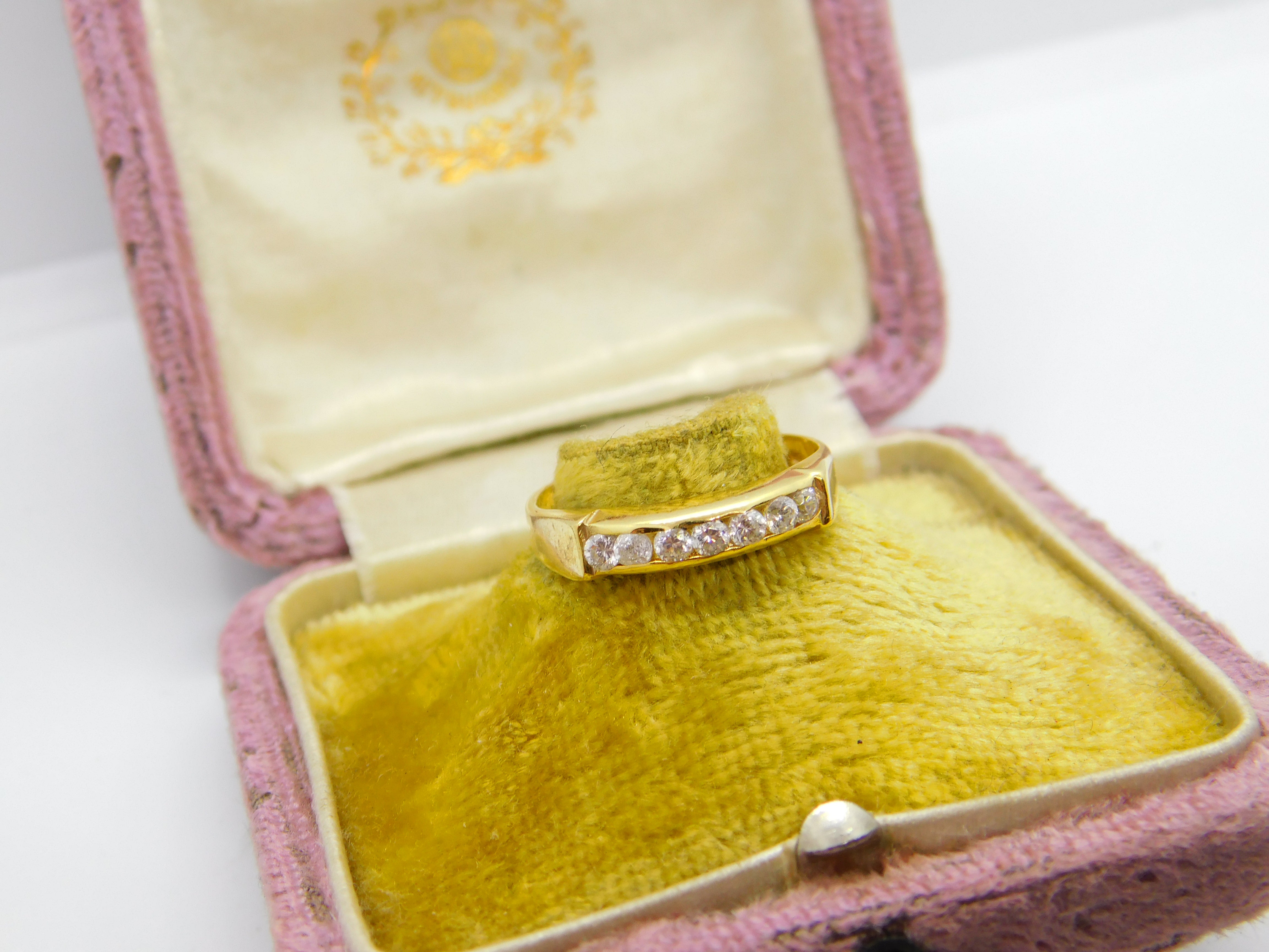 9ct Yellow Gold & Seven Stone Diamond Paste Half Eternity Ring Vintage 2003
