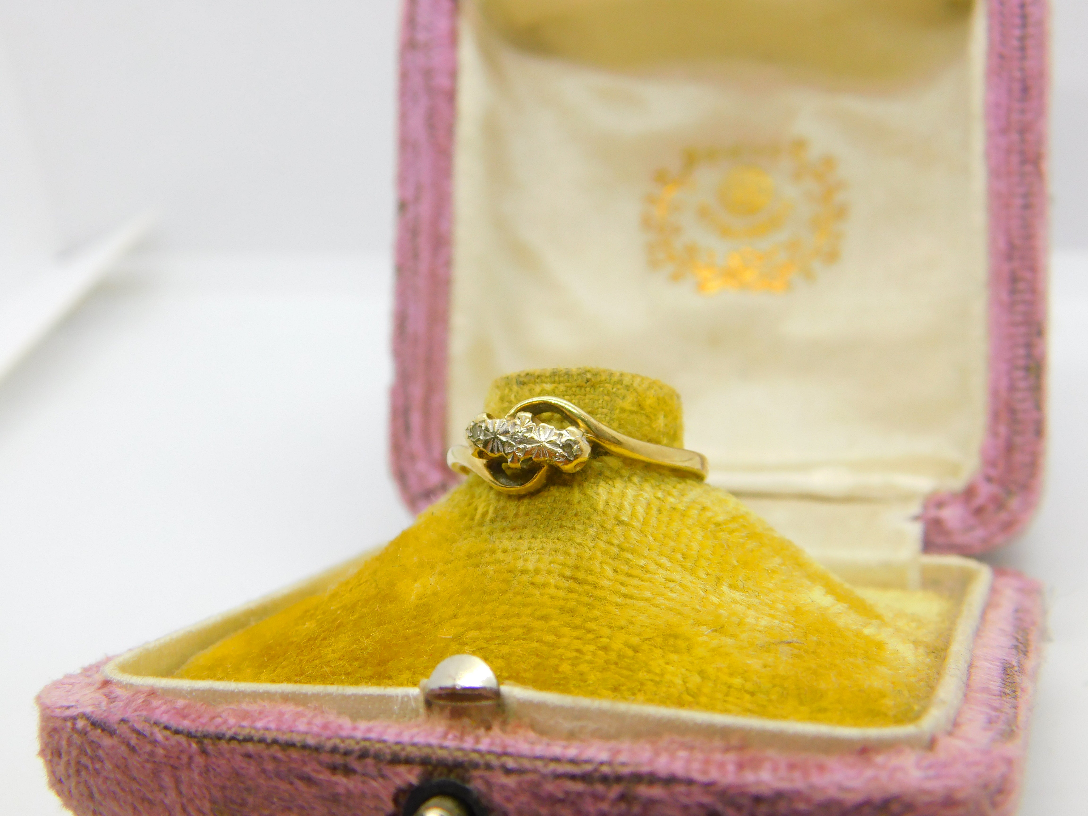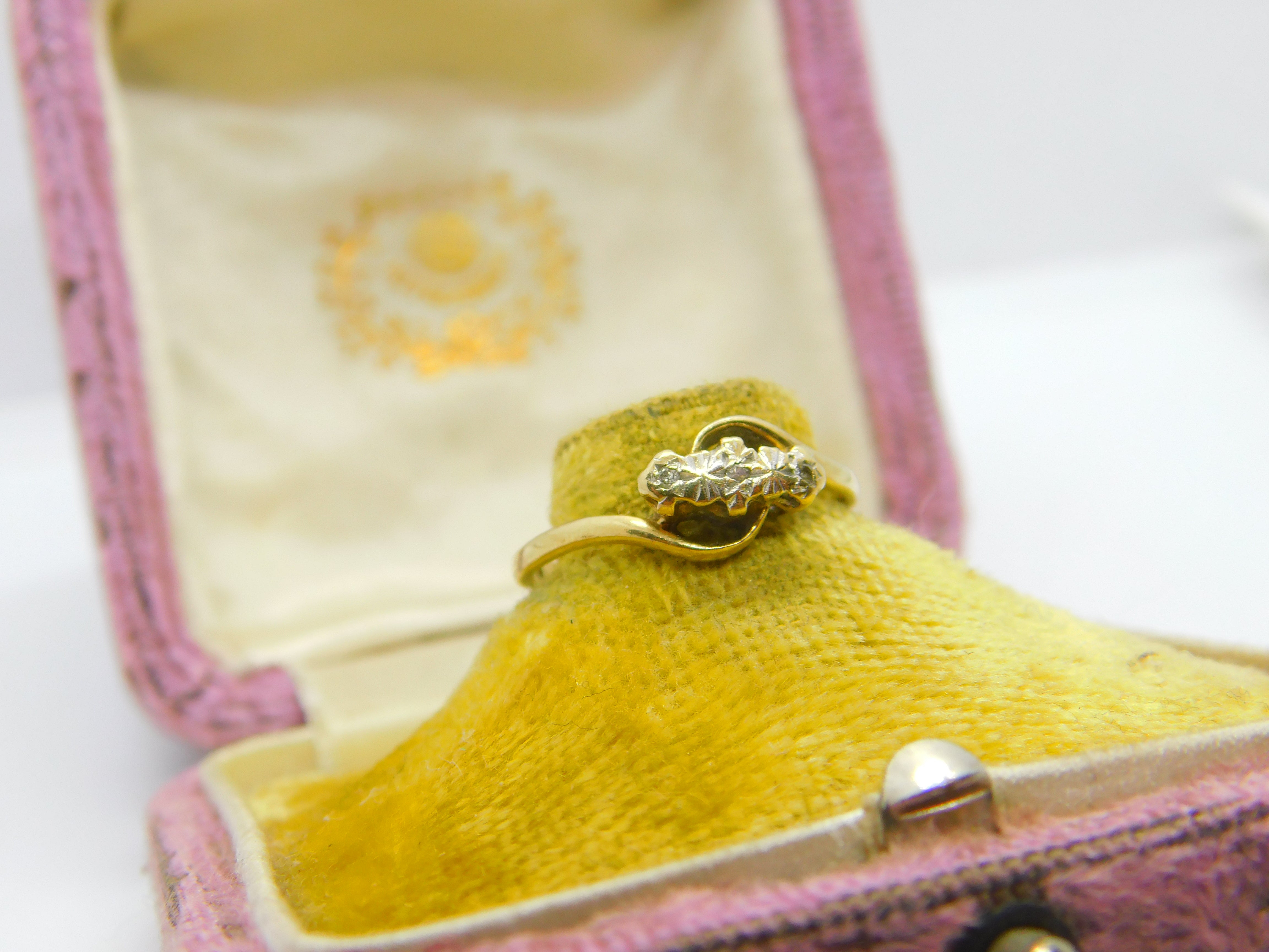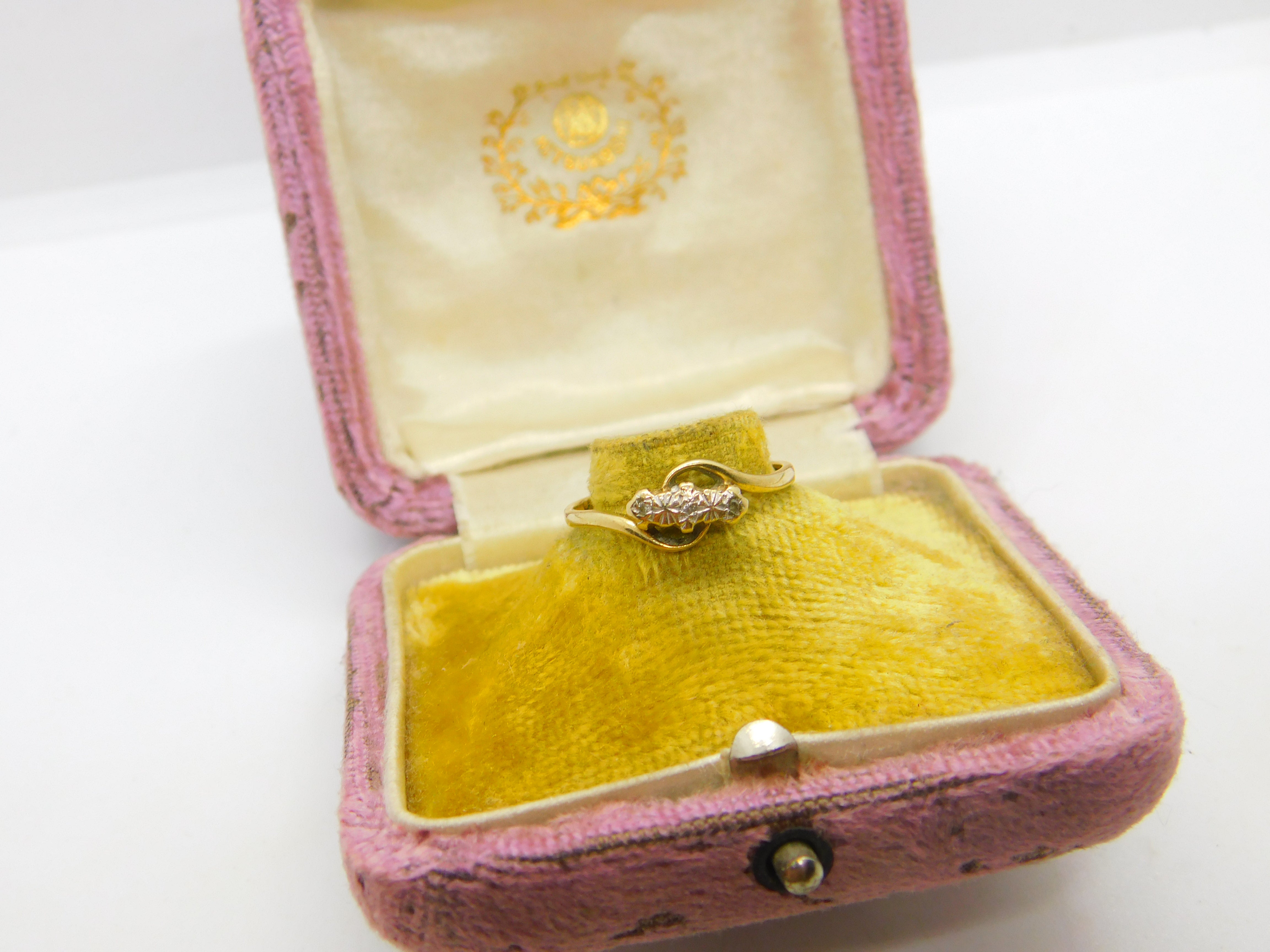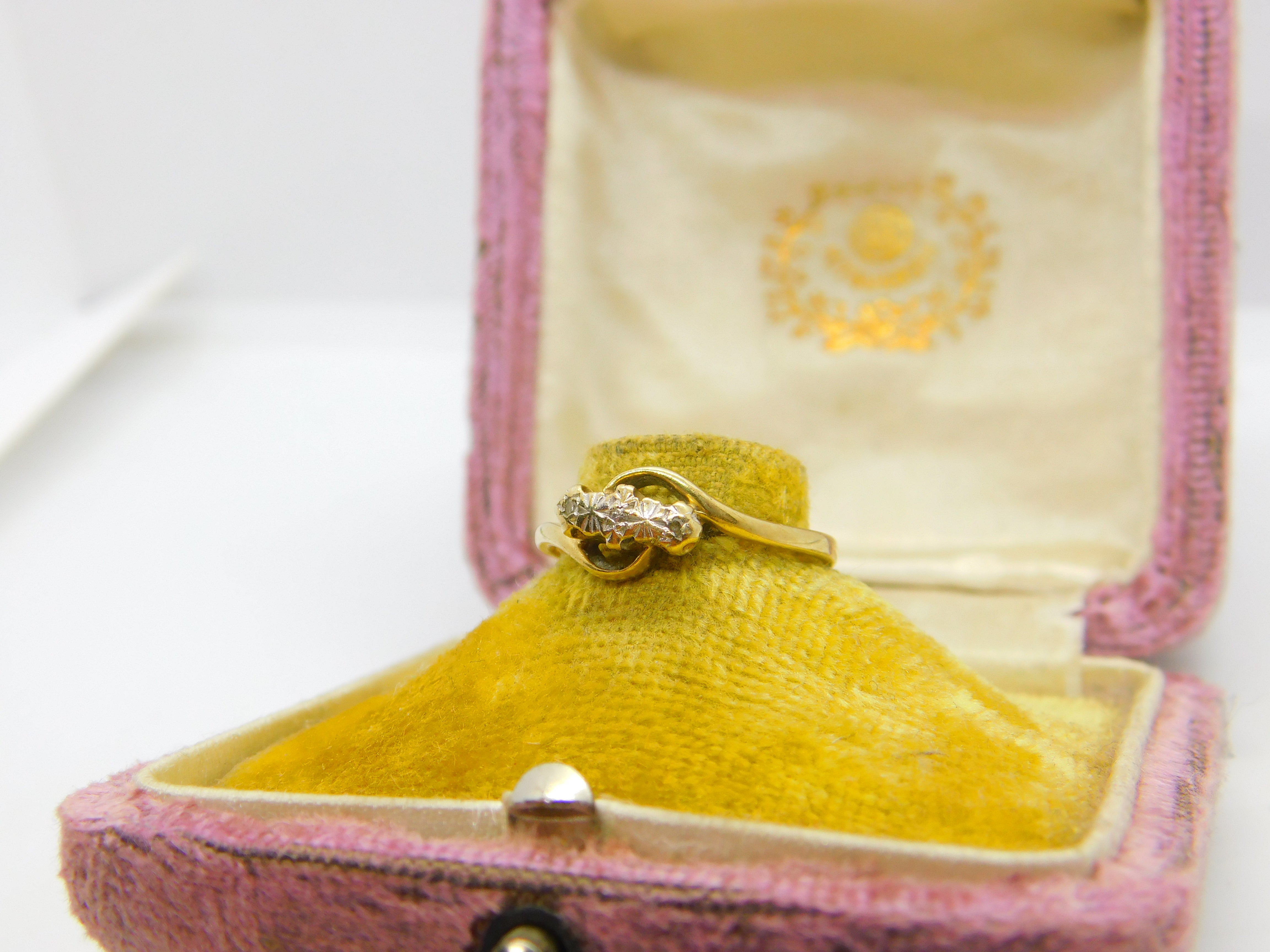 9ct Yellow Gold Small Diamond Set Crossover Ring 1969 Birmingham Vintage