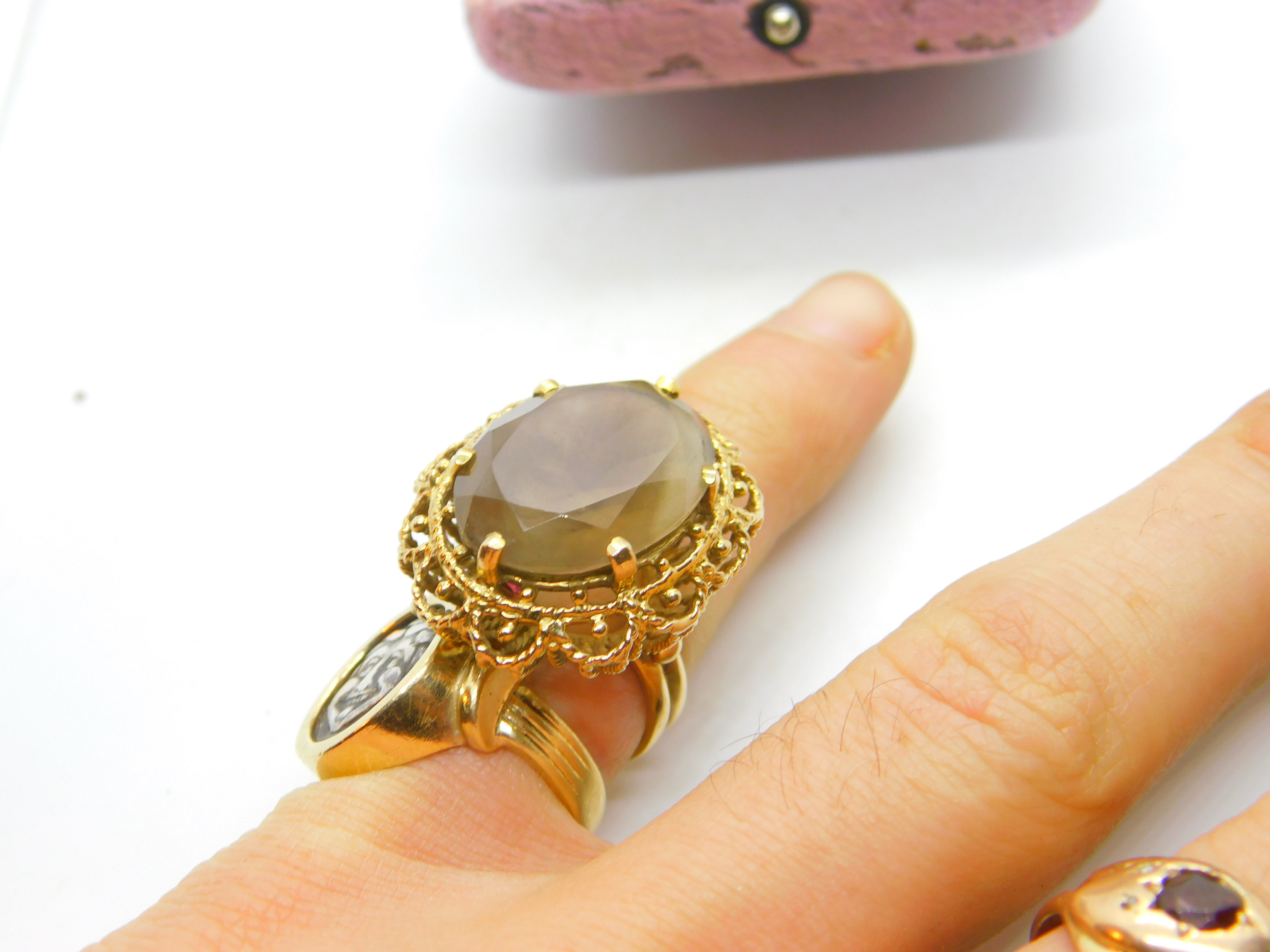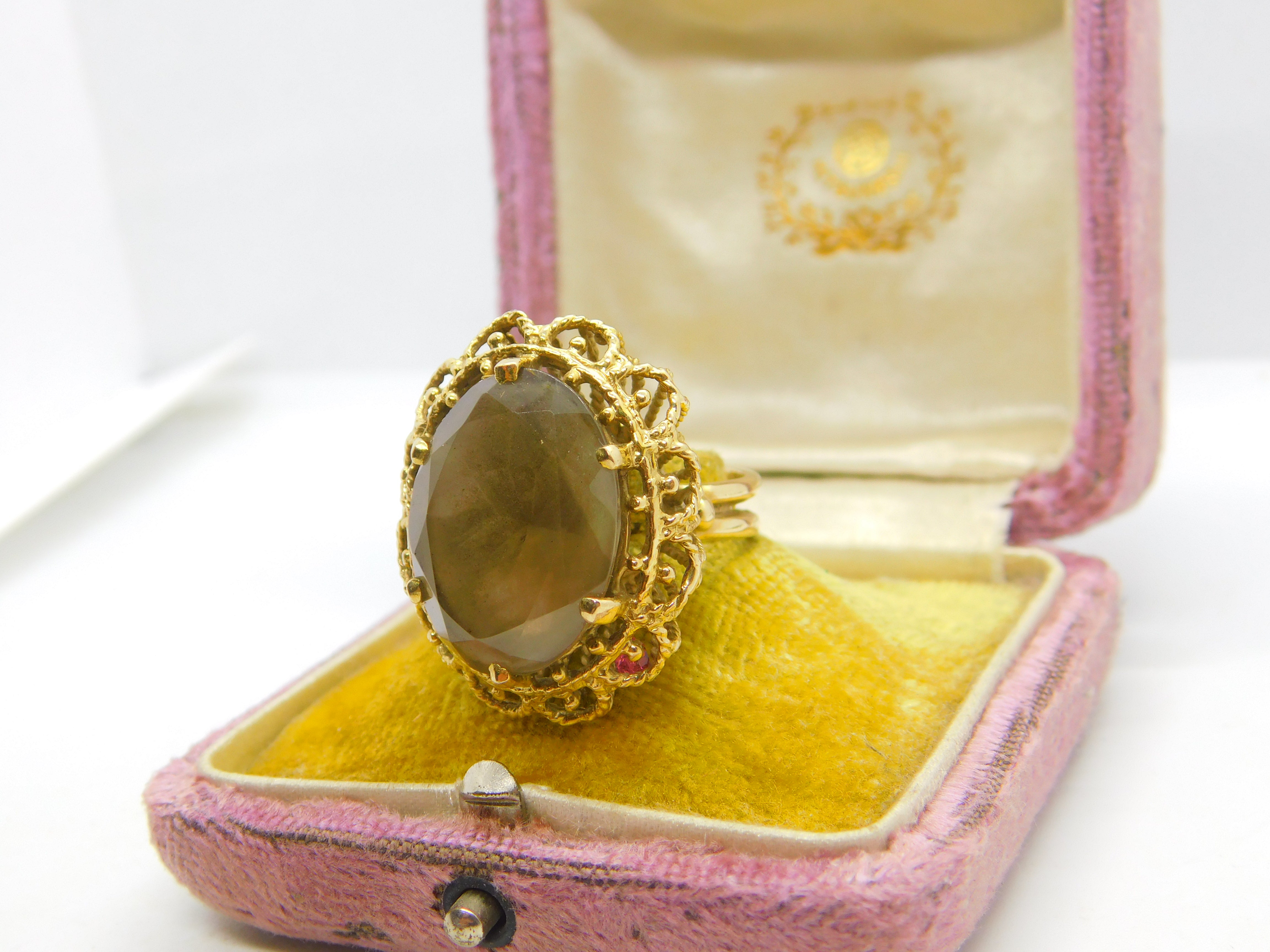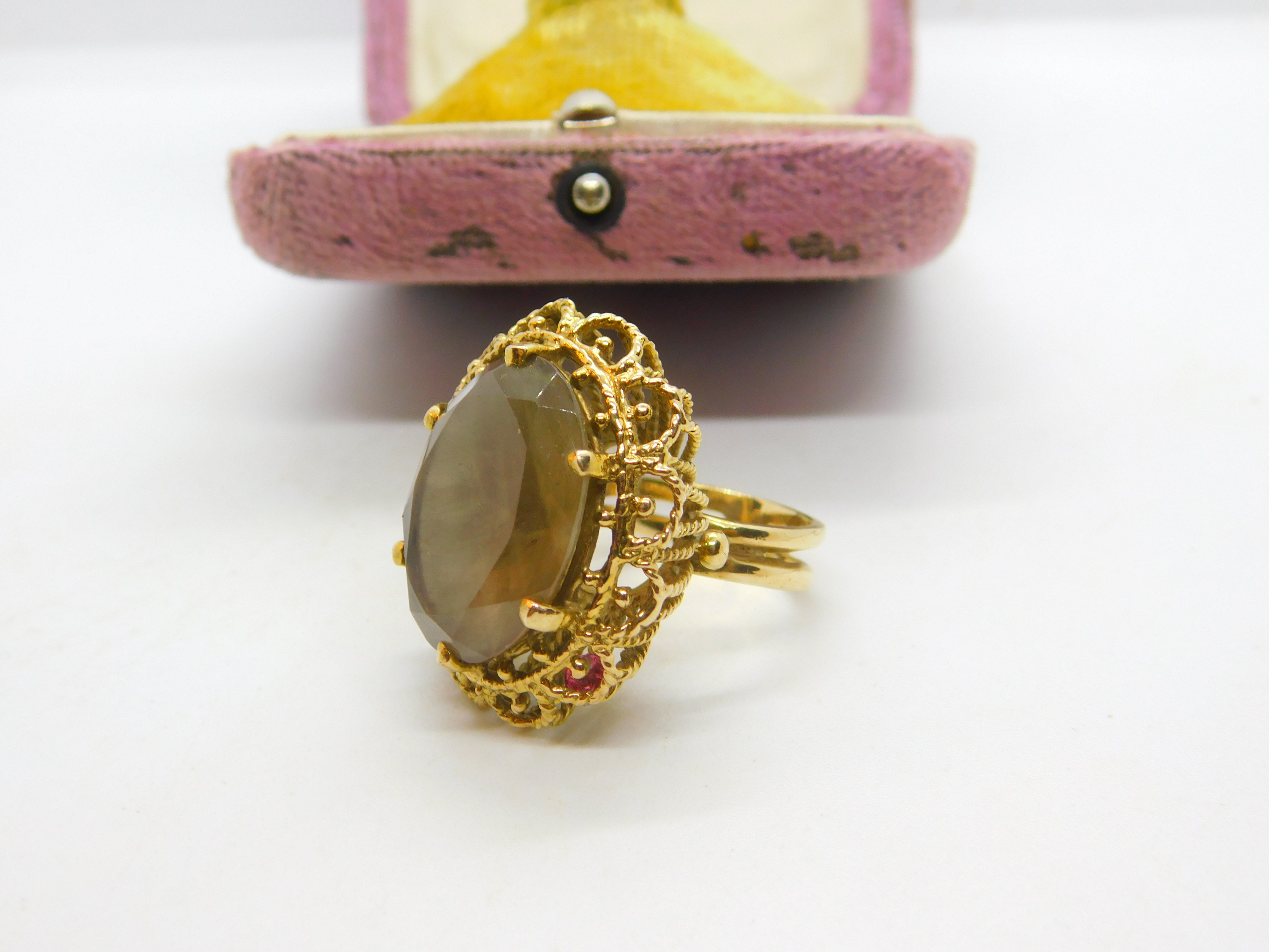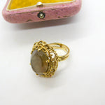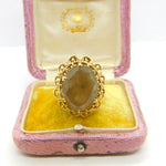 9ct Yellow Gold Smoky Quartz Cocktail Statement Ring Vintage 1975 London