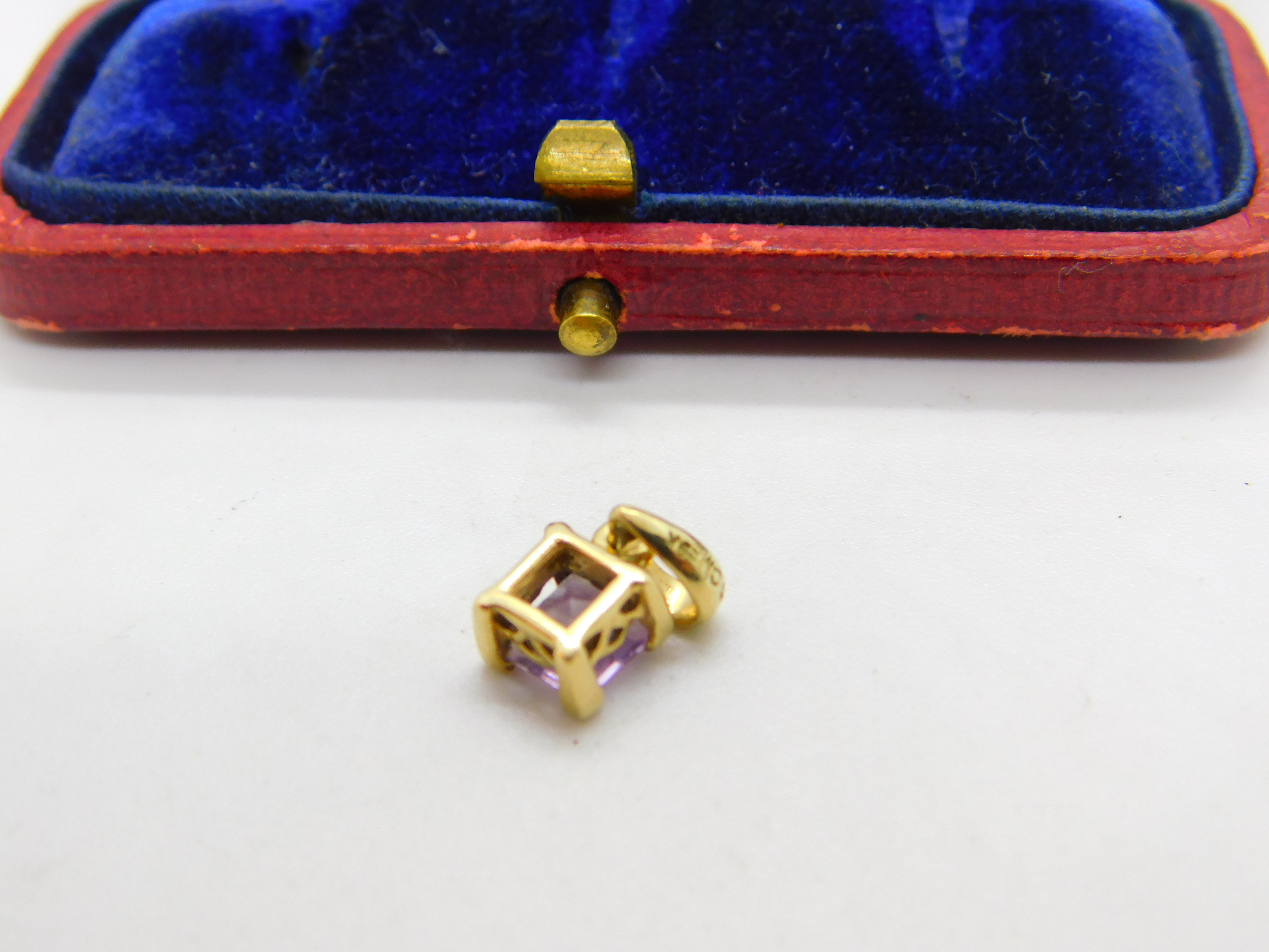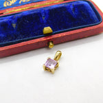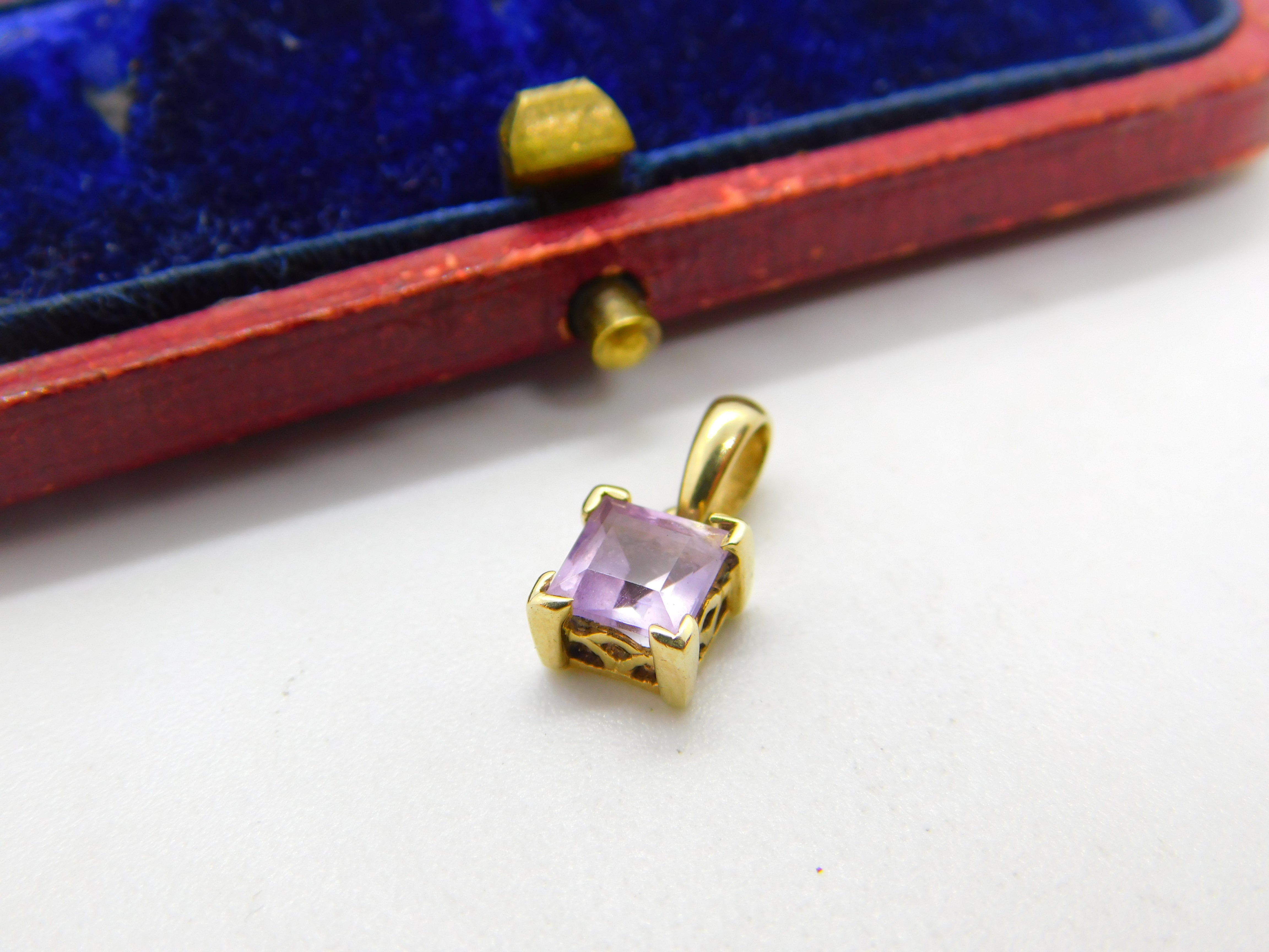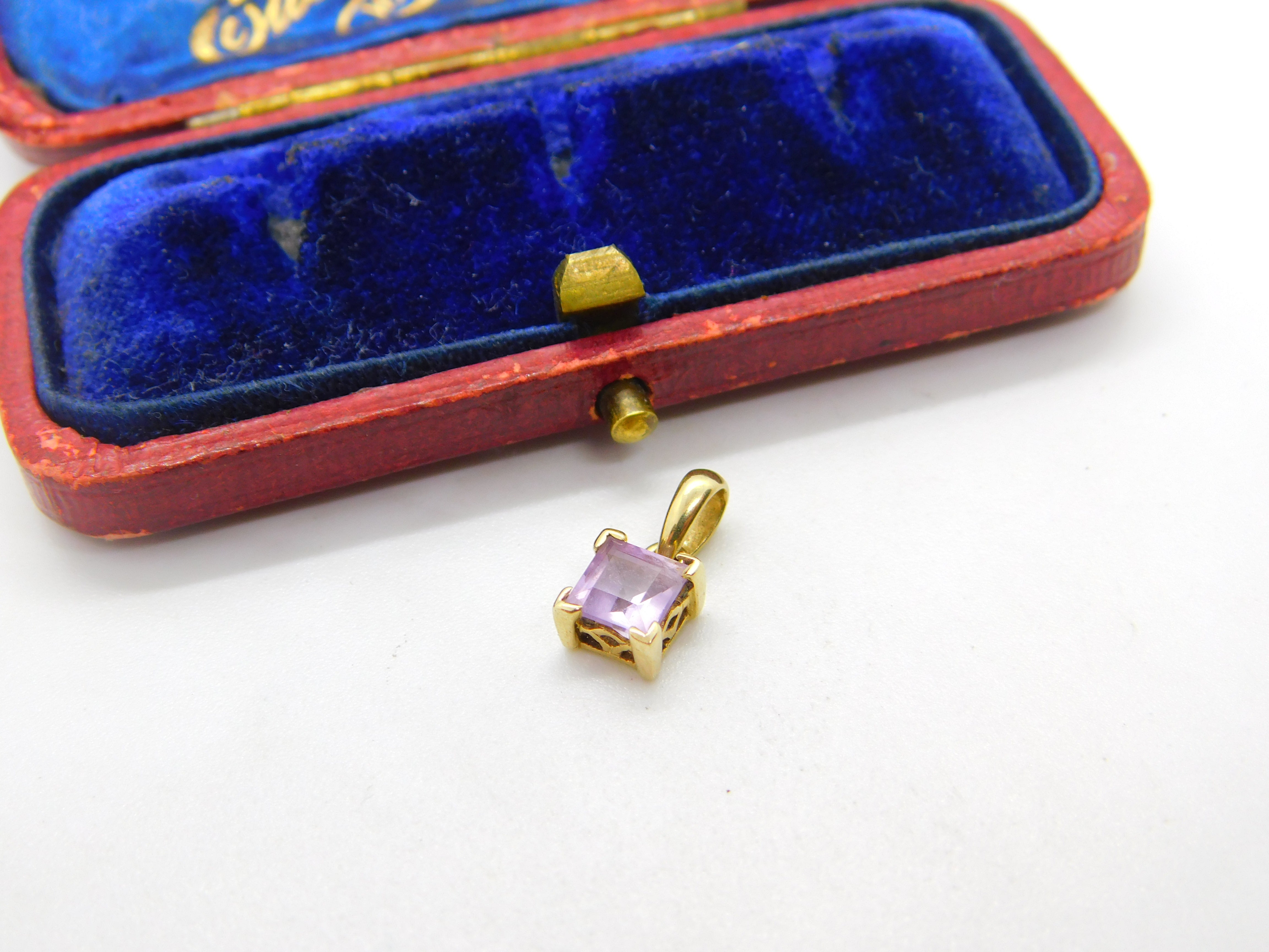 9ct Yellow Gold & Square Cut Amethyst Drop Pendant Vintage c1980