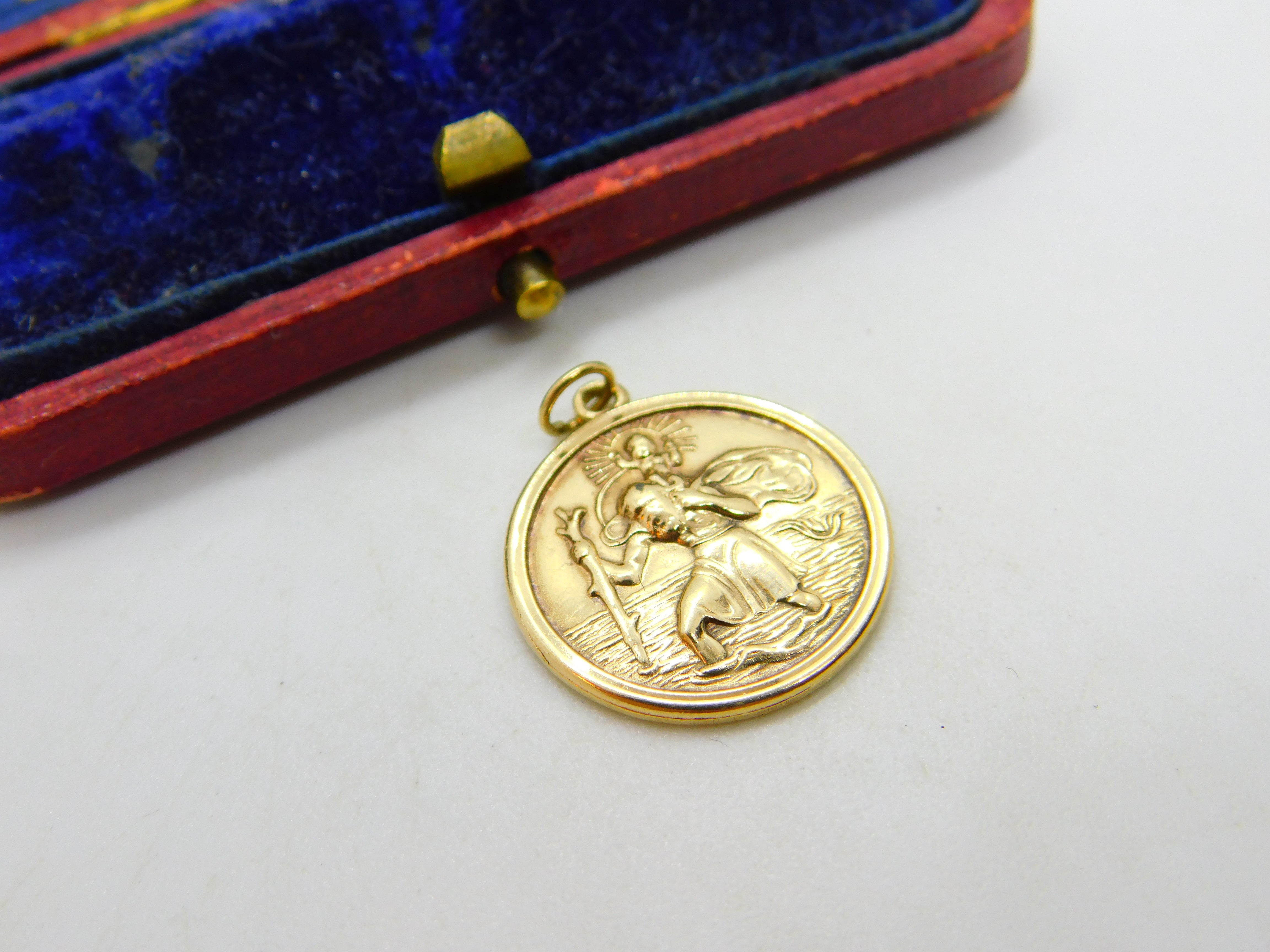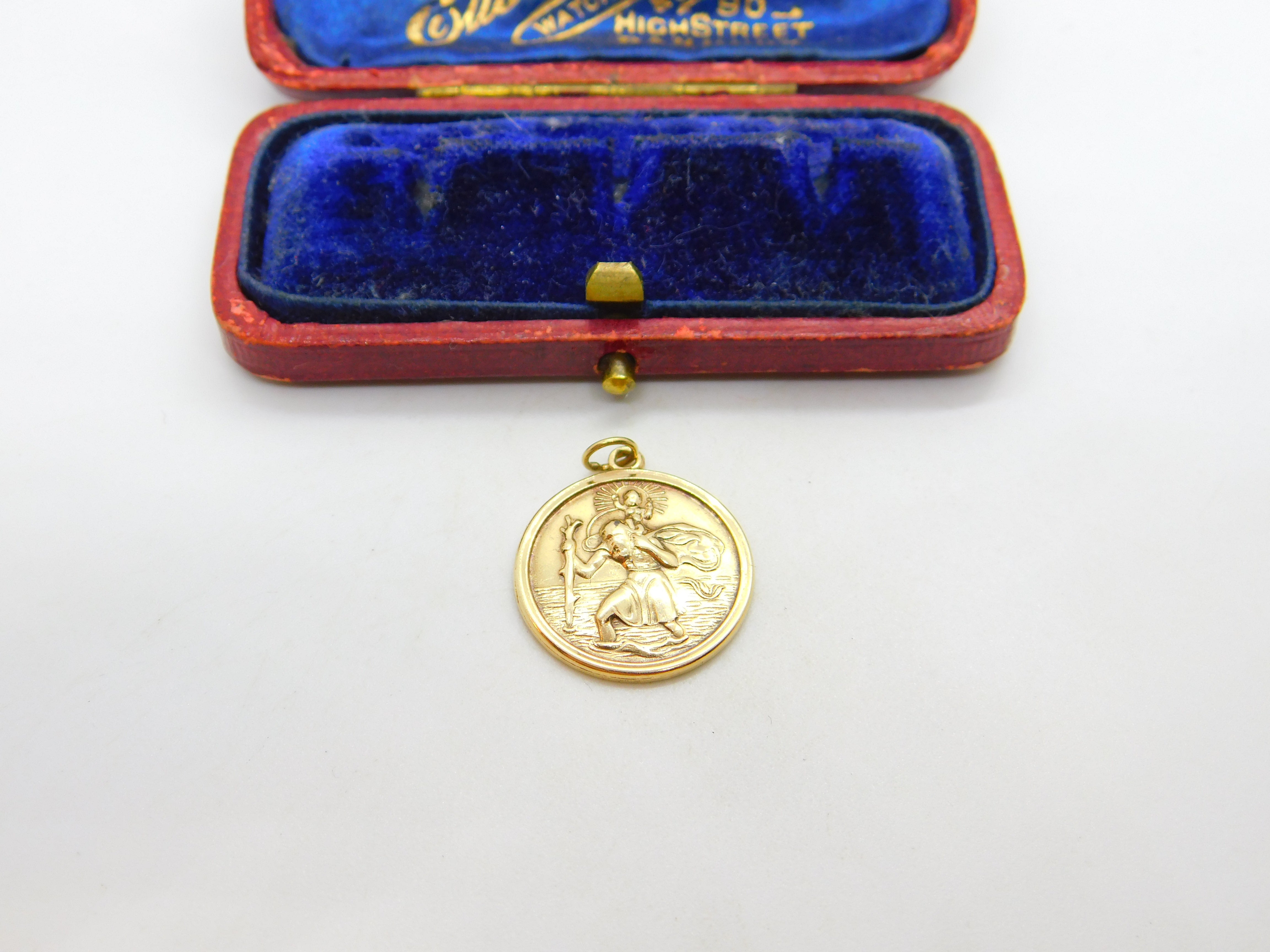 9ct Yellow Gold St Christopher Patron of Travel Charm Pendant 1968 Birmingham
