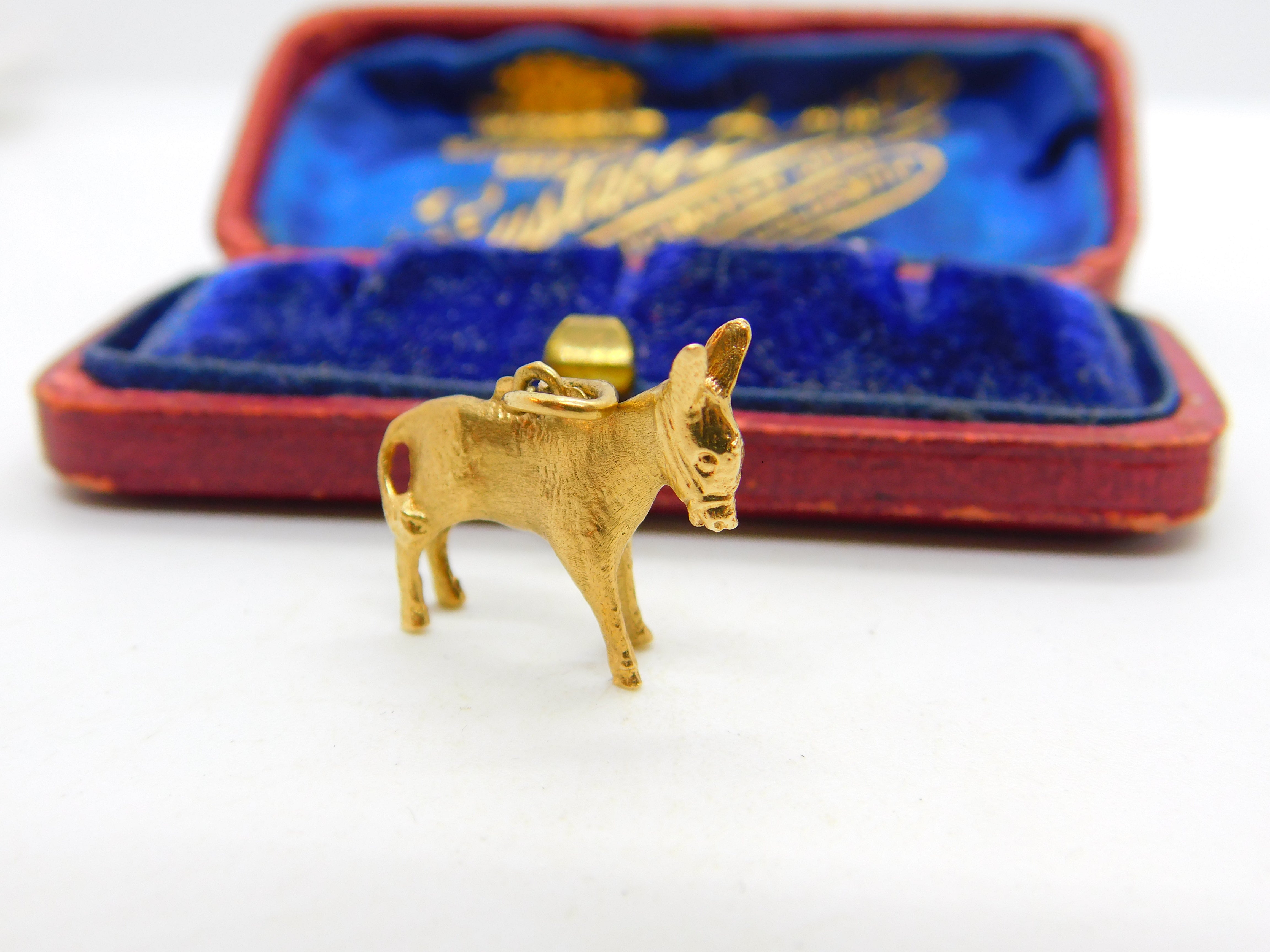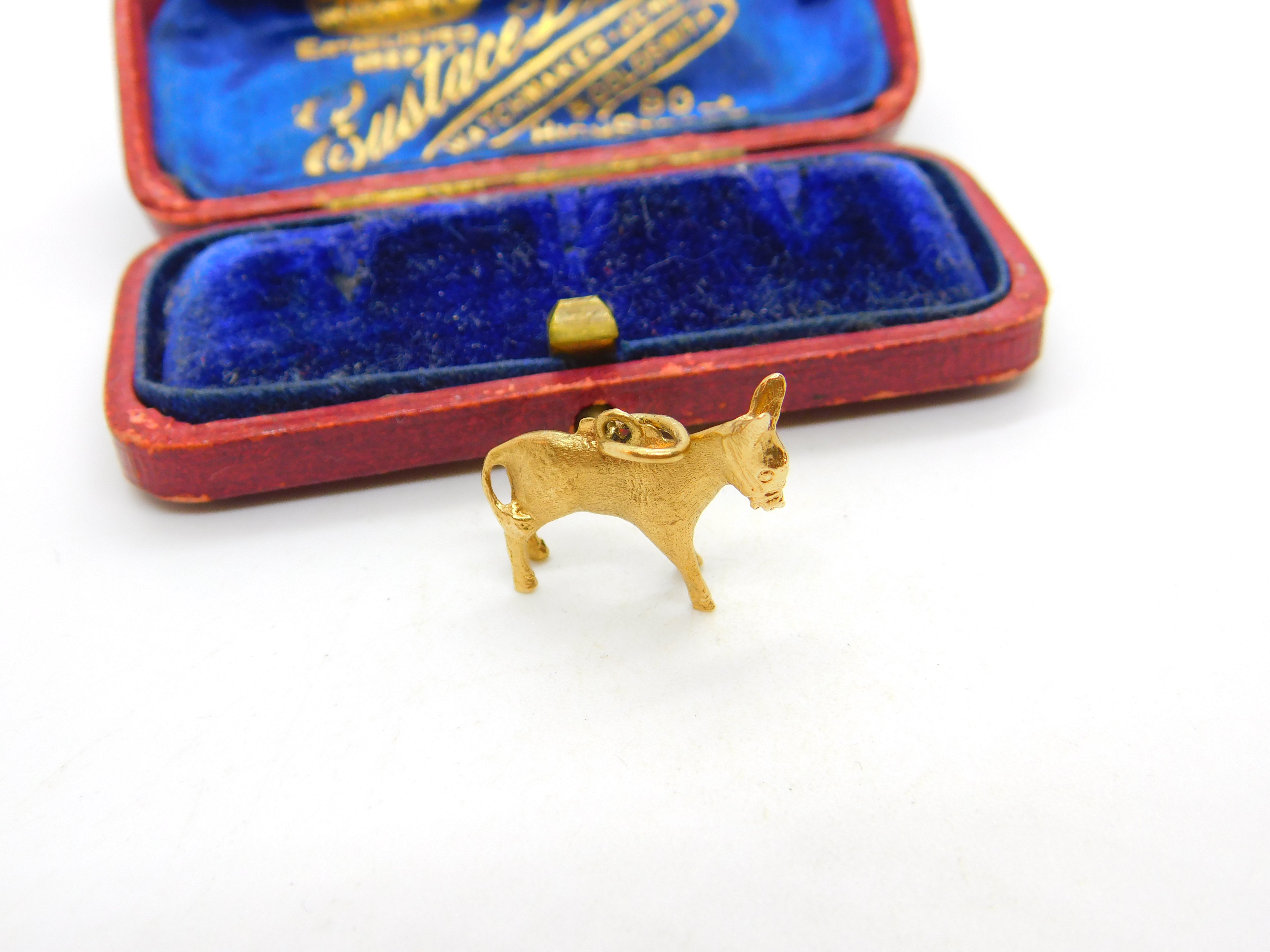 Details: A fantastic and wonderfully designed vintage 9ct yellow gold standing donkey charm or pendant hallmarked to the edge and XRF tested c1970. This is a wonderful item that would make a perfect gift or addition to any collection. The BOX pictured is for PRESENTATION ONLY and is NOT included in the listings but used to frame the pictures unless specifically stated otherwise.