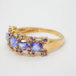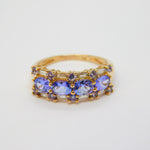 9ct Yellow Gold, Tanzanite & Spinel Set Dress Ring Vintage c1990 London