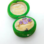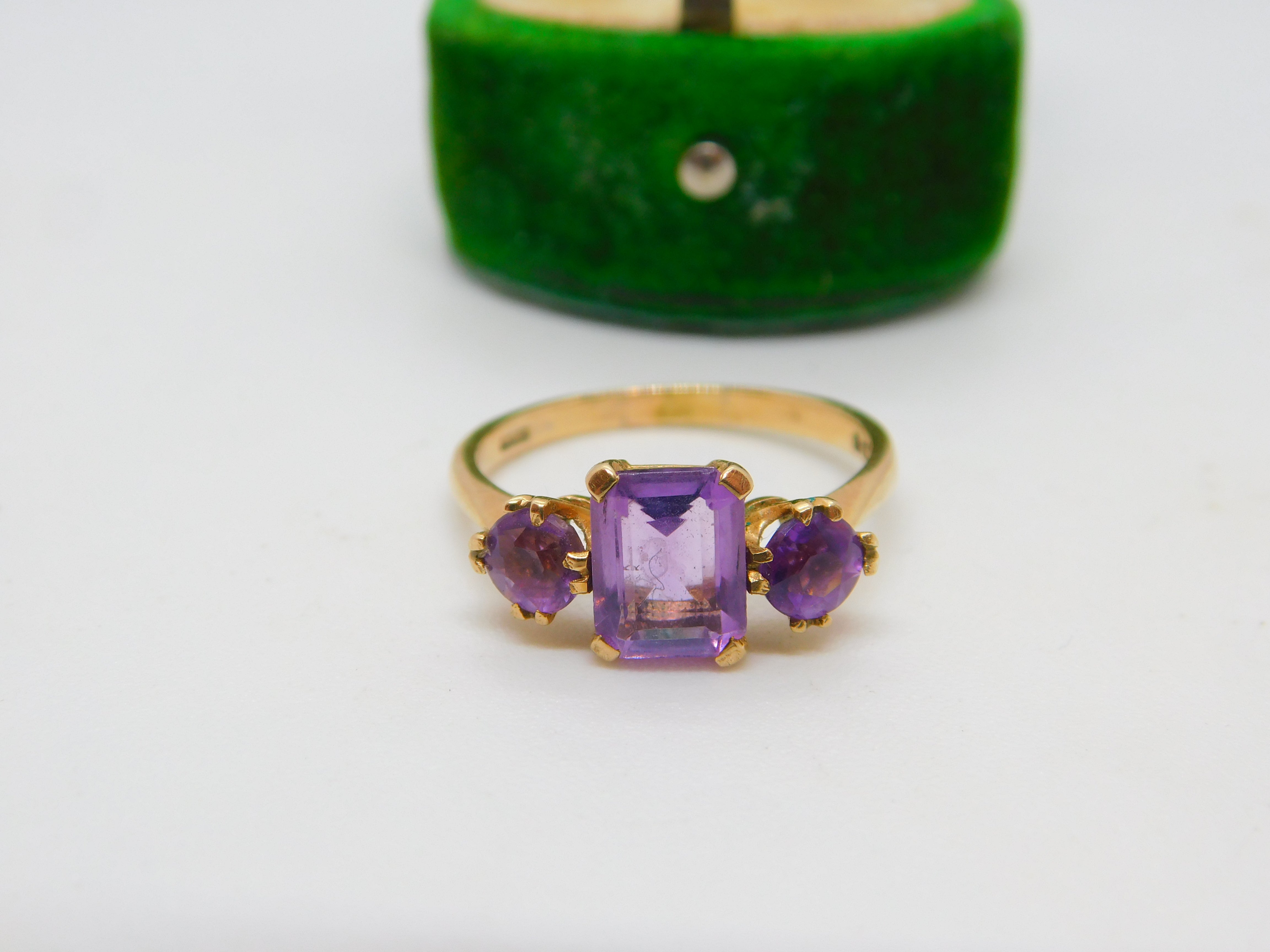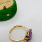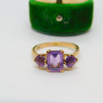 9ct Yellow Gold Three-Stone Amethyst Dress Ring Vintage 1966 London
