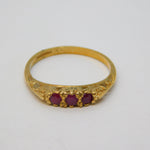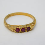 9ct Yellow Gold Three-Stone Ruby Set Dress Ring Vintage c1980 Birmingham