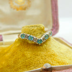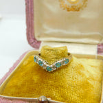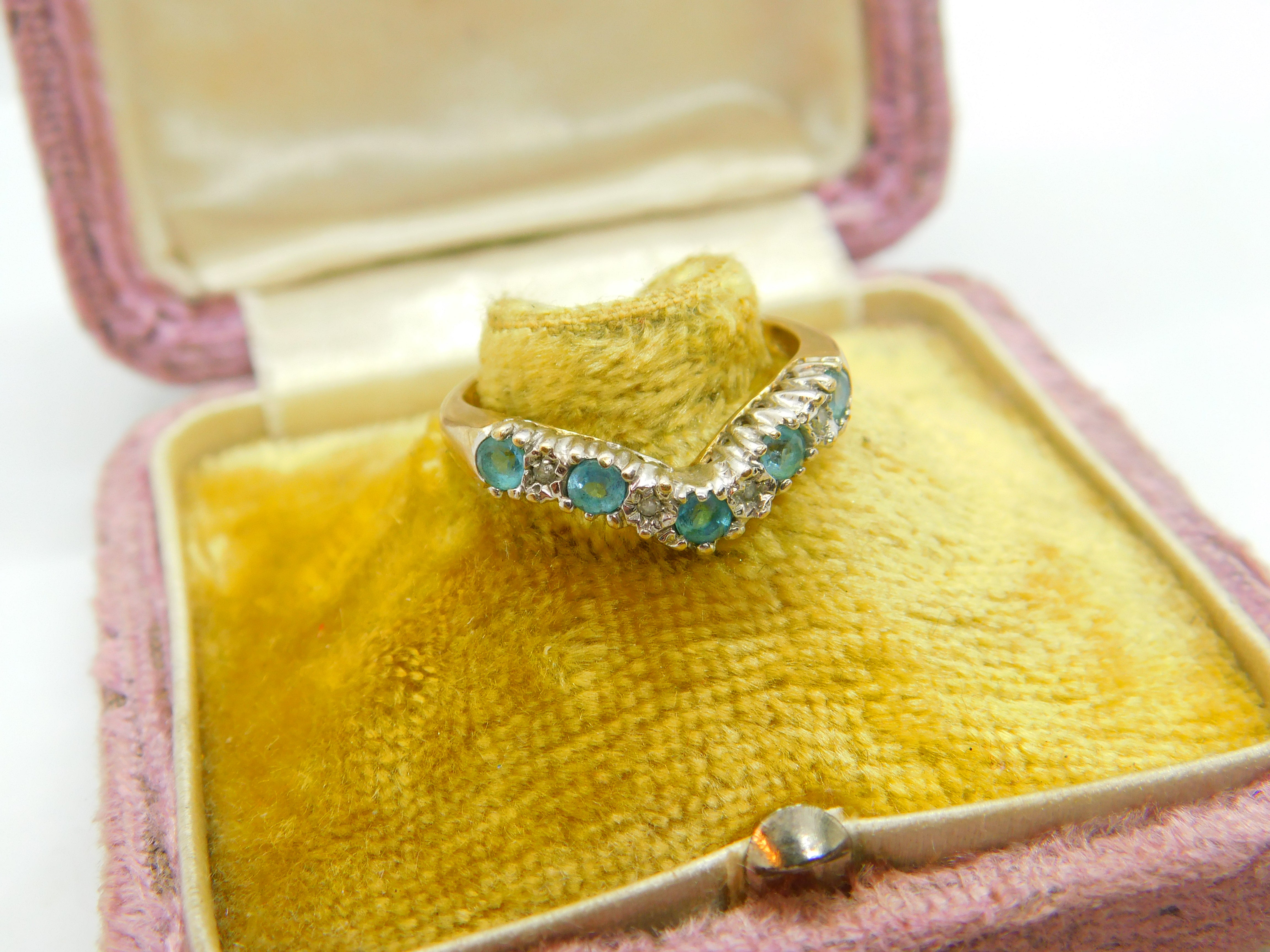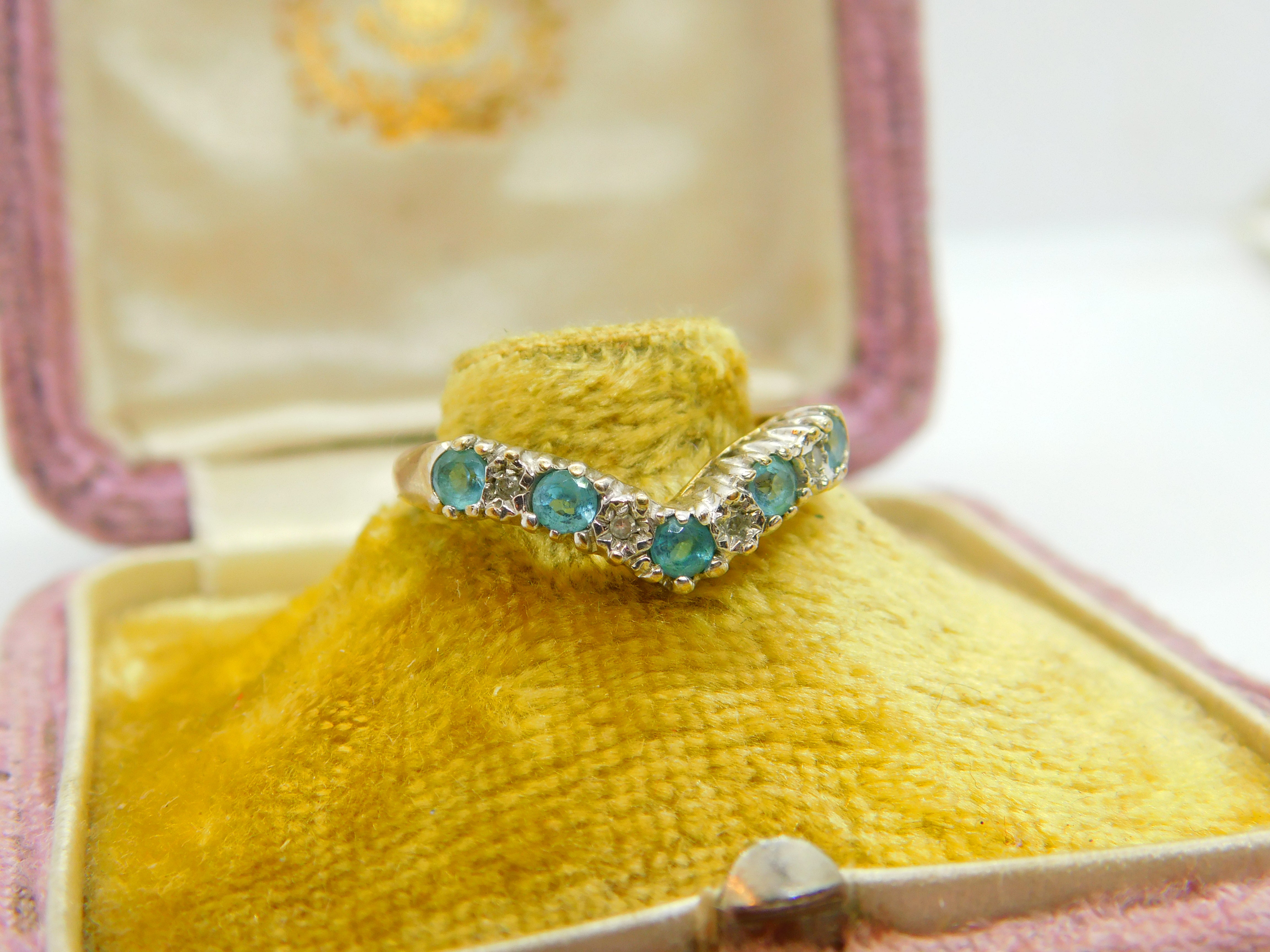Details: A fantastic and wonderfully designed vintage 9ct yellow gold herringbone form band ring set with blue topaz and small diamonds assay marked Sheffield c1990 to the interior. This is a wonderful item that would make a perfect gift or addition to any collection. The BOX pictured is for PRESENTATION ONLY and is NOT included in the listings but used to frame the pictures unless specifically stated otherwise.