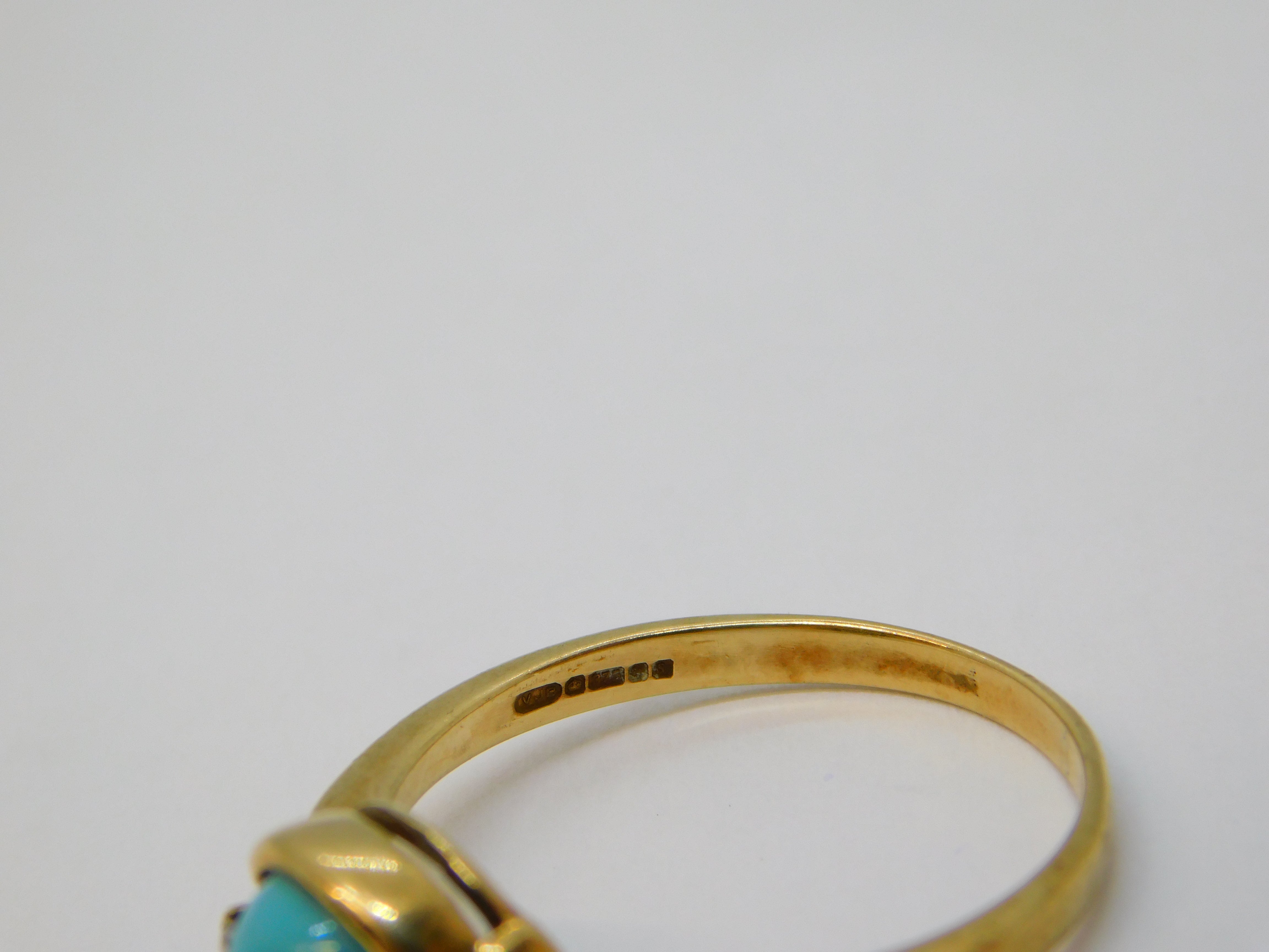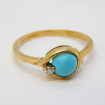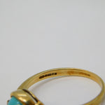 9ct Yellow Gold, Turquoise & Diamond Set Dress Ring Vintage 1973 Birmingham