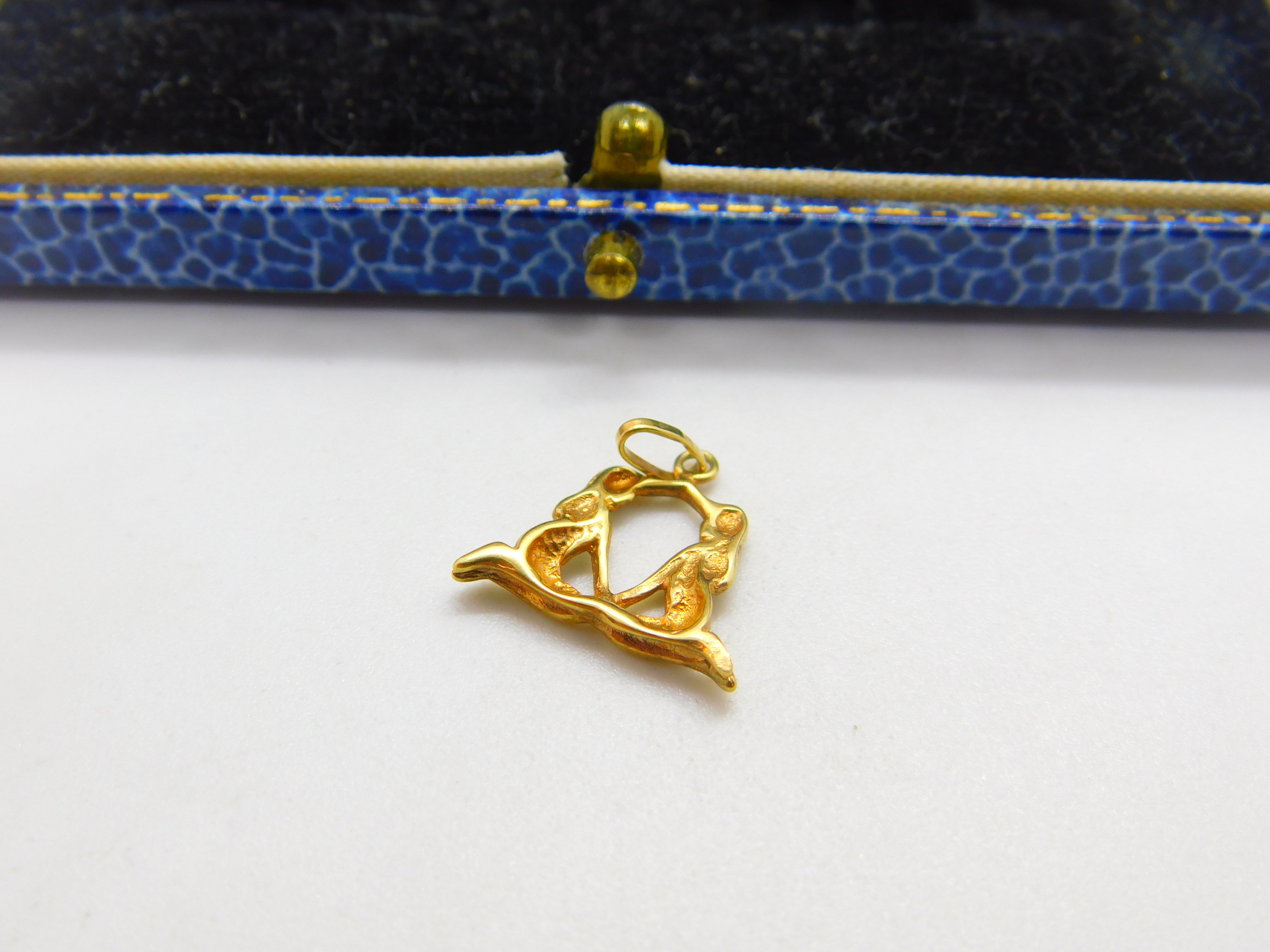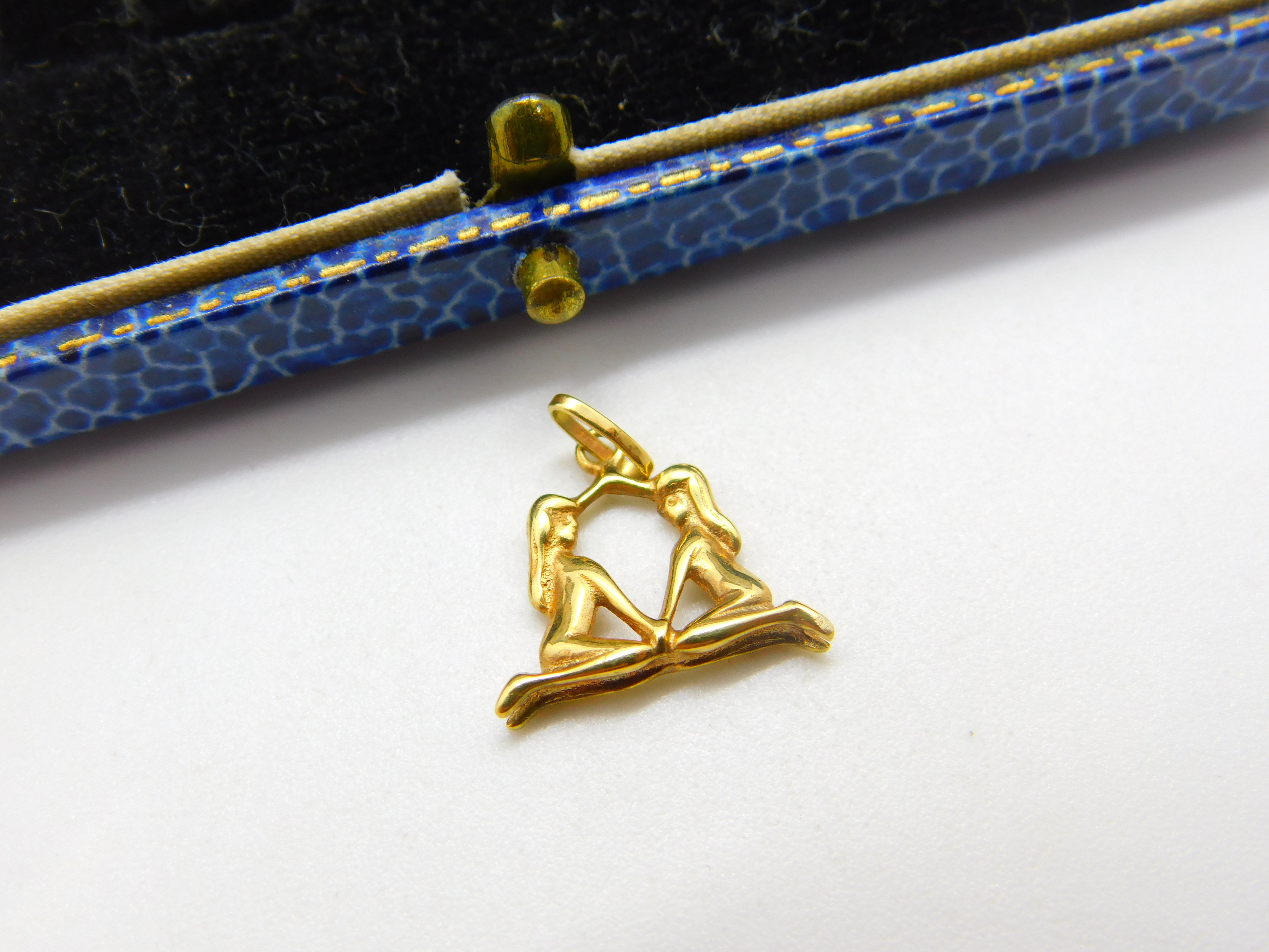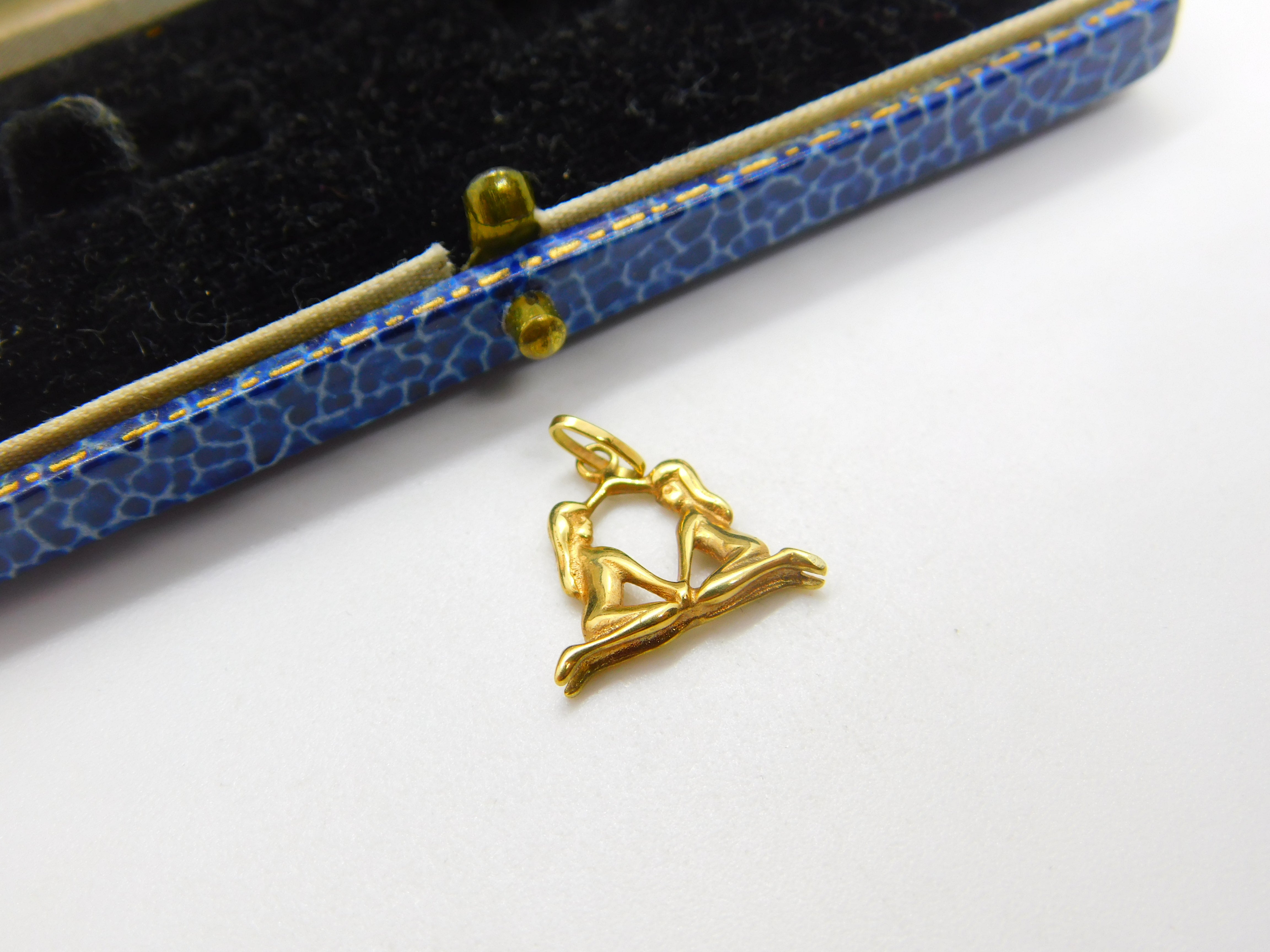 9ct Yellow Gold Twins of Gemini Zodiac Charm Pendant Vintage c1970