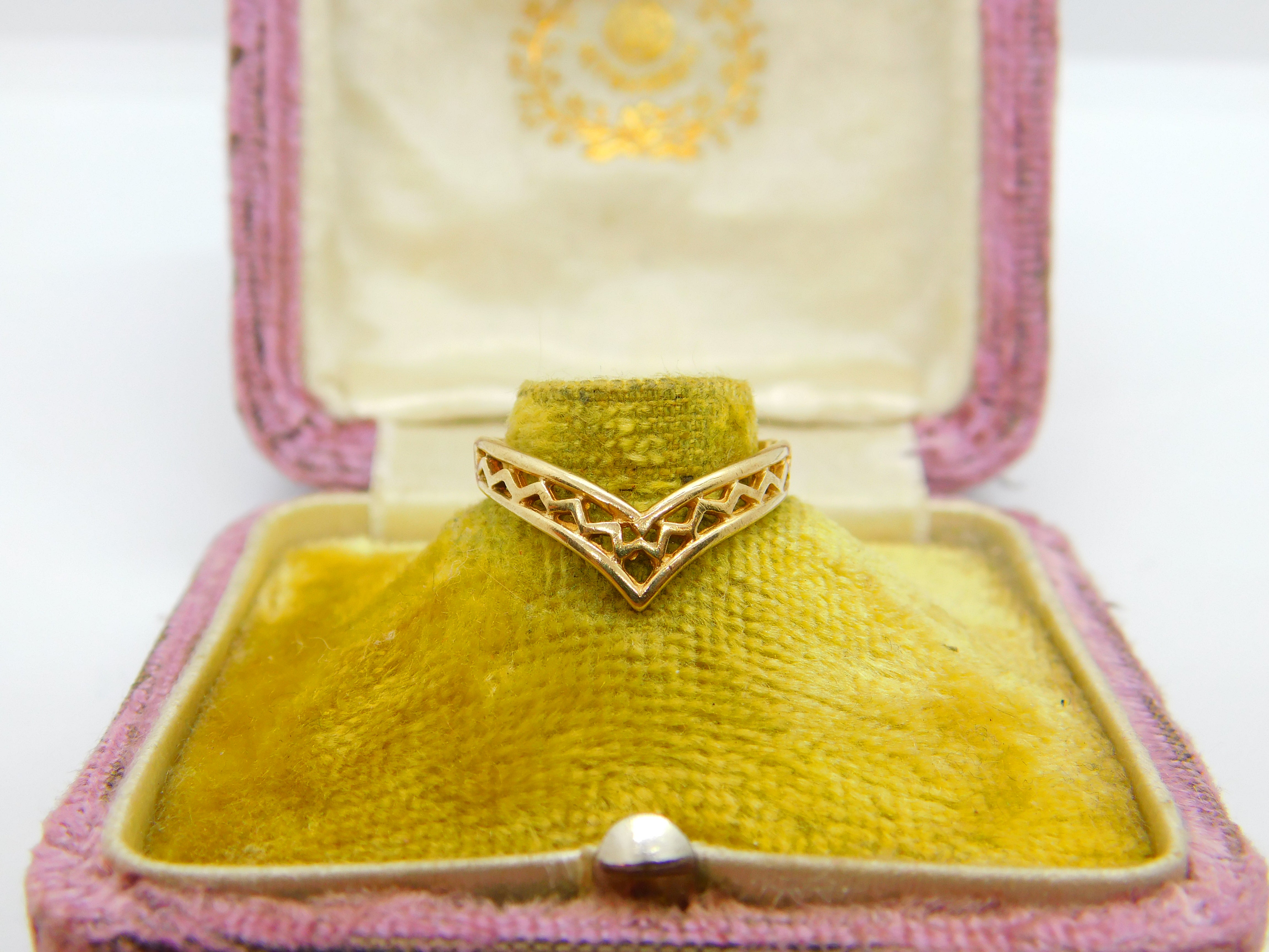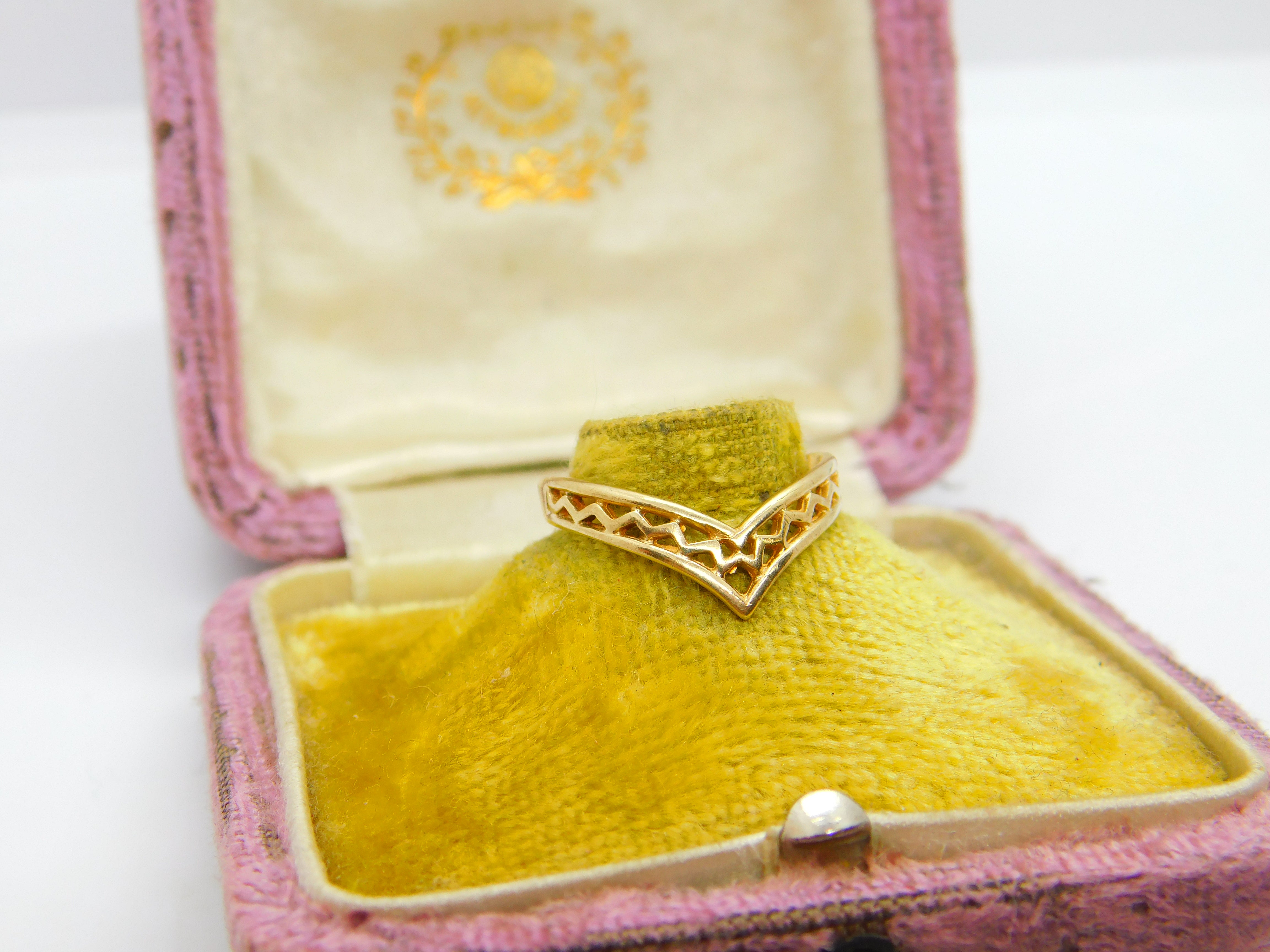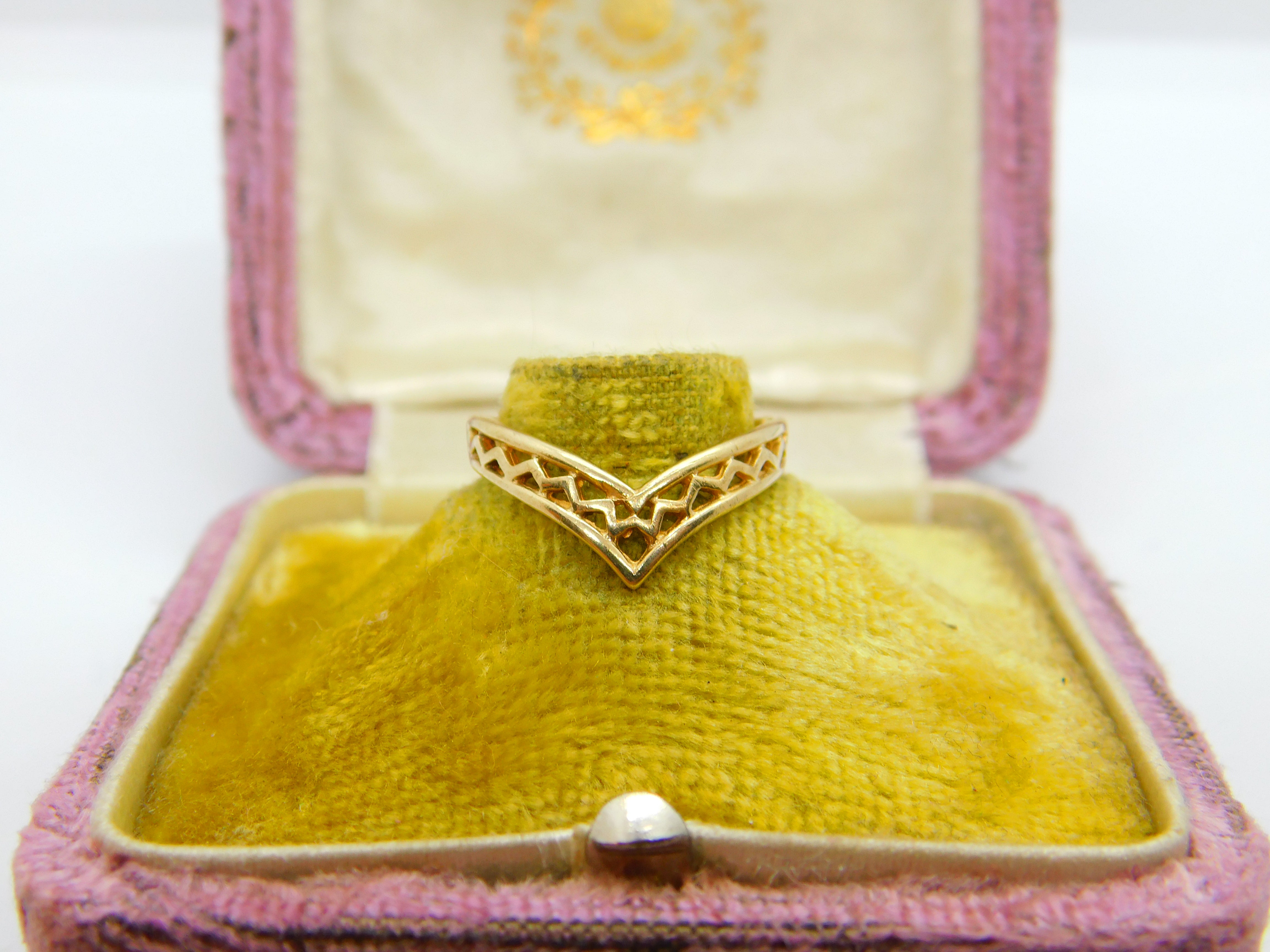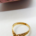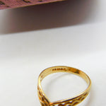 9ct Yellow Gold Woven Pattern Wishbone Band Ring 1987 London Vintage