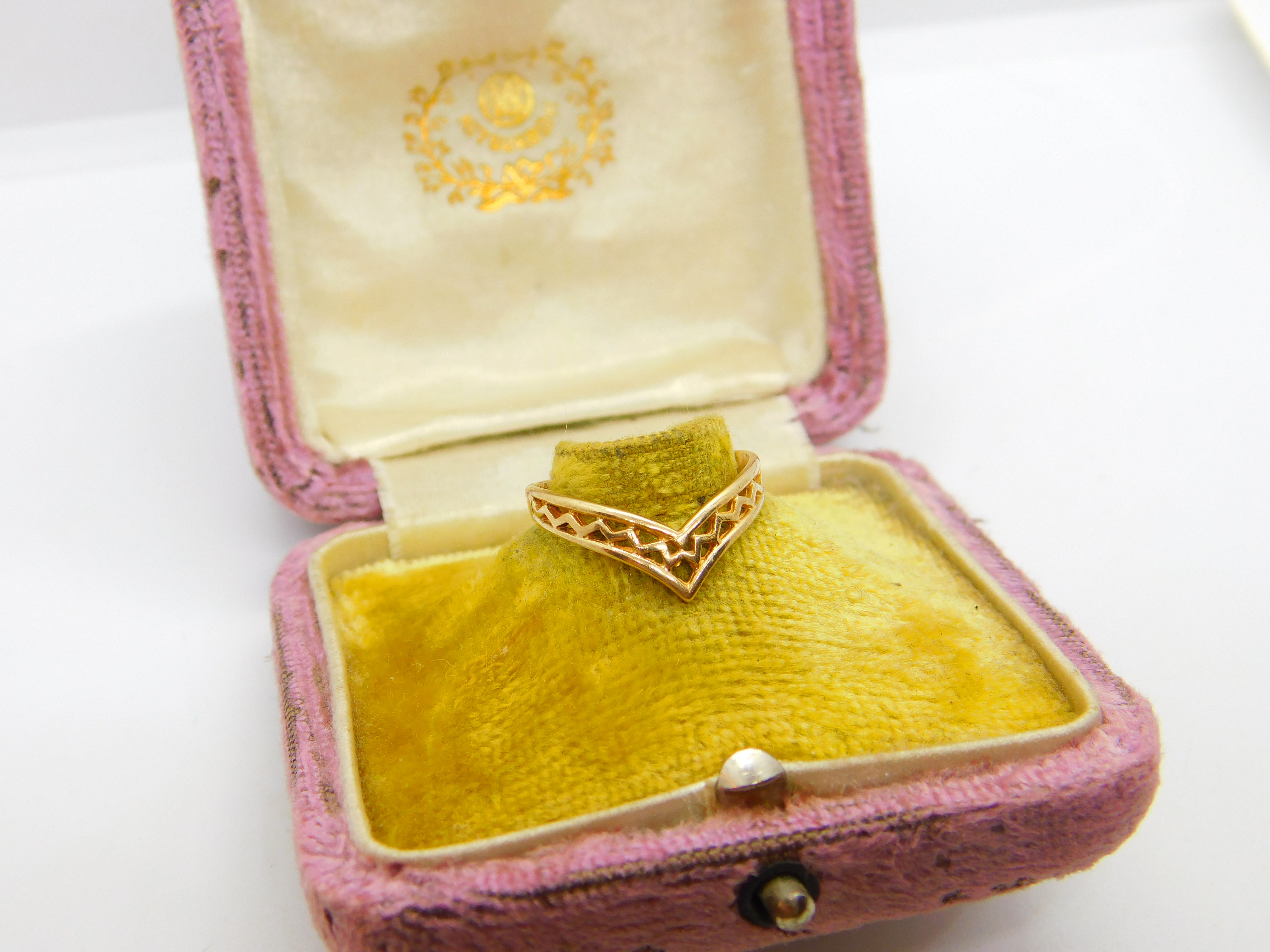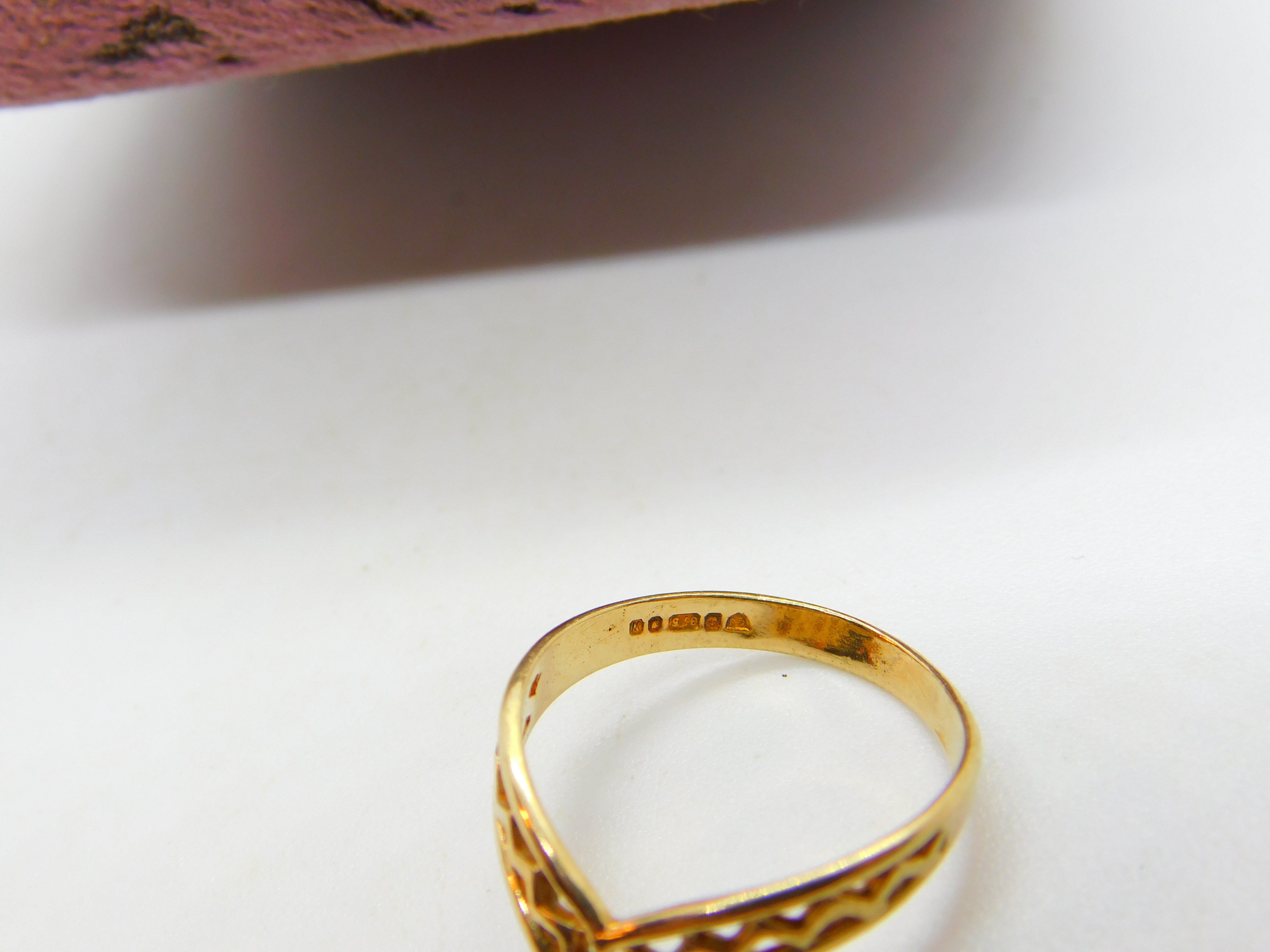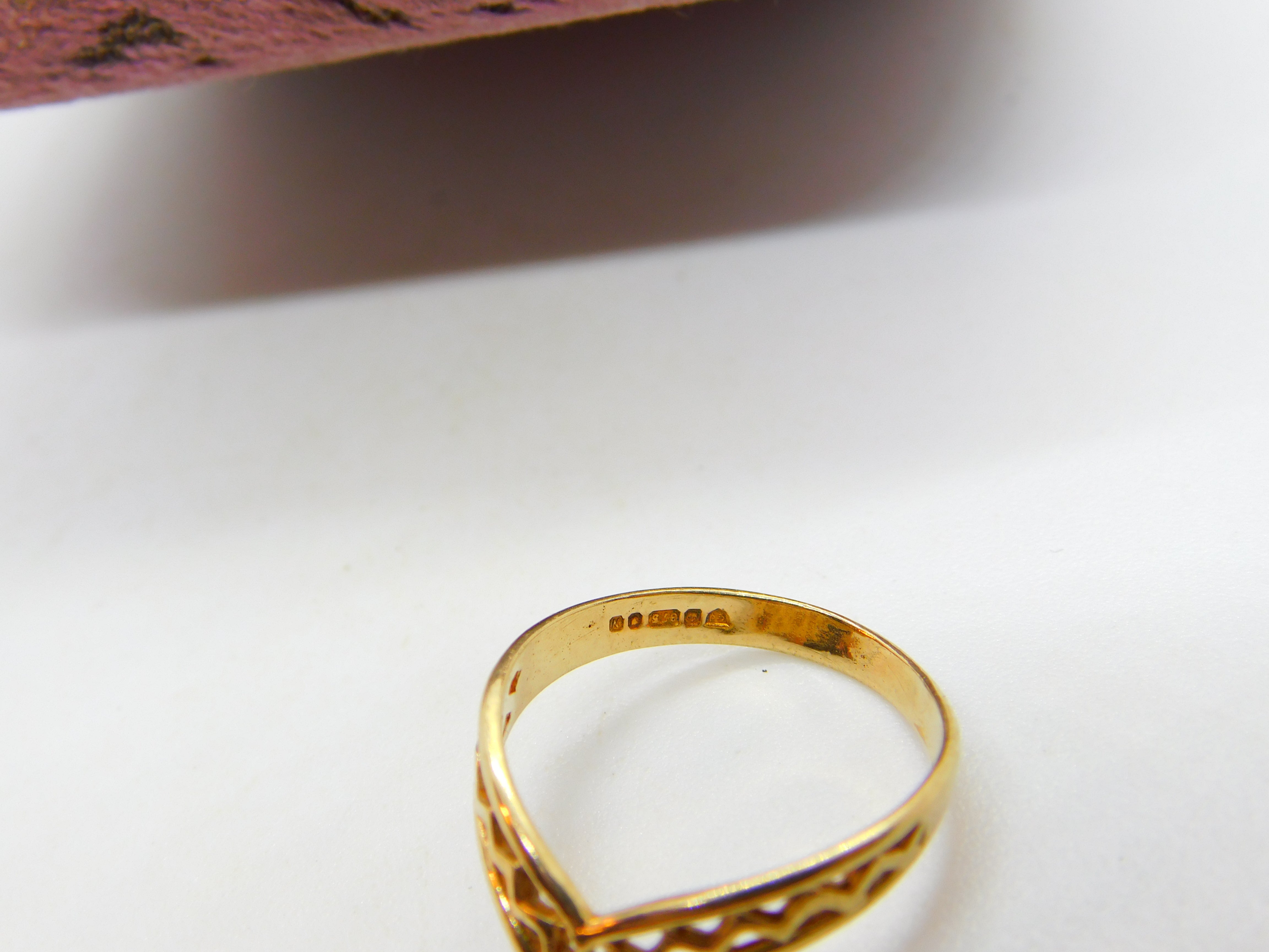 9ct Yellow Gold Woven Pattern Wishbone Band Ring 1987 London Vintage