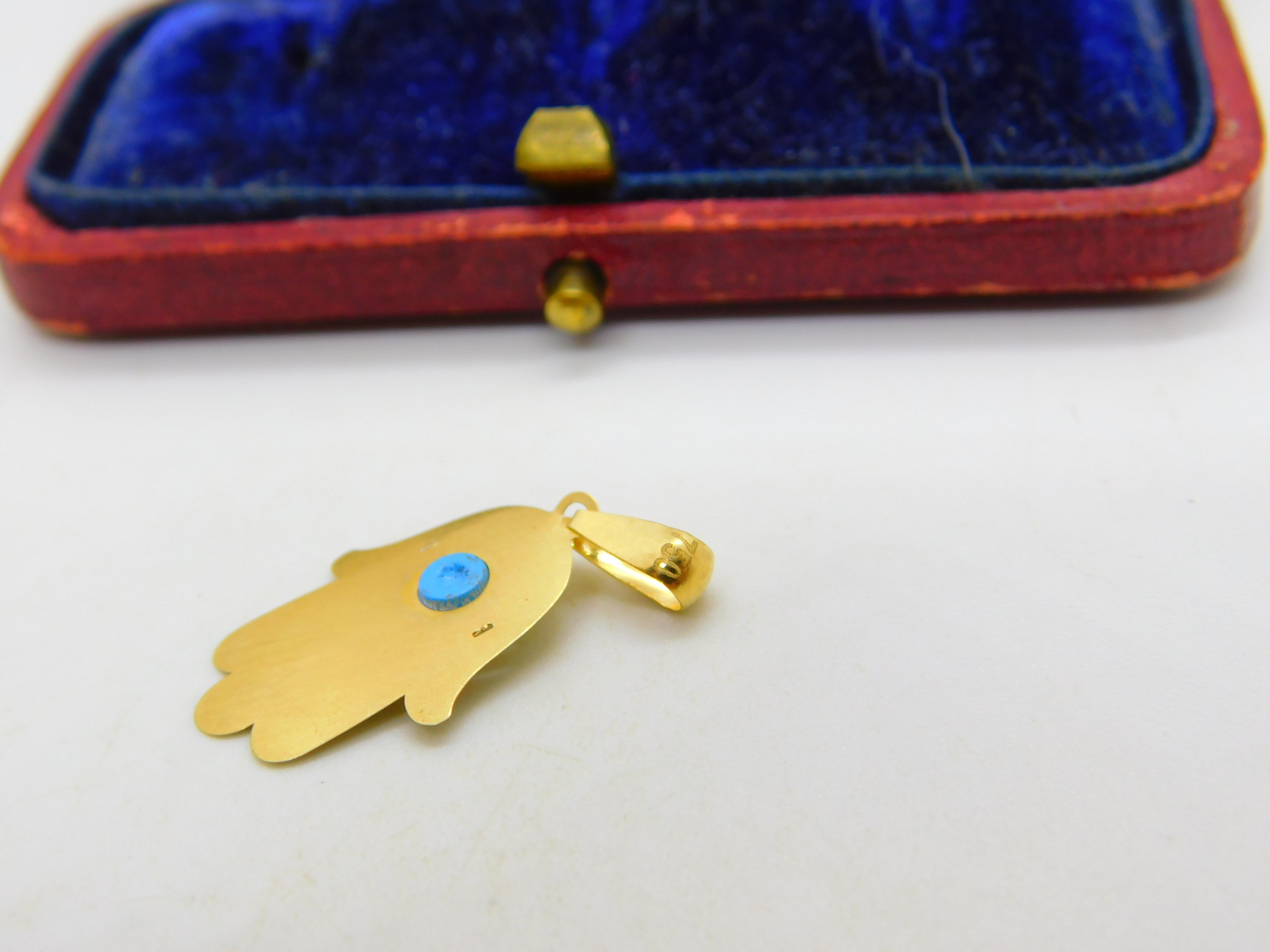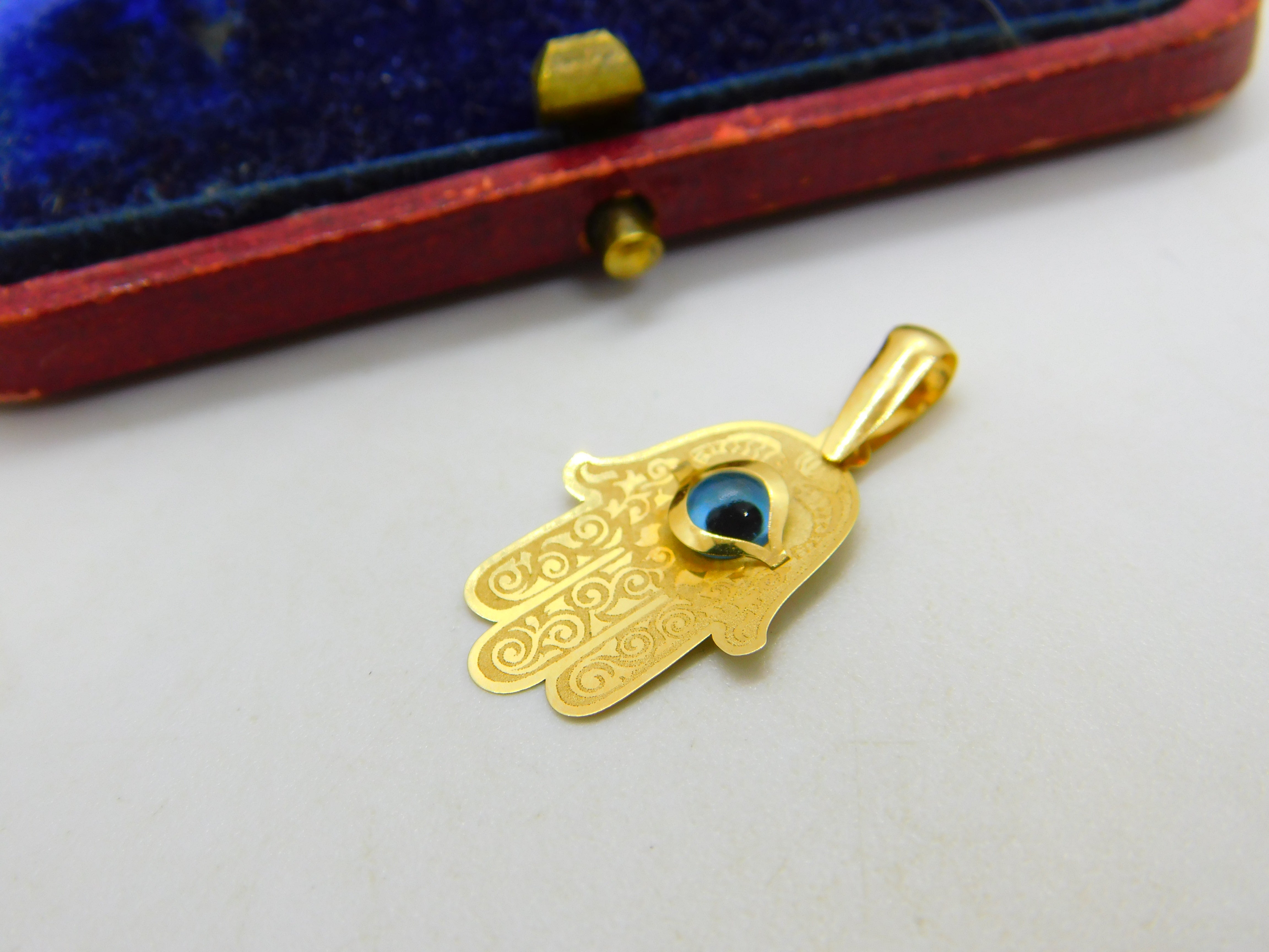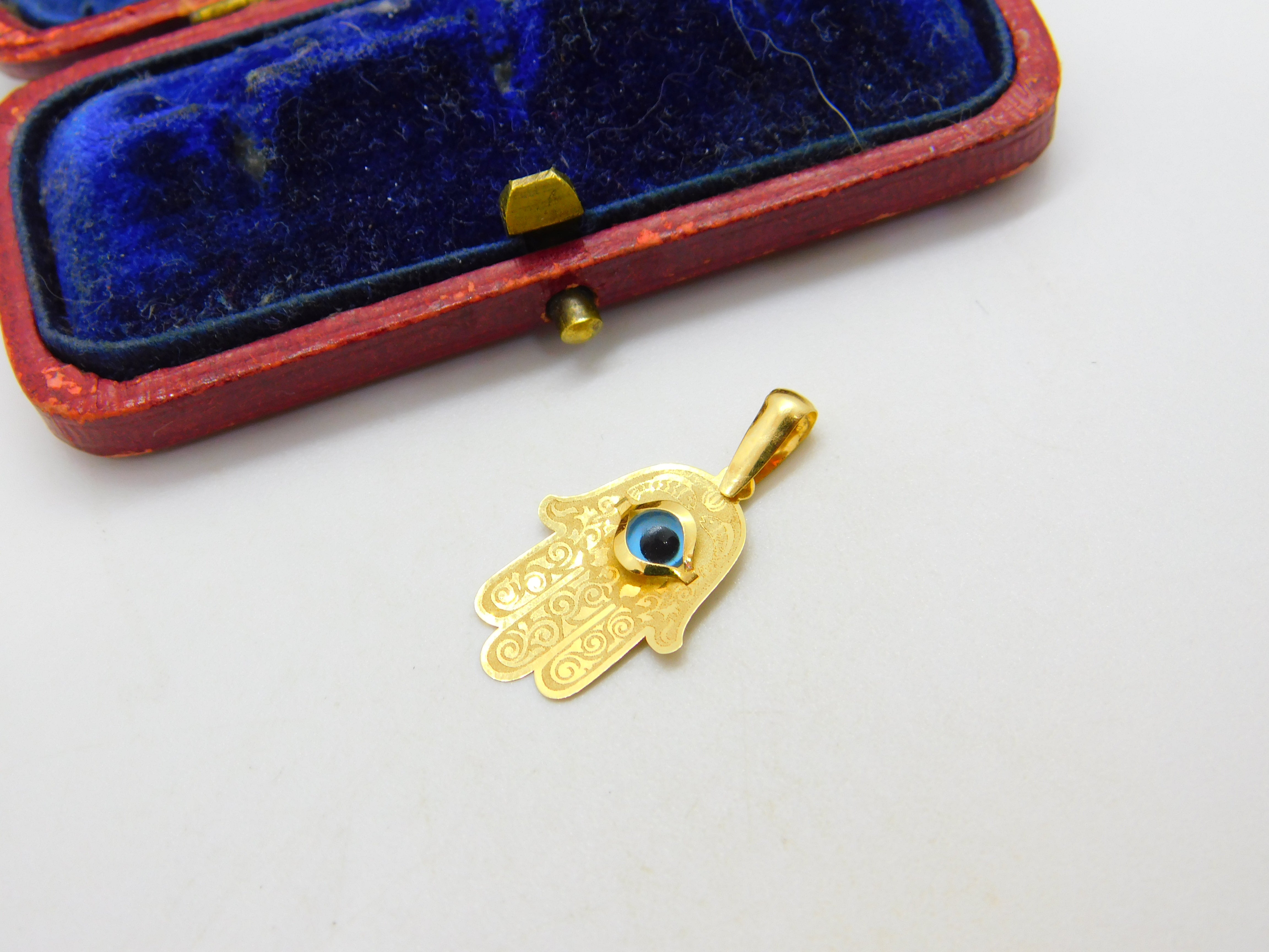 All Seeing Eye in Hand of Fatima 18ct Yellow Gold Charm Pendant Vintage c1980