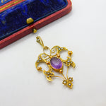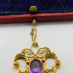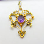 Amethyst, Seed Pearl 9ct Yellow Gold Dangling Pendant Lavalier Antique Victorian