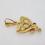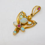 Art Nouveau 9ct Gold, Ruby & Cabochon Opal Lavalier Pendant Antique c1910