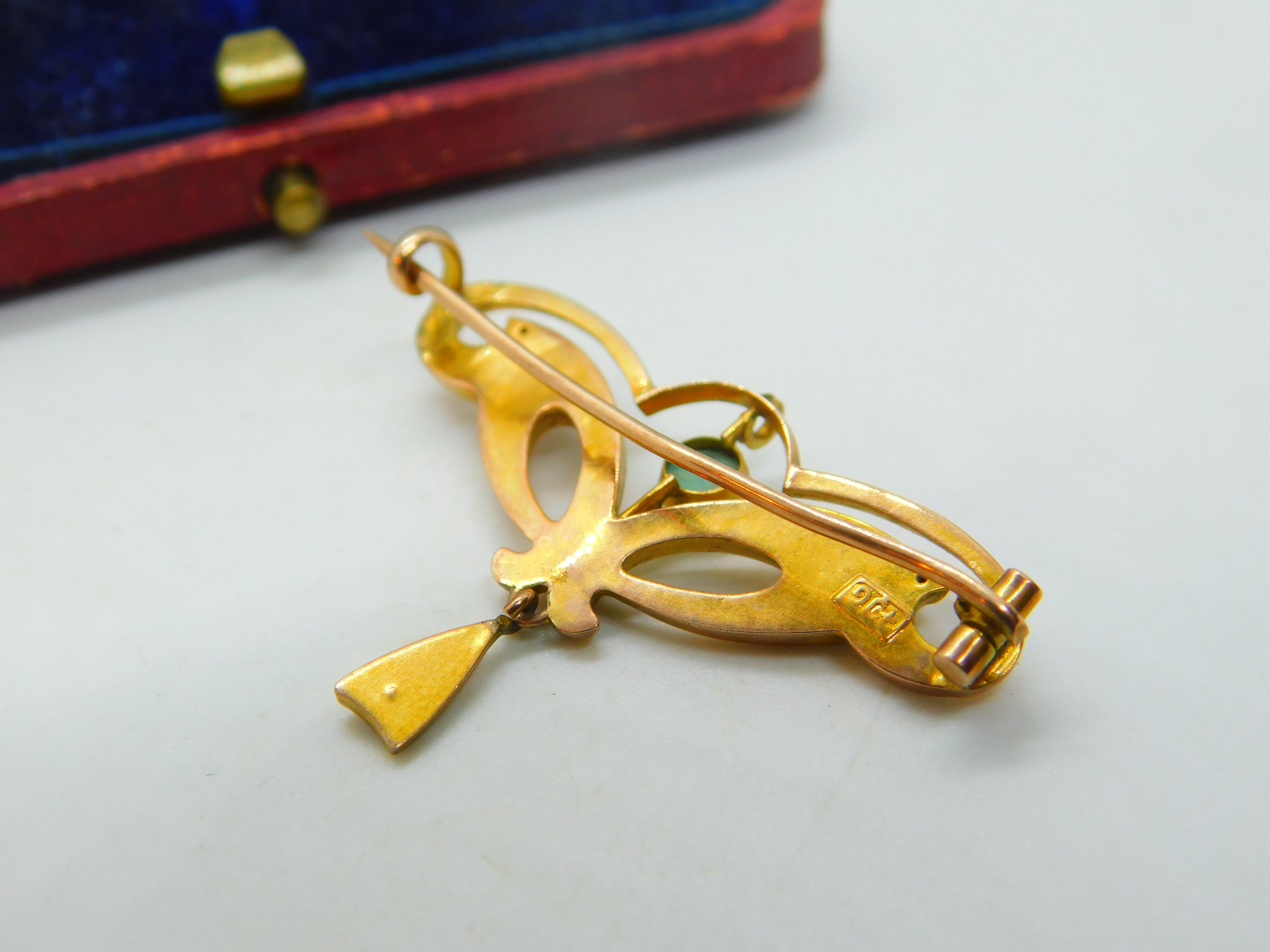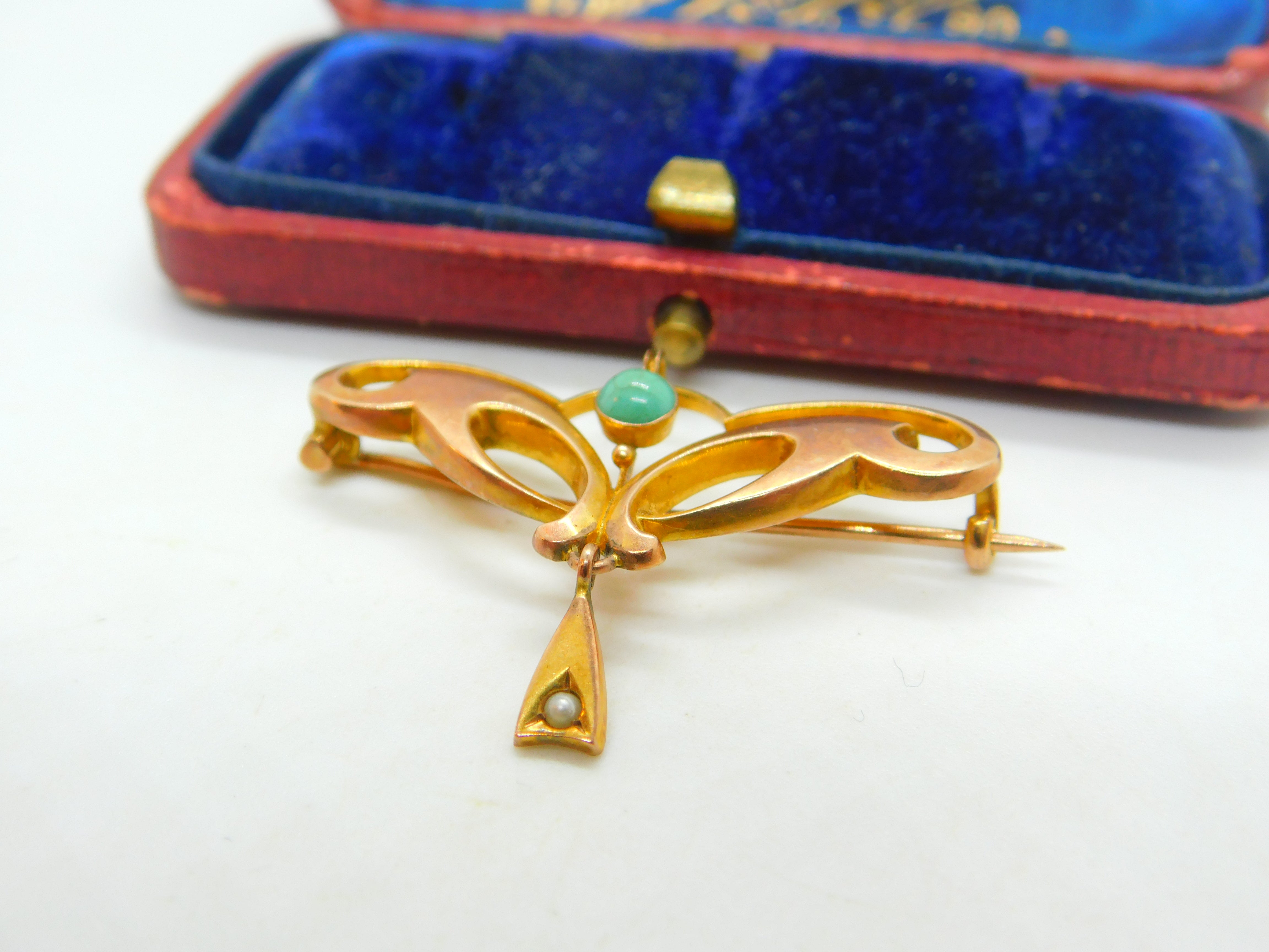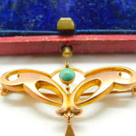 Art Nouveau 9ct Gold, Turquoise & Pearl Murrle Bennett Style Brooch Antique 1910