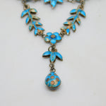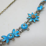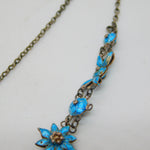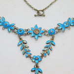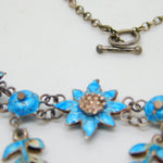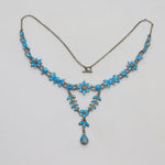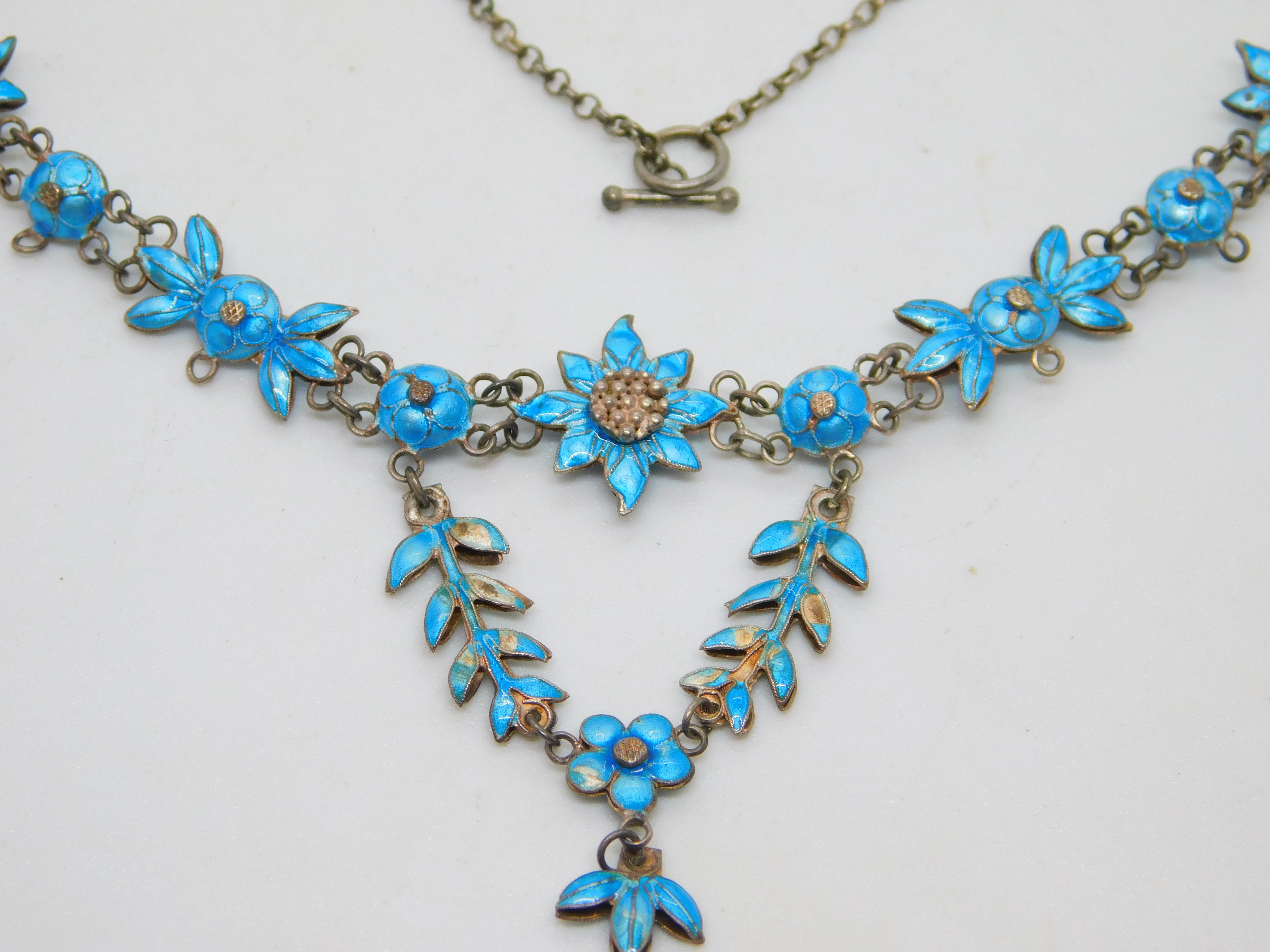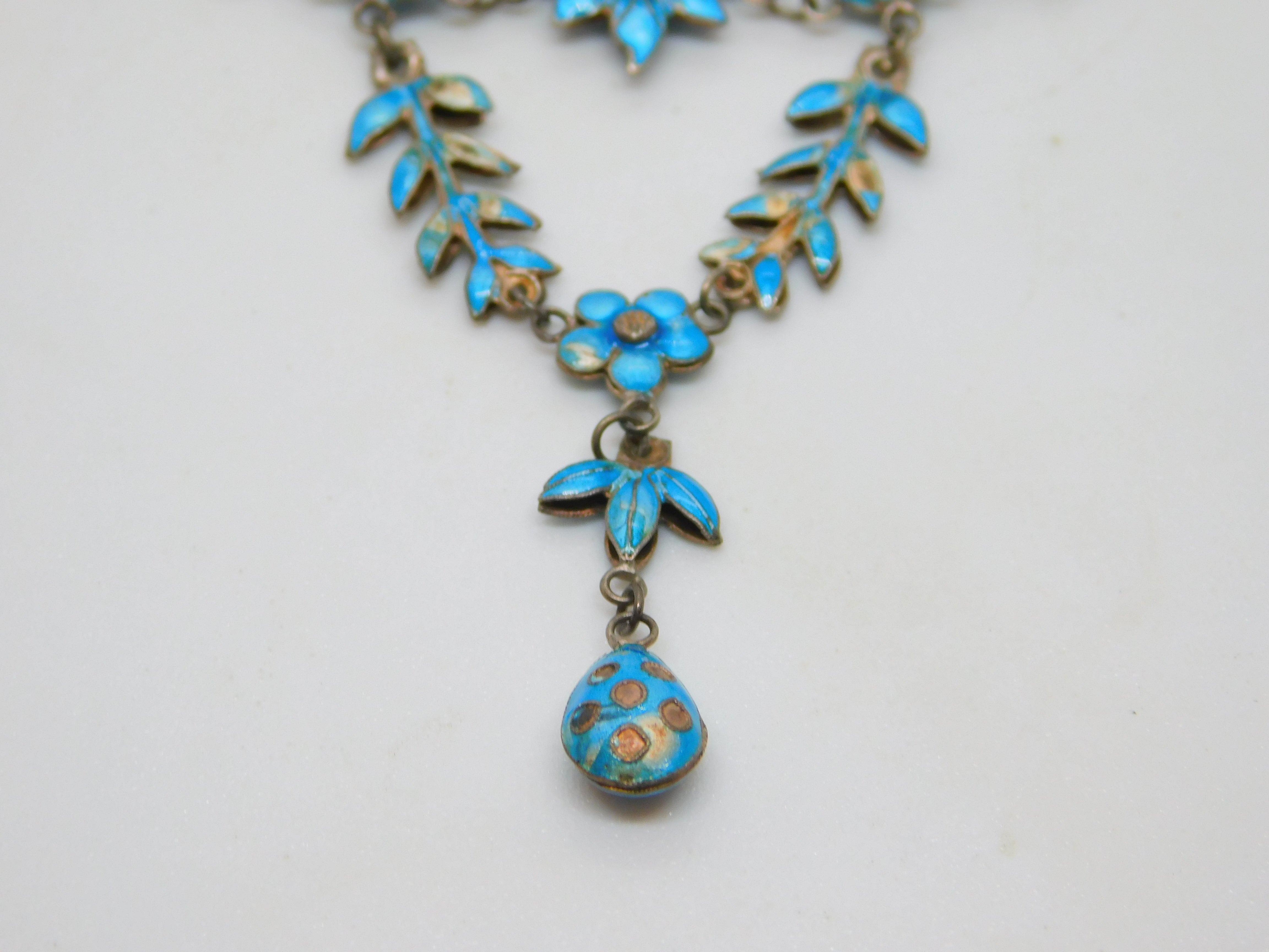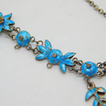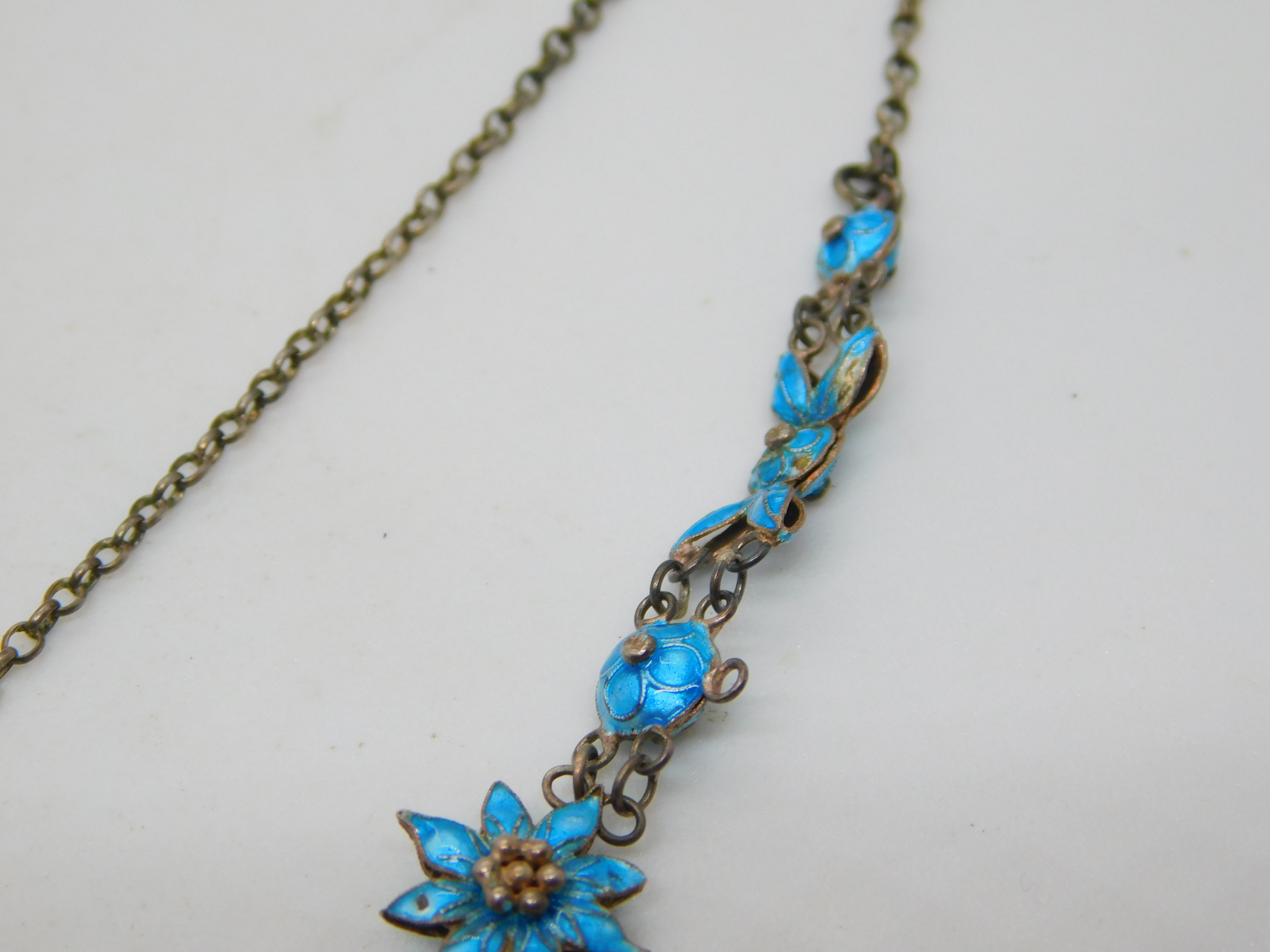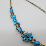 Art Nouveau Sterling Silver & Blue Enamel Floral Drop Necklace Antique c1880