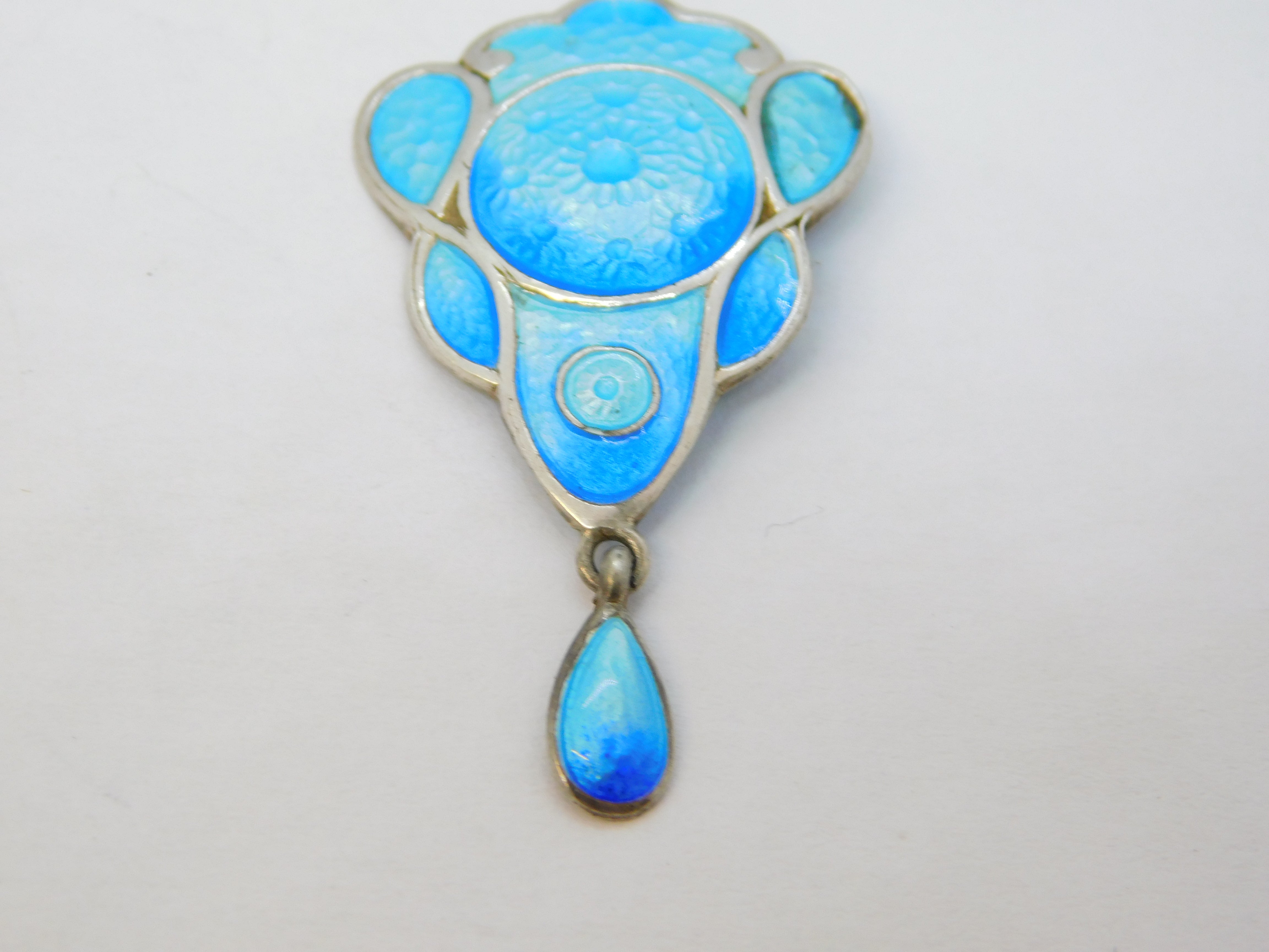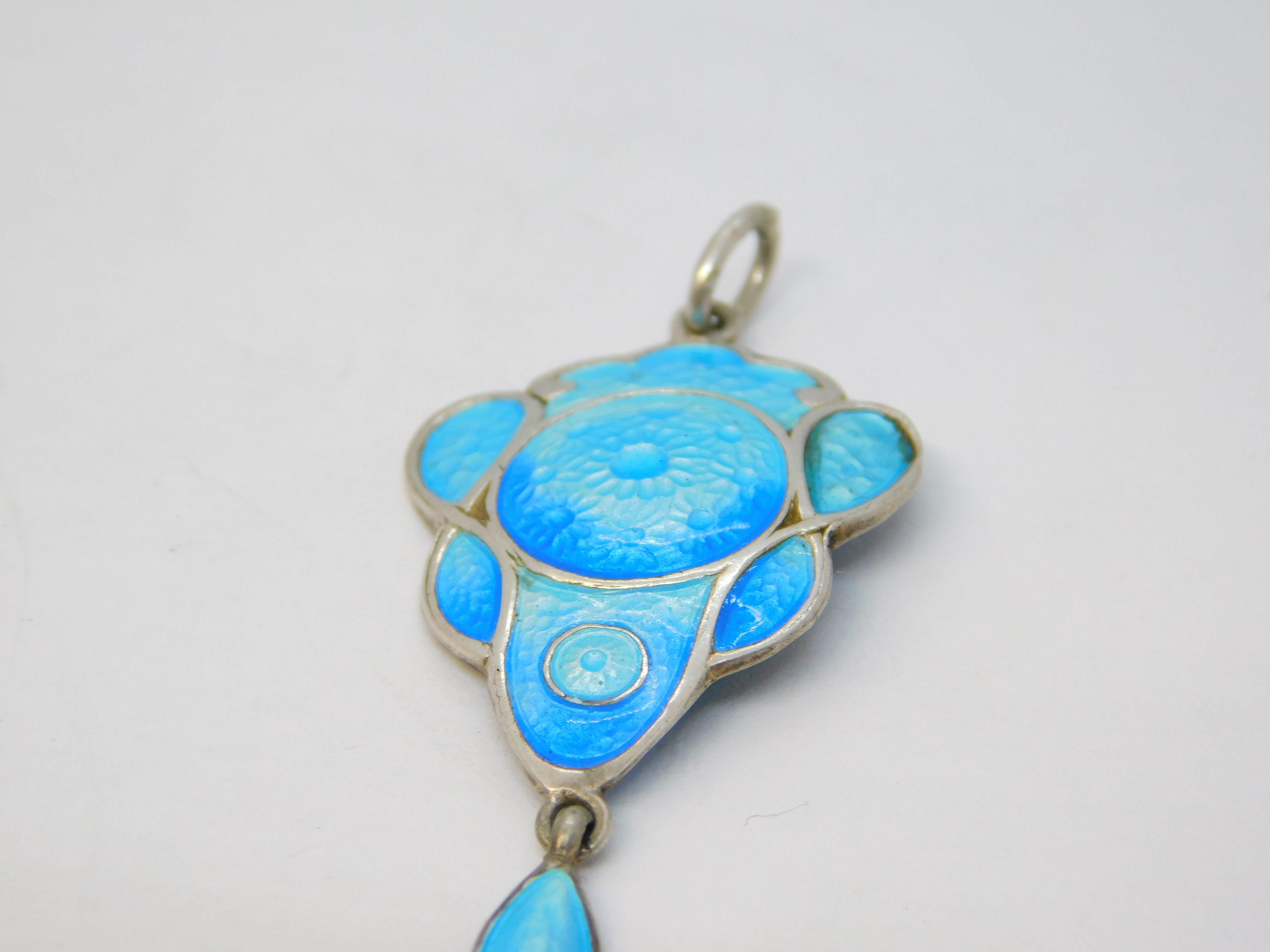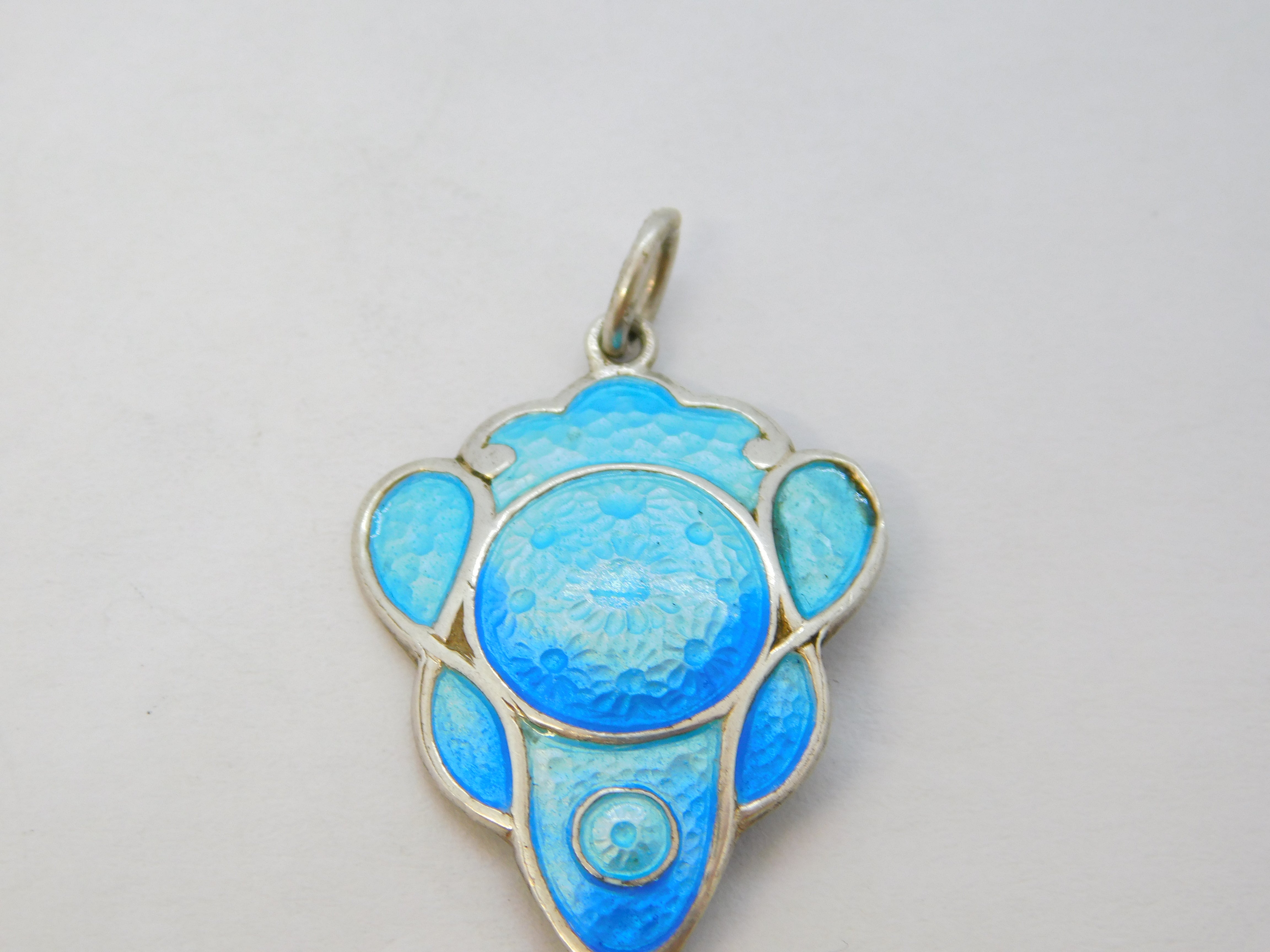 Art Nouveau Sterling Silver & Enamel Floral Drop Pendant Antique c1890