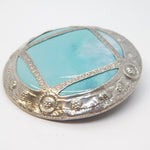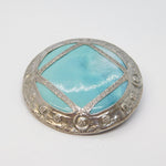 Arts & Crafts Sterling Silver Fronted Blue Enamel Brooch Pin Antique c1910