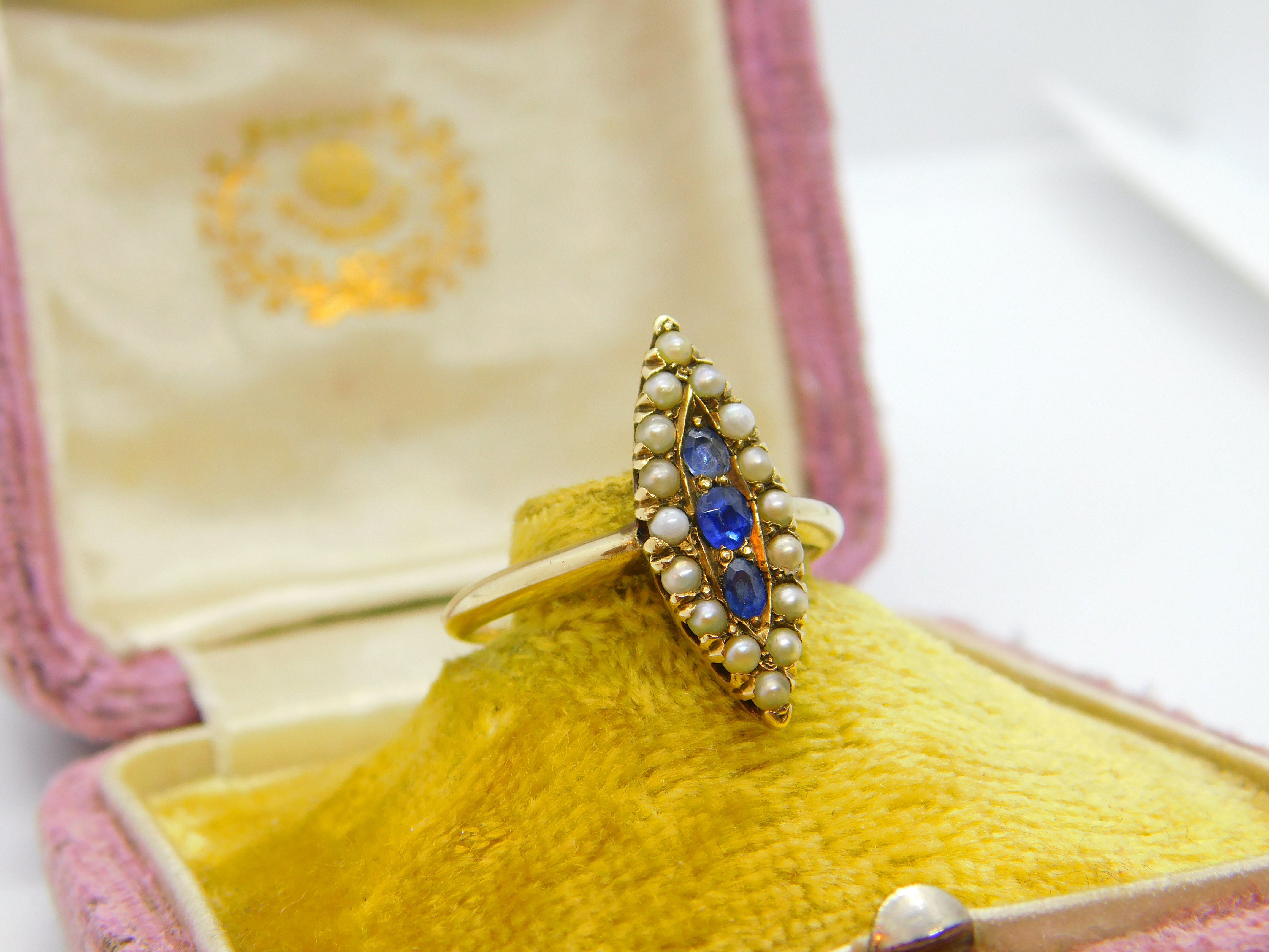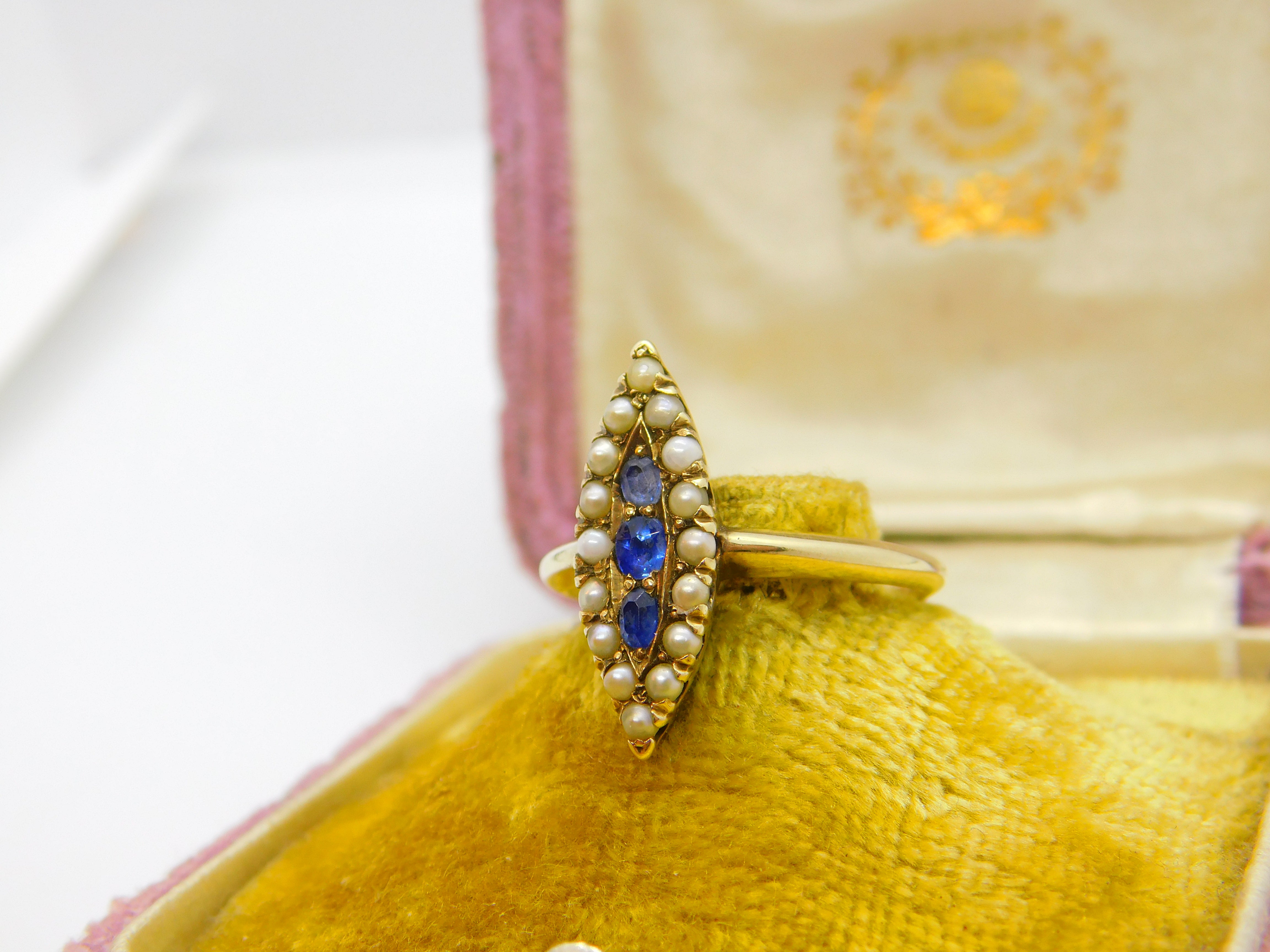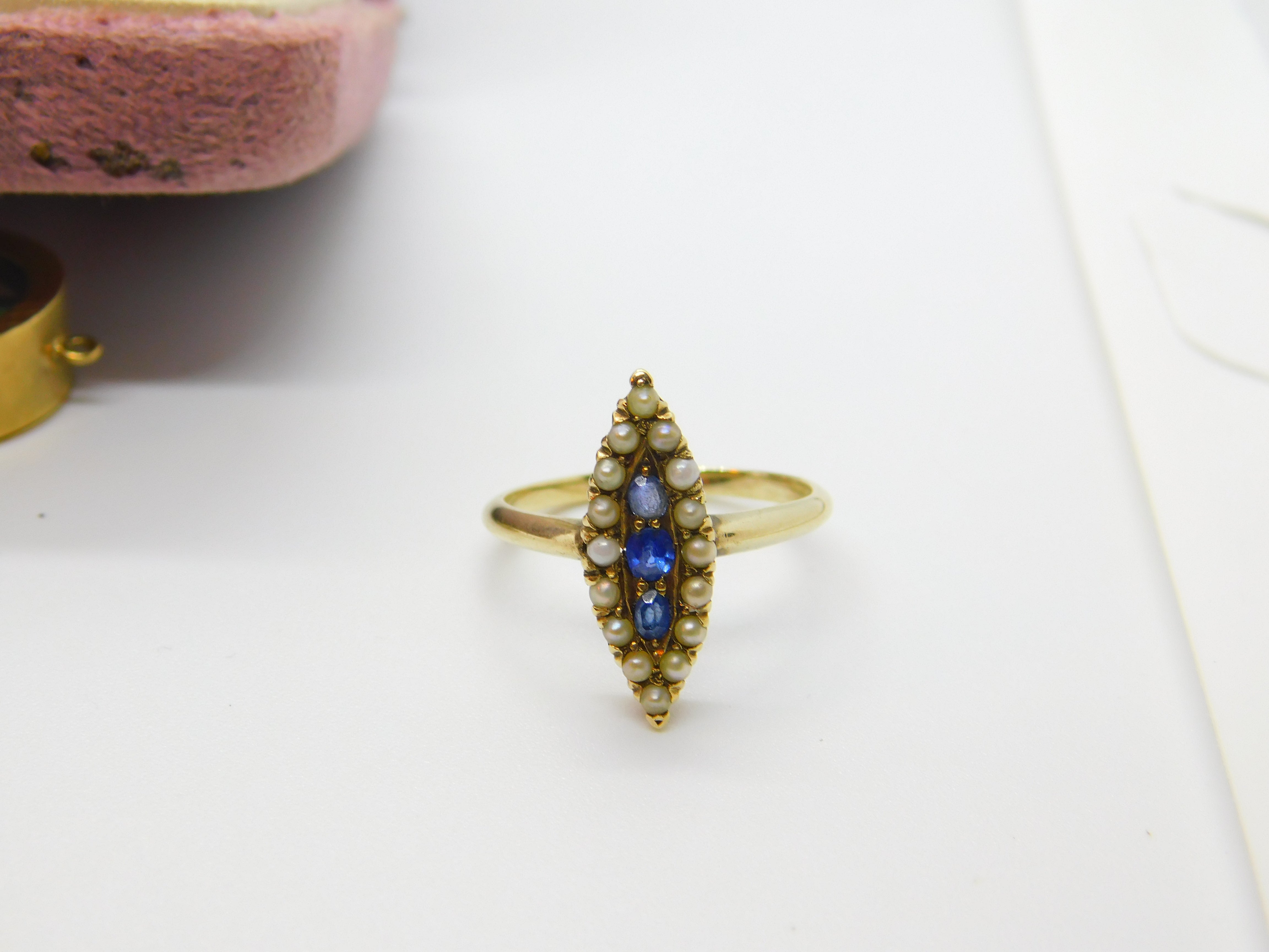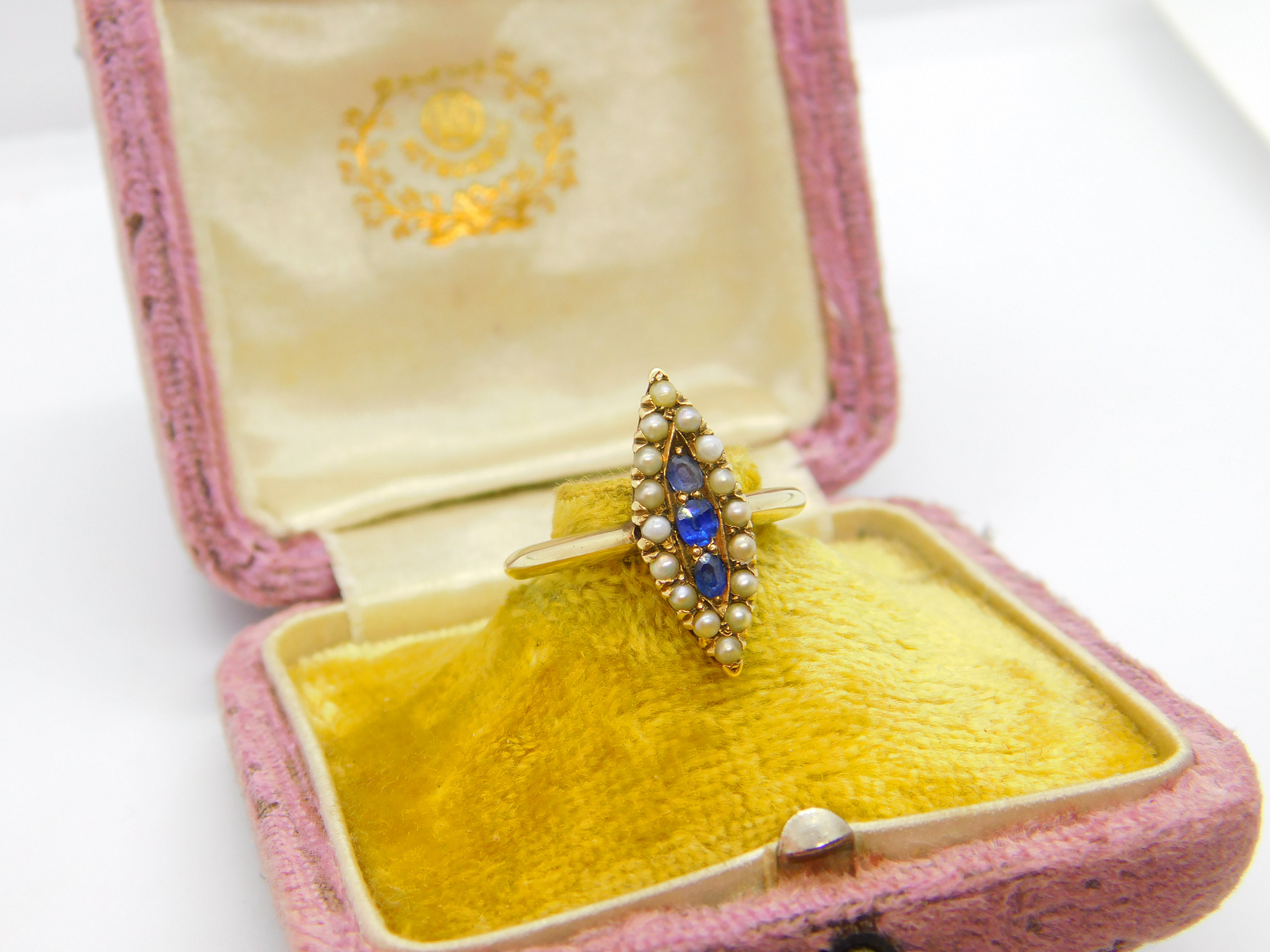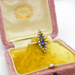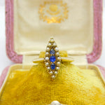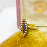 Austro-Hungarian 14ct Gold, Seed Pearl & Sapphire Marquise Form Ring Antique