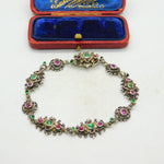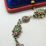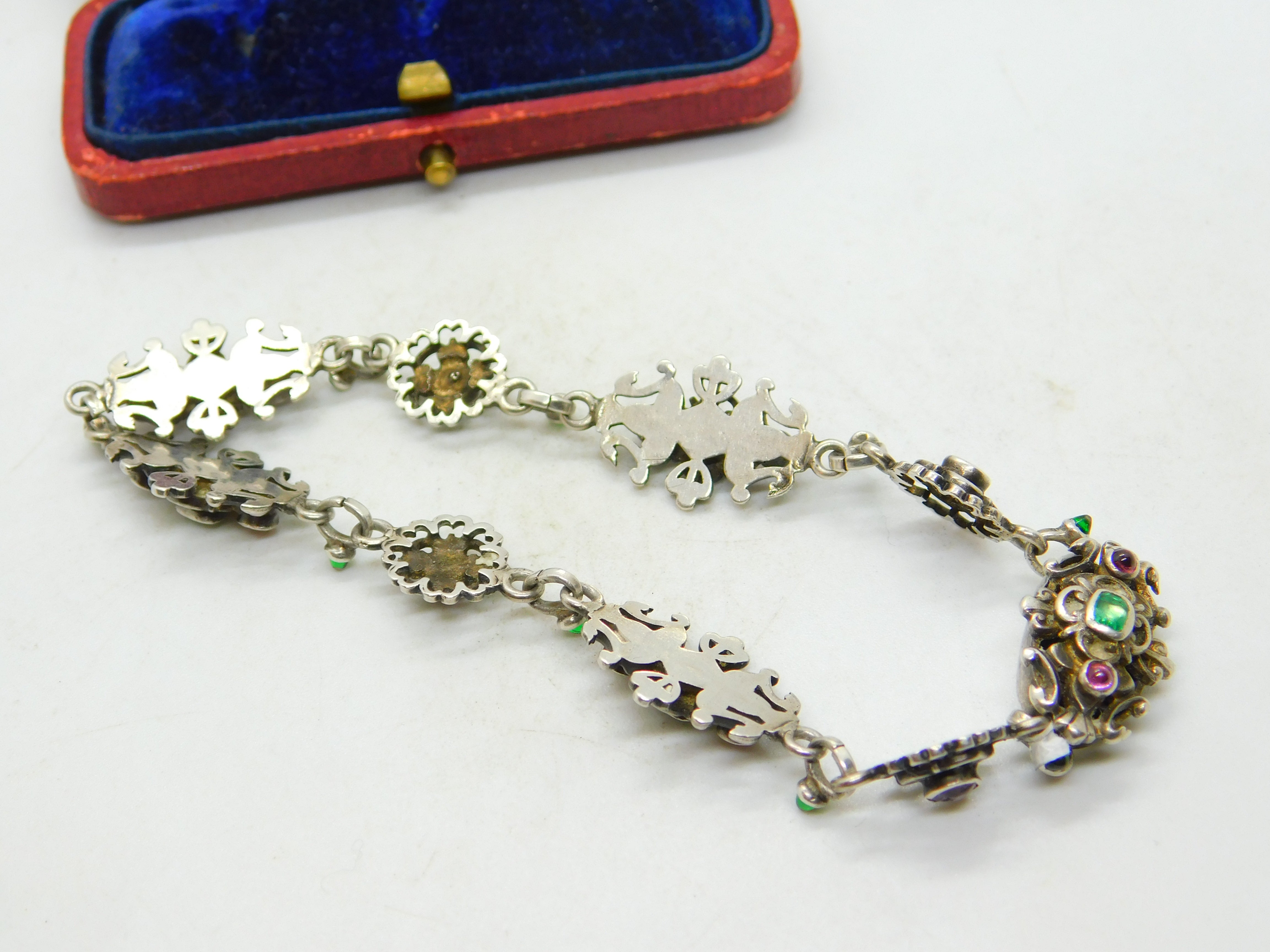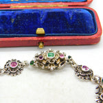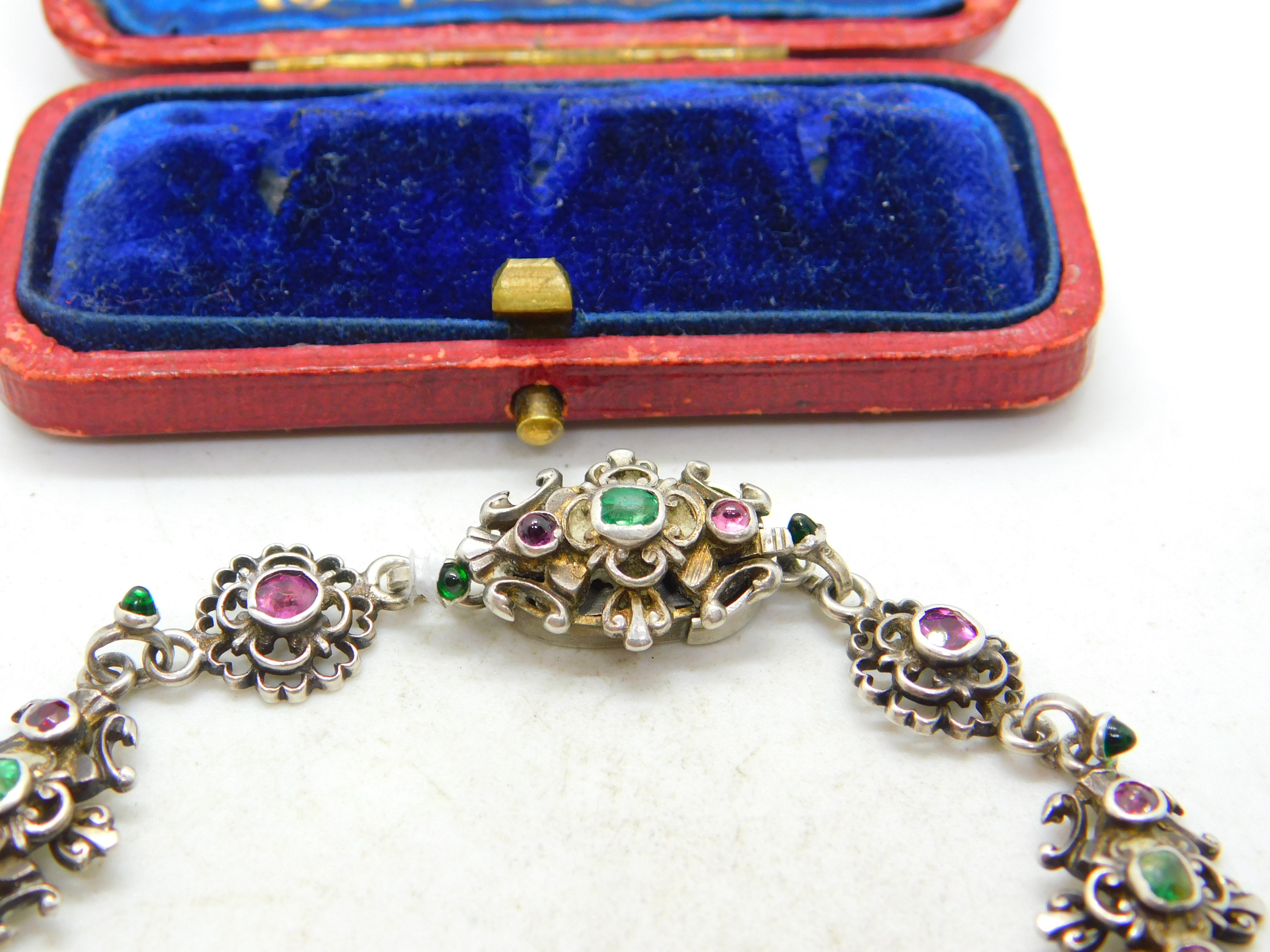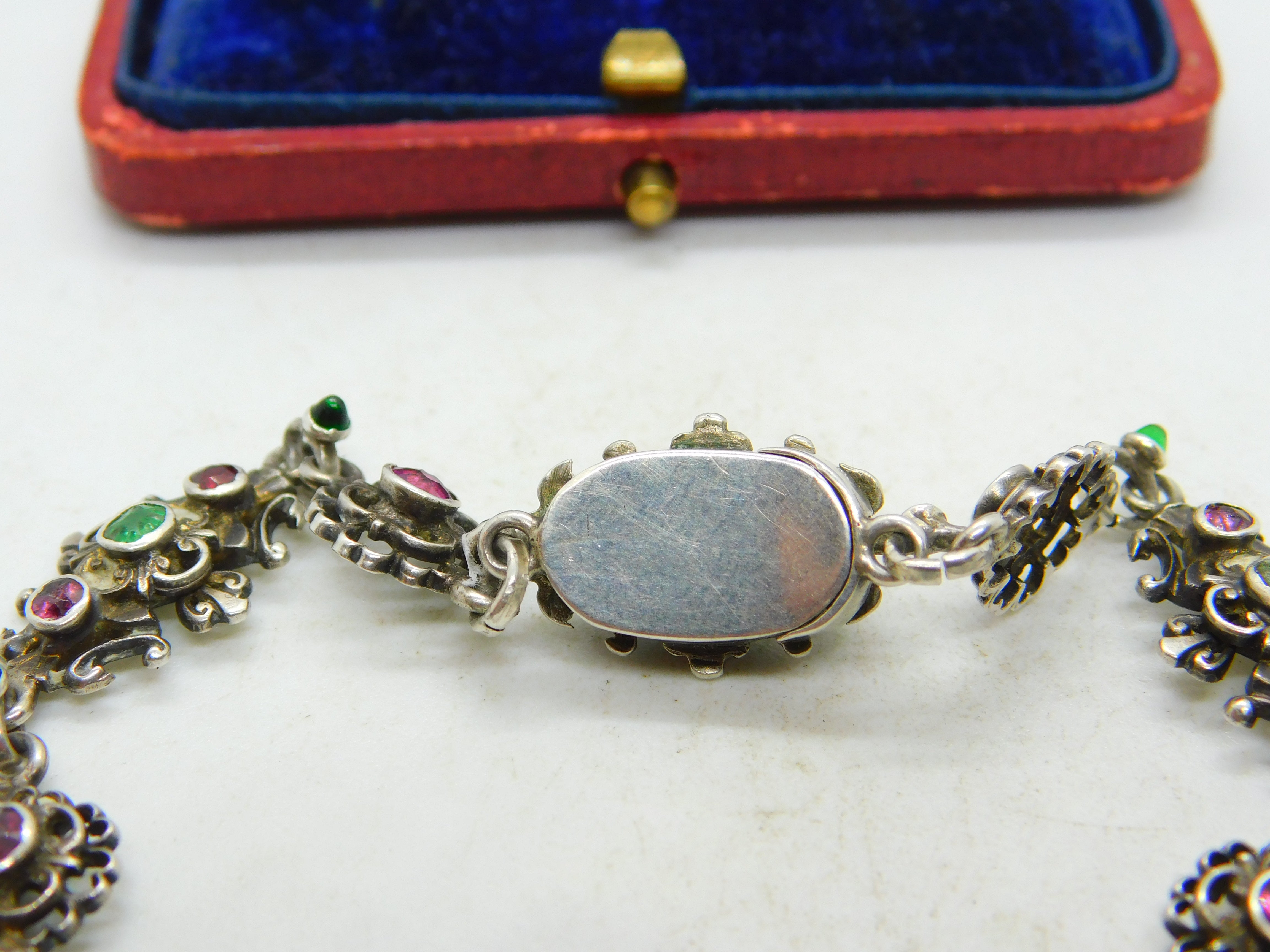 Austro Hungarian Emerald and Amethyst Paste Sterling Silver Bracelet Antique c1860