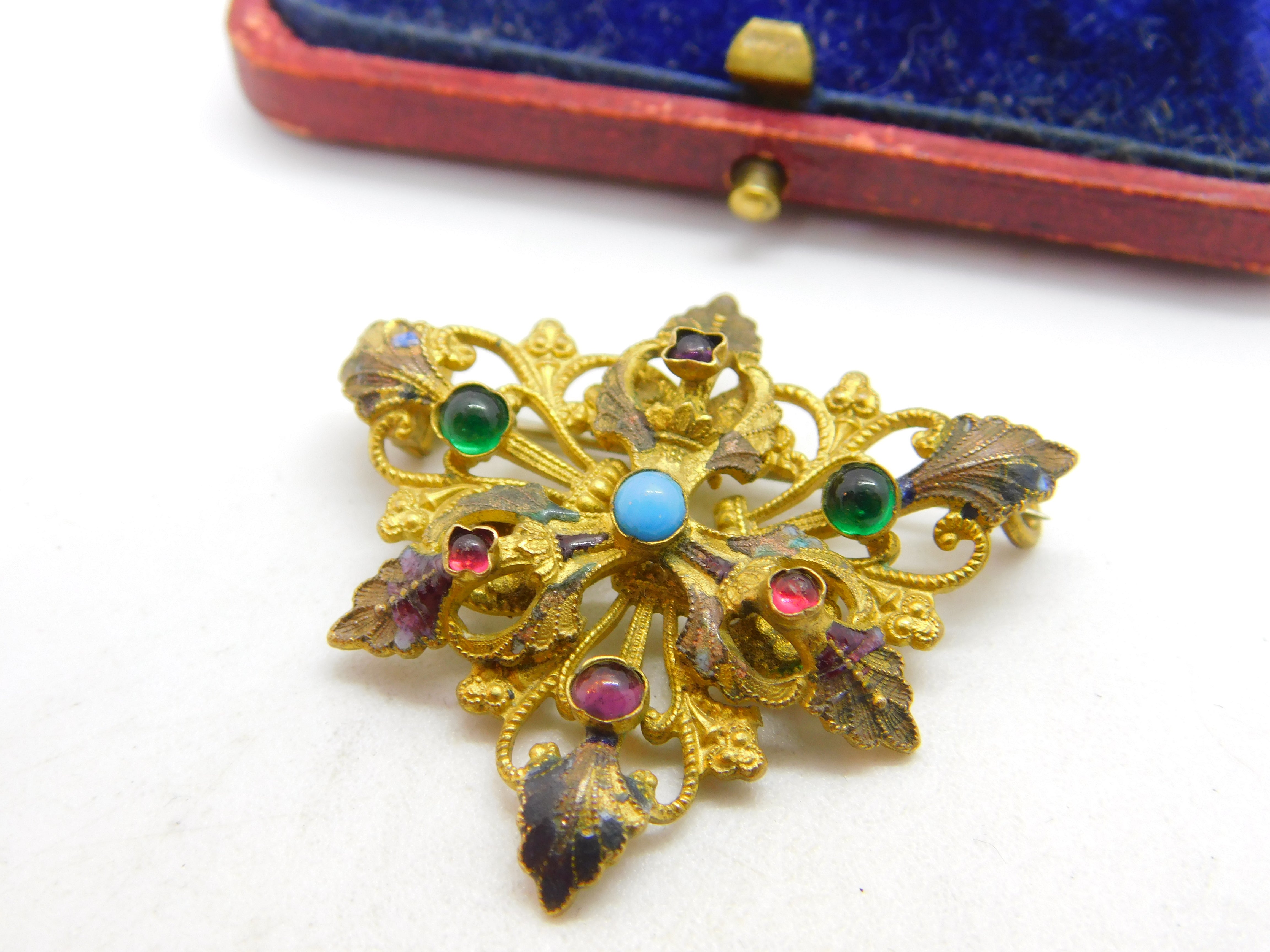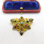 Details: A fantastic and wonderfully designed antique Victorian austro-hungarian pinchbeck leaf brooch set with multiple cabochon stones c1860. This is a wonderful item that would make a perfect gift or addition to any collection. The BOX pictured is for PRESENTATION ONLY and is NOT included in the listings but used to frame the pictures unless specifically stated otherwise.