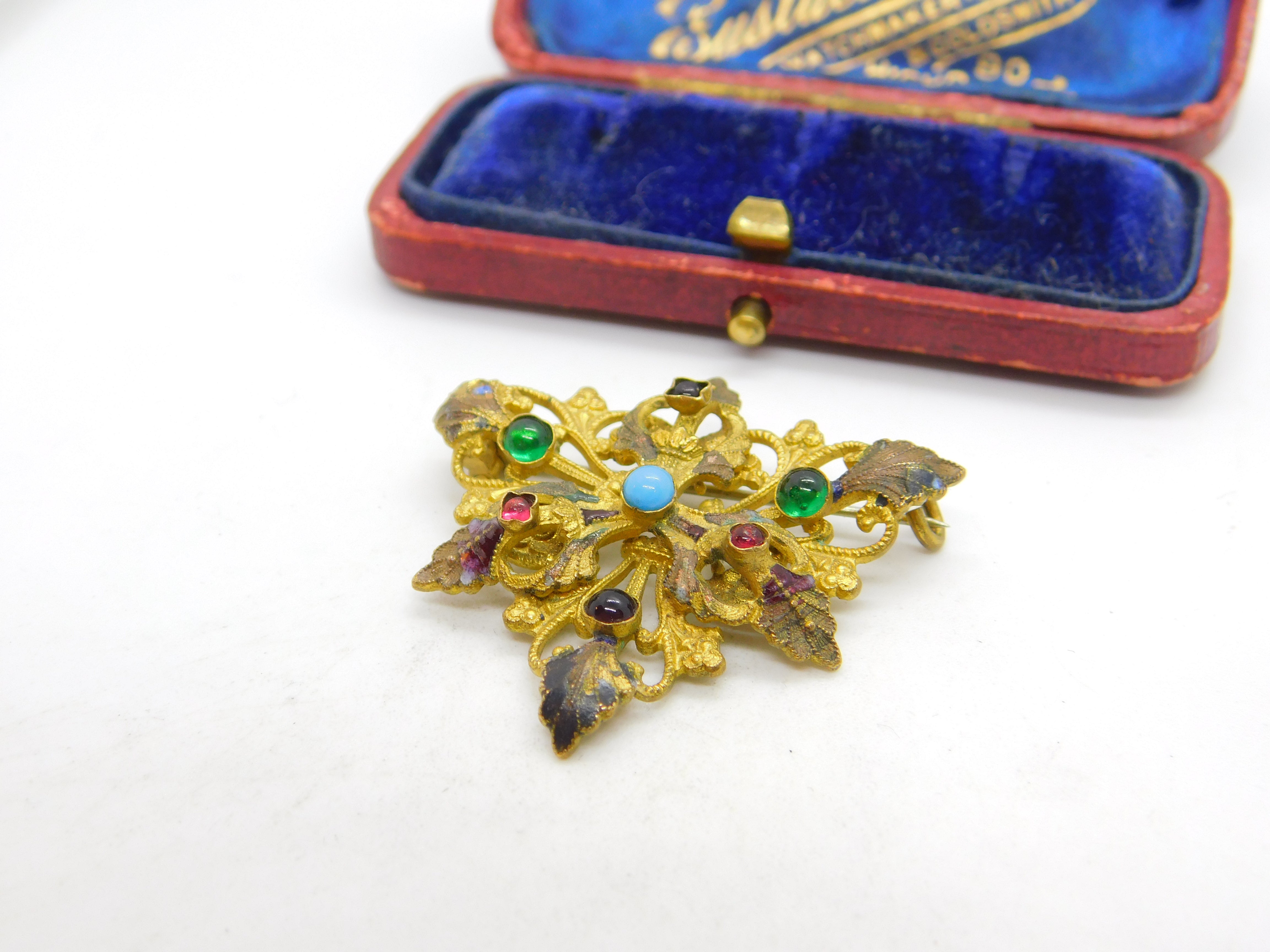 Austro-Hungarian Pinchbeck & Cabochon Set Floral Leaf Brooch c1860 Antique