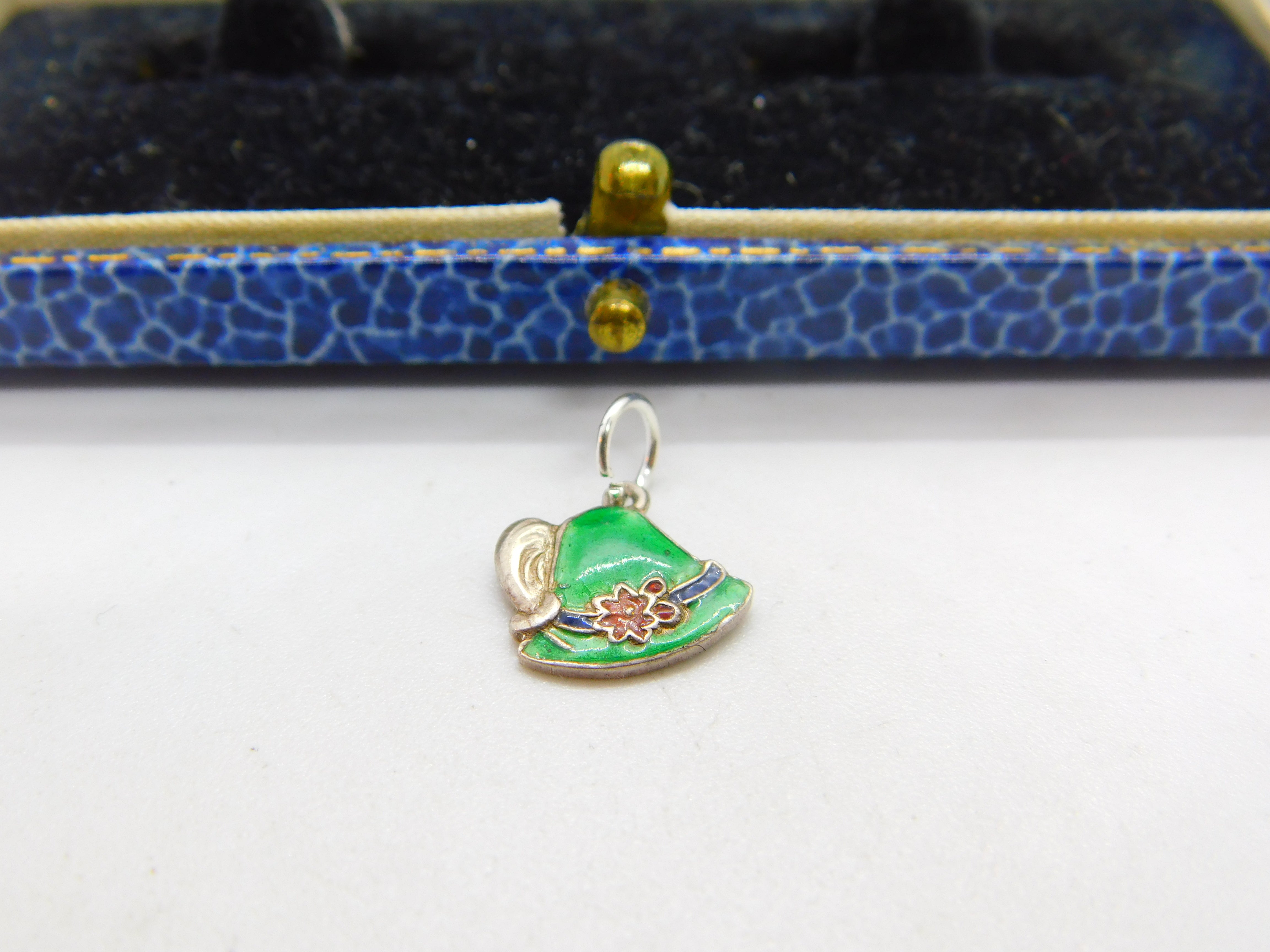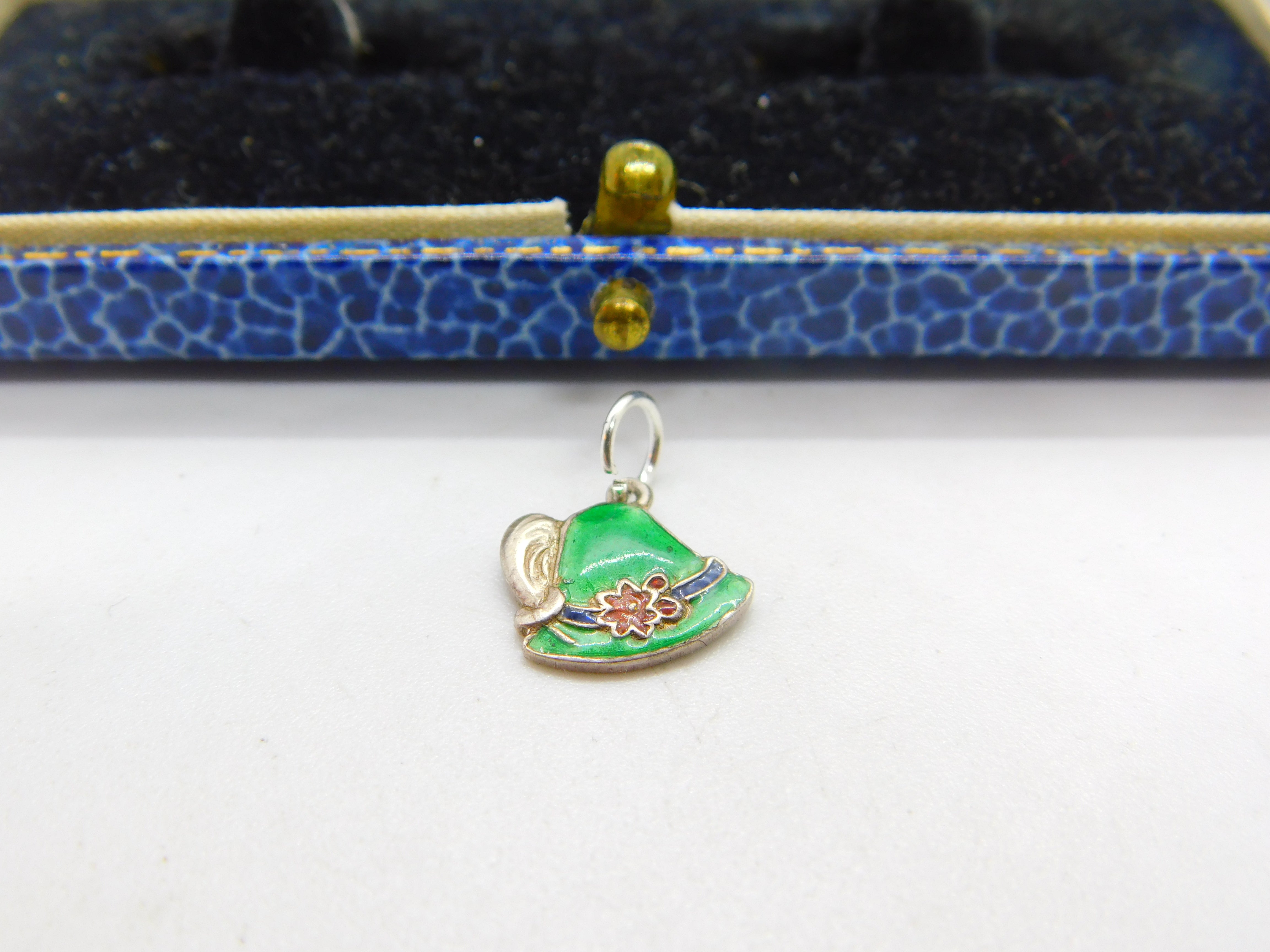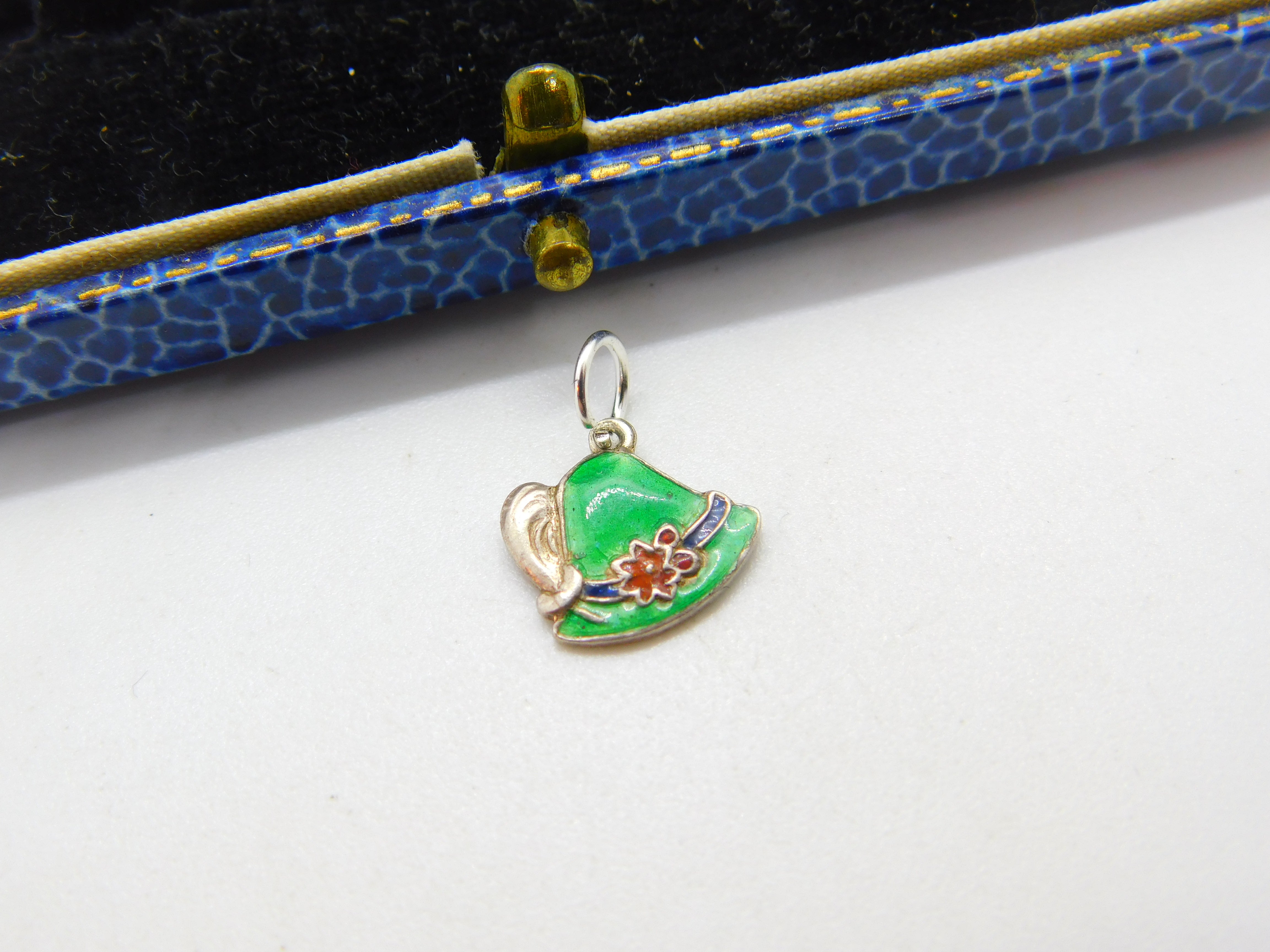 Details: A fantastic and wonderfully designed antique Victorian austro-hungarian .835 grade silver and colourful enamel robin hood style bard hat charm marked 835 to the reverse c1900. This is a wonderful item that would make a perfect gift or addition to any collection. The BOX pictured is for PRESENTATION ONLY and is NOT included in the listings but used to frame the pictures unless specifically stated otherwise.
