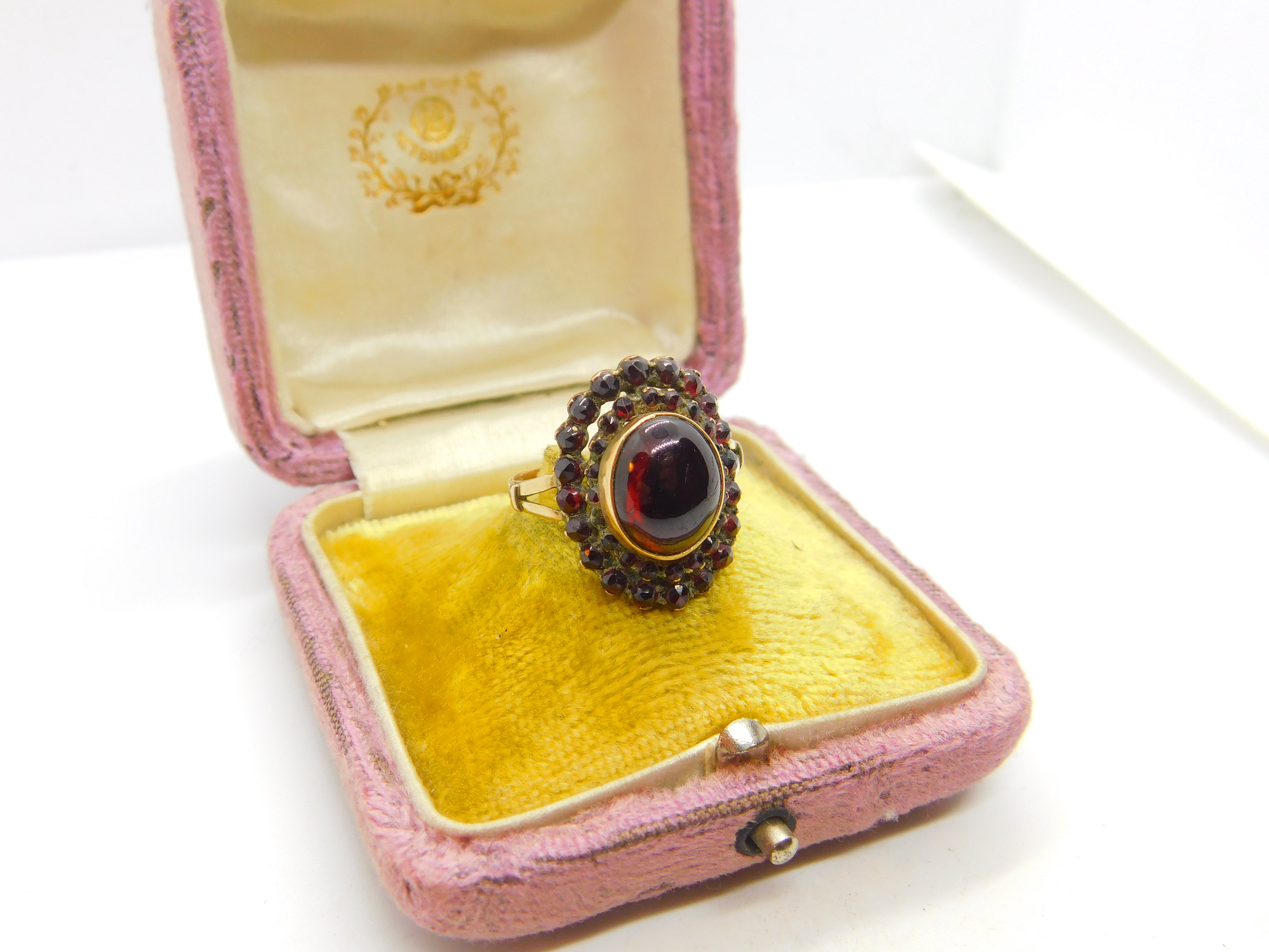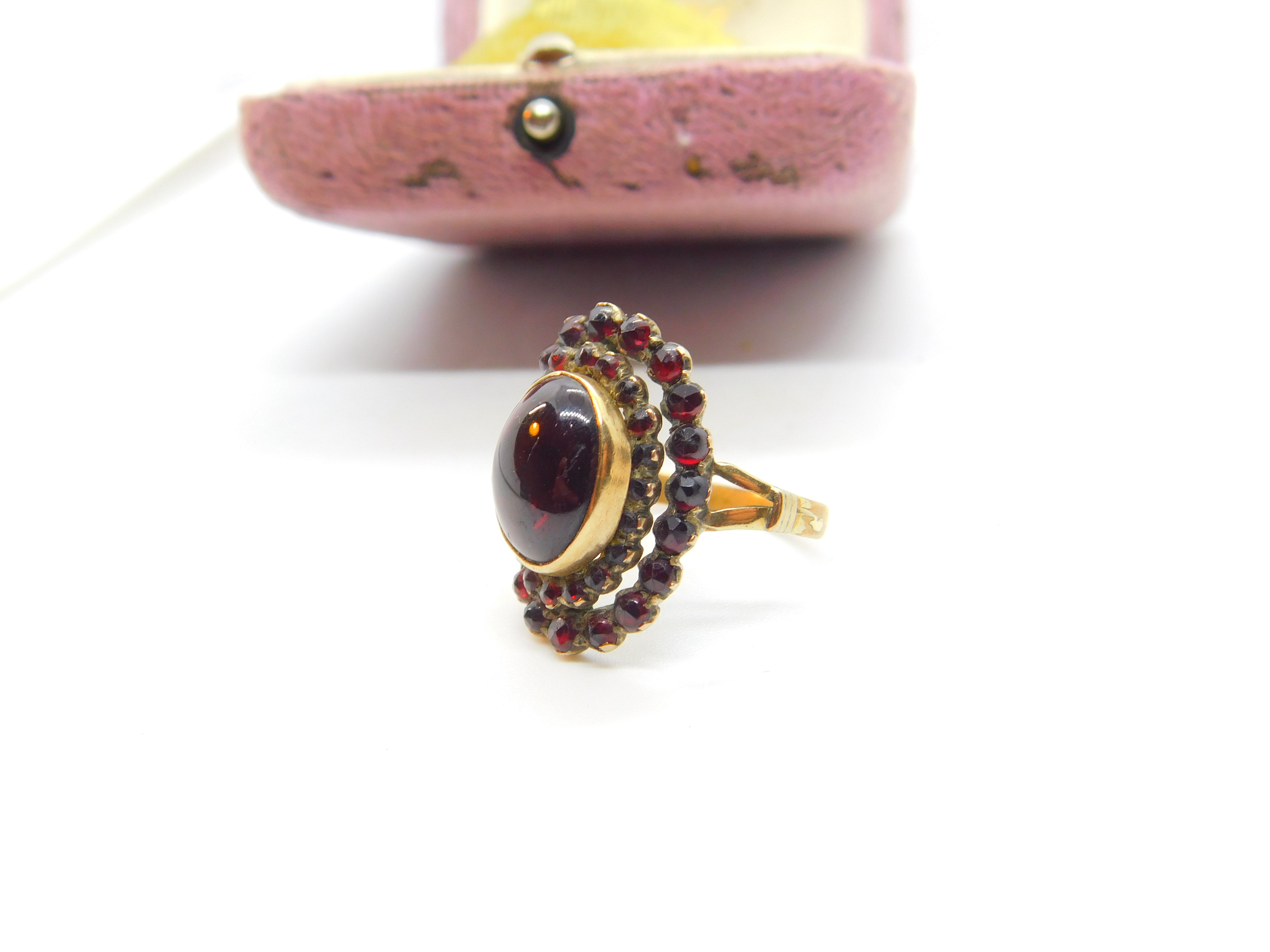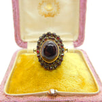 Austro-Hungarian Victorian 8ct Garnet Gold Bohemian Garnet Floral Ring c1850