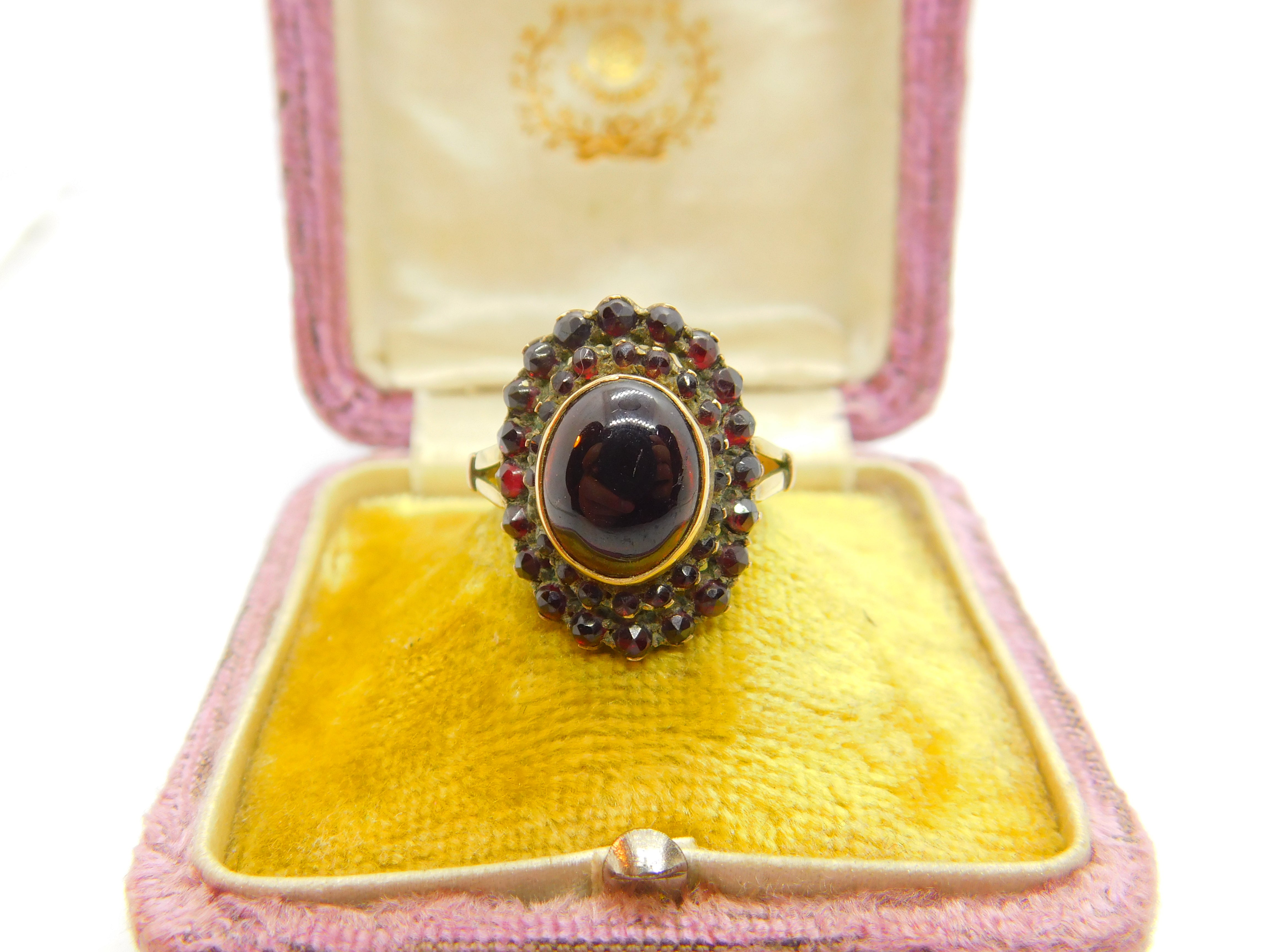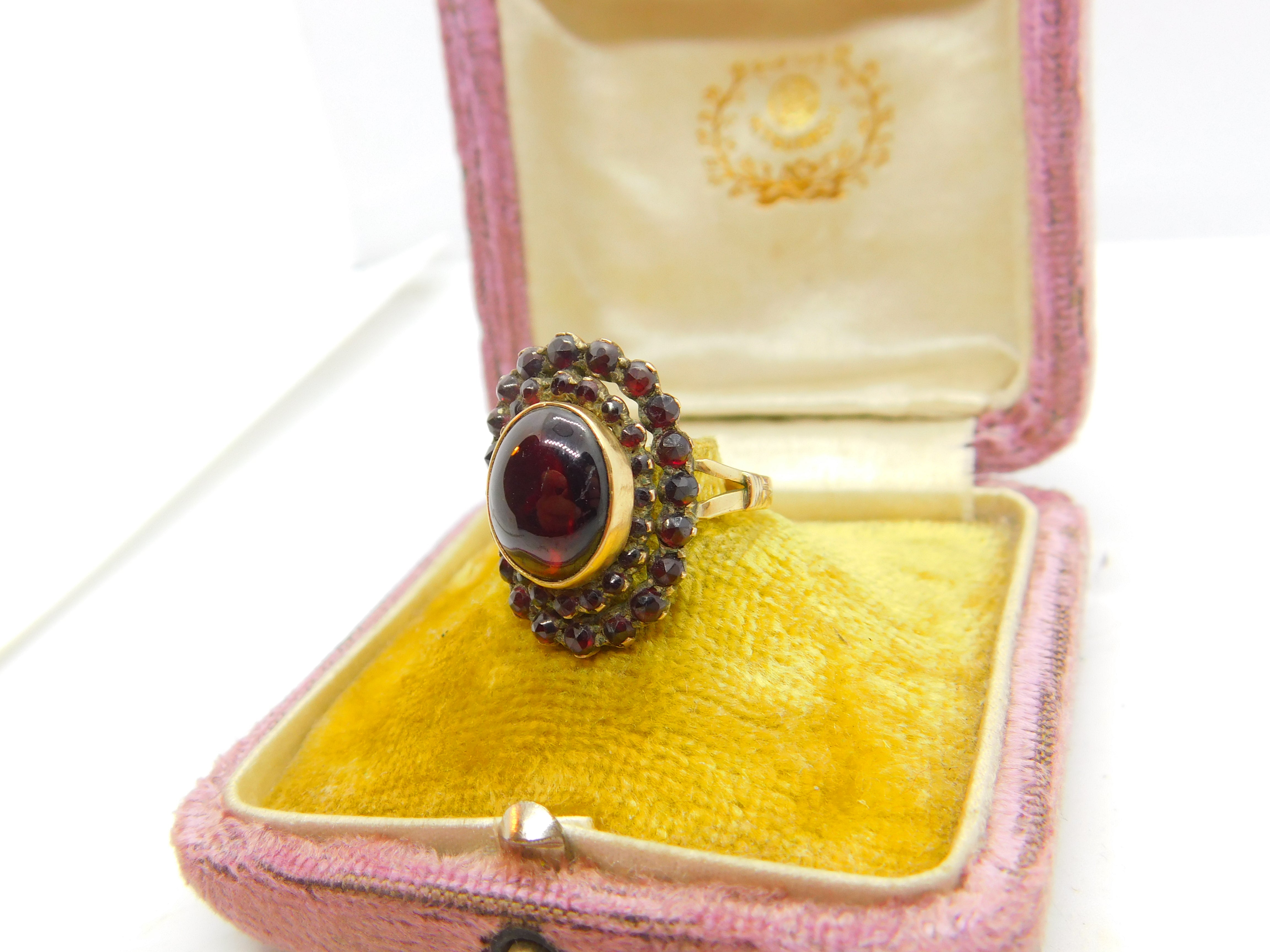Details: A fantastic and wonderfully designed antique Victorian 8ct garnet gold large Bohemian garnet floral cluster ring, almost certainly austro-hungarian c1850 - wearing to the gold. This is a wonderful item that would make a perfect gift or addition to any collection. The BOX pictured is for PRESENTATION ONLY and is NOT included in the listings but used to frame the pictures unless specifically stated otherwise.