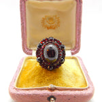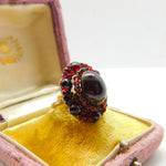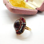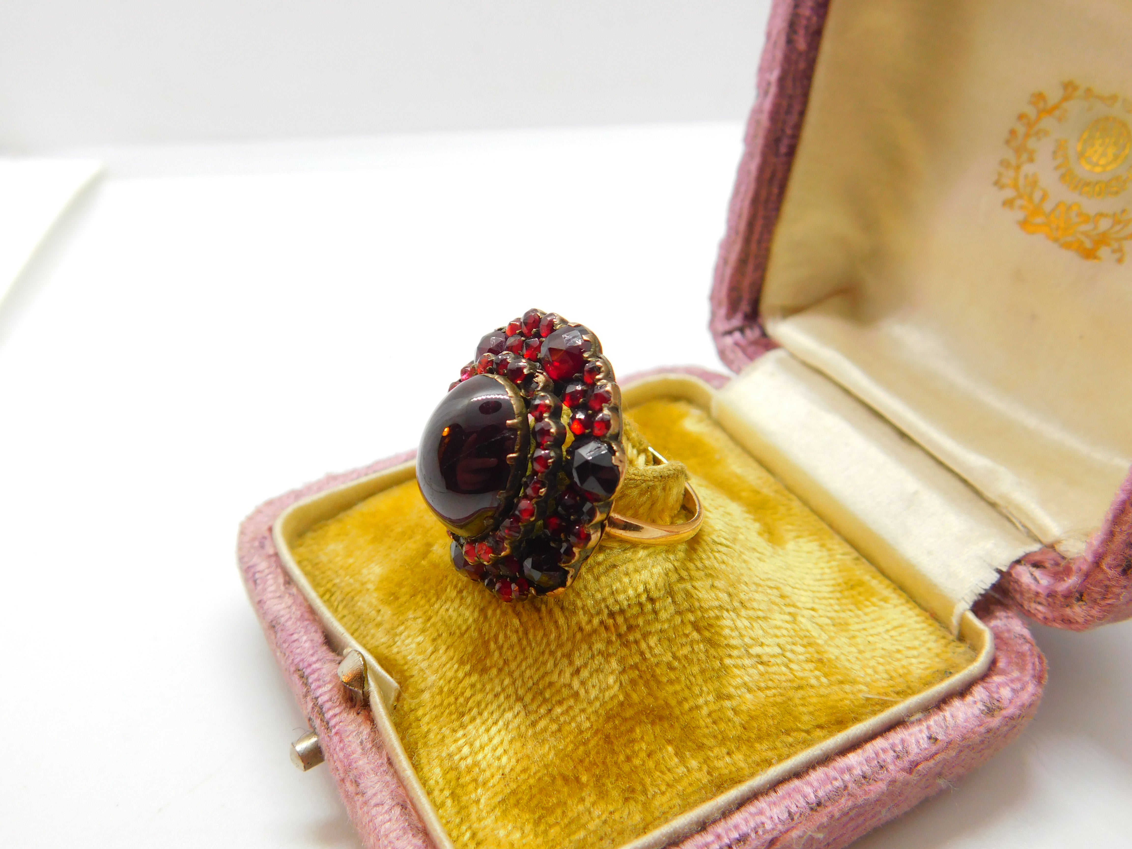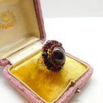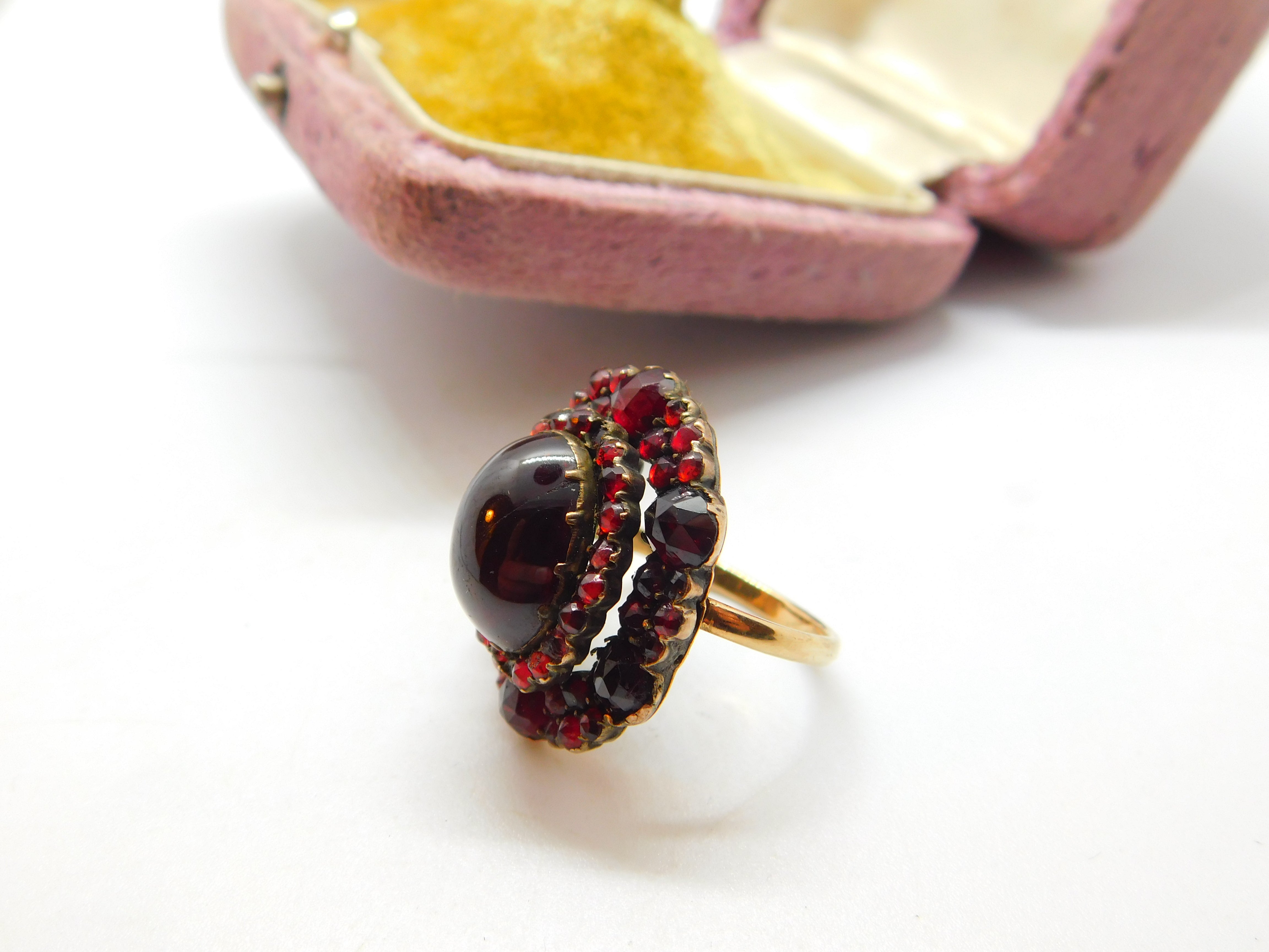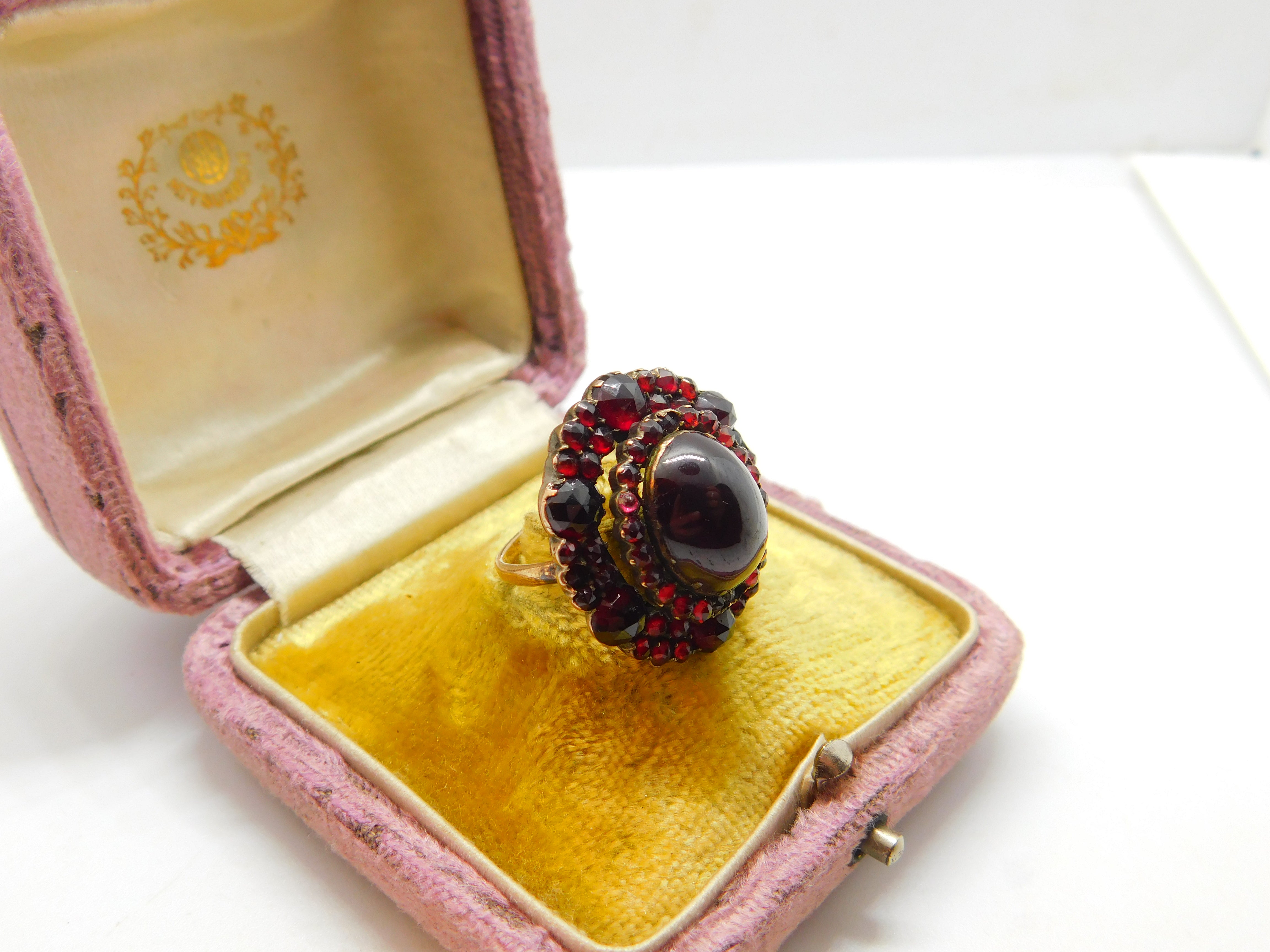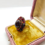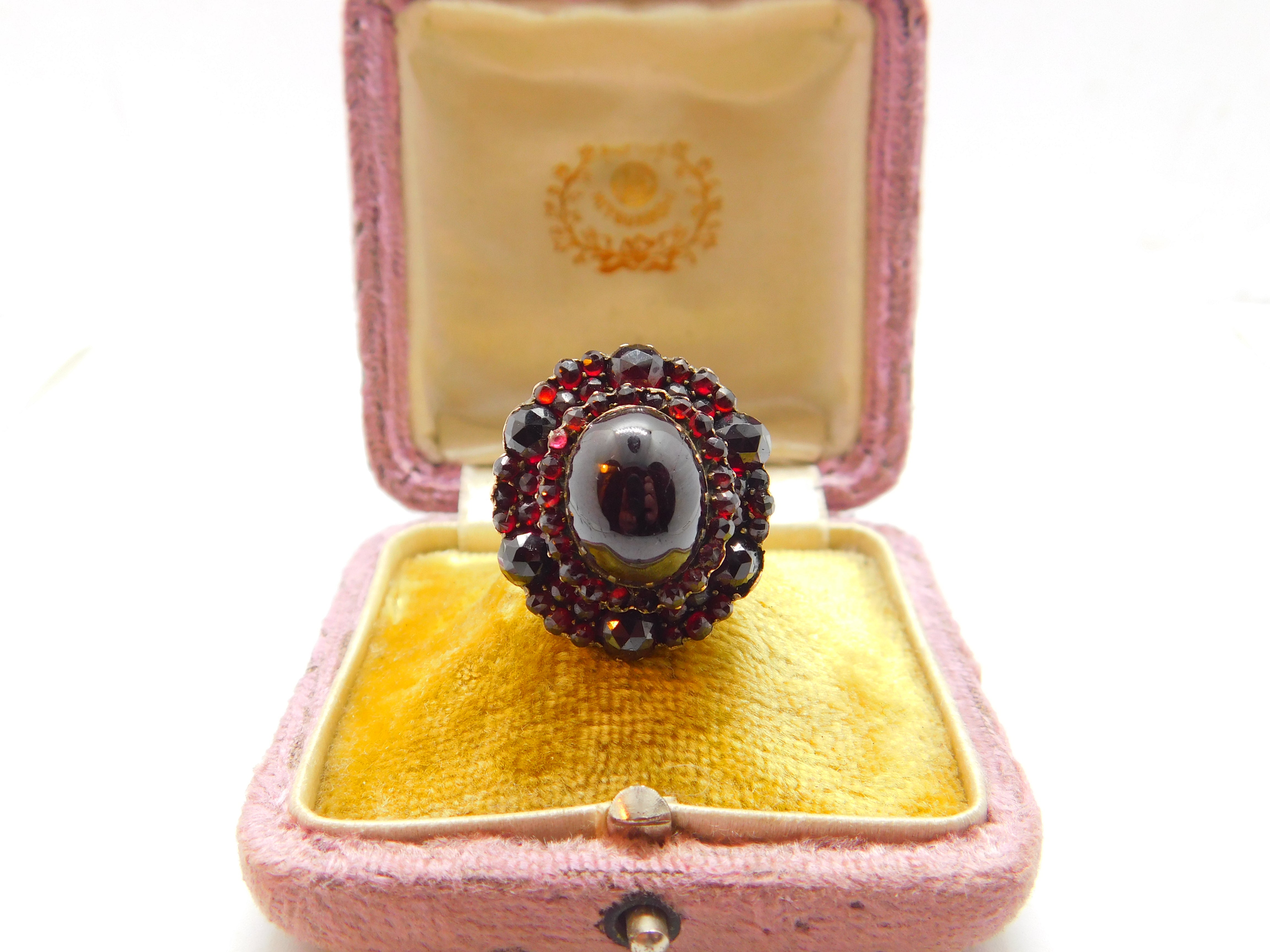 Austro-Hungarian Victorian 9ct Gold & Bohemian Garnet Large Floral Ring Antique